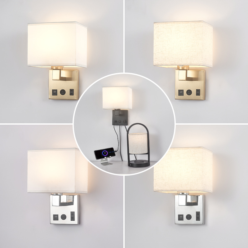 USB 벽 램프로 새로운 창조적 인 호텔 침대 옆 독서 램프 미국 직물 객실 램프 플러그 침실 벽 램프 led