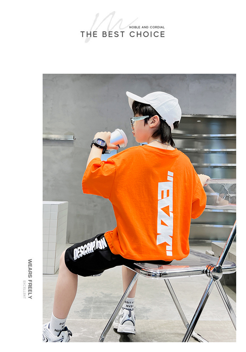 여름 얇은 여름 패션 유행 멋진 잘 생긴 순면 반팔 반바지 튀김 거리 소년 2023 새로운 투피스 세트