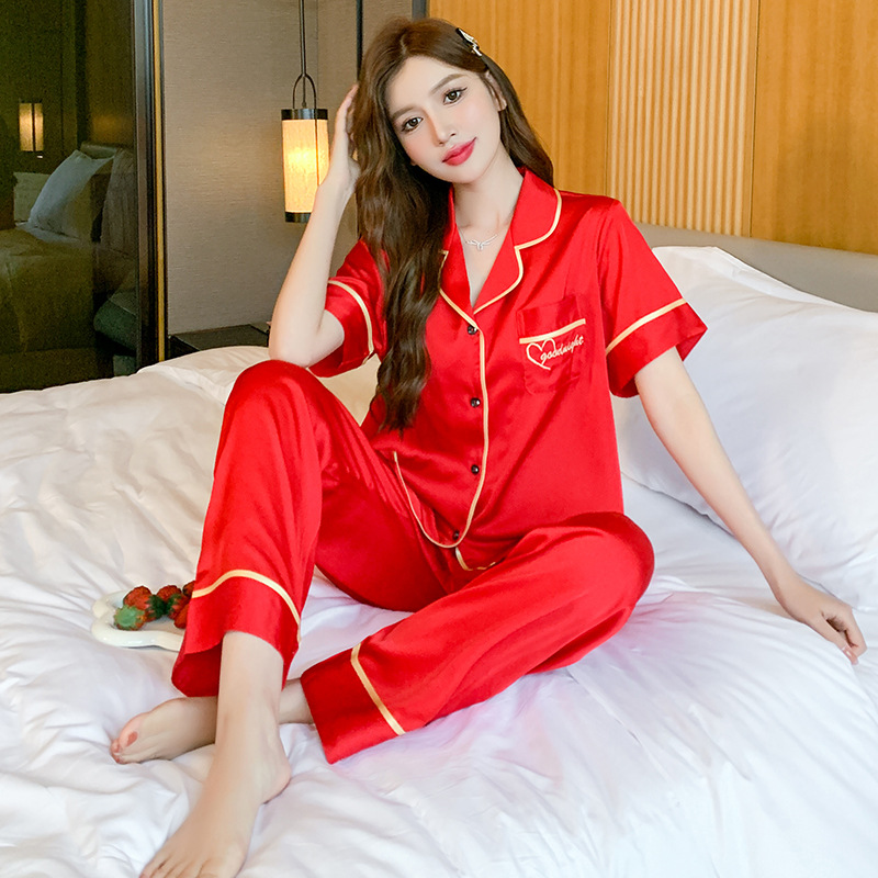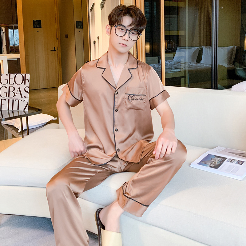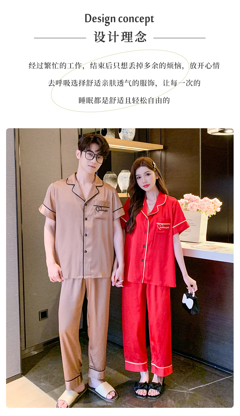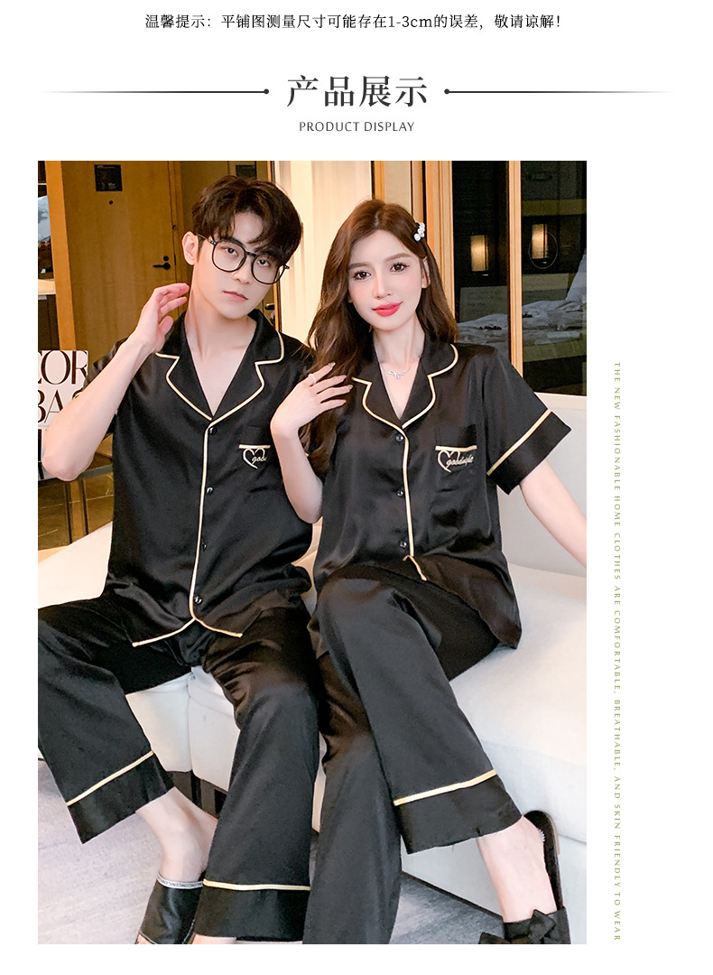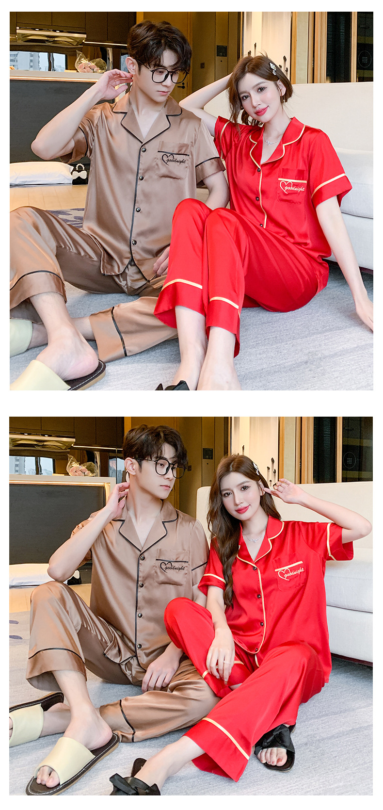 아이스 실크 커플 잠옷 여름 반팔 바지 얇은 엔트리-럭셔리 세트 남성과 여성의 고급 가정 의류 돼지 고기 계란