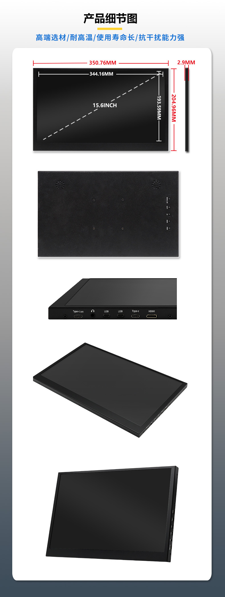 15.6inch 휴대용 모니터 1920*1080 전체 보기 lcd LCD 화면 250 밝기 ZC156IA02-ZC스토어 가기