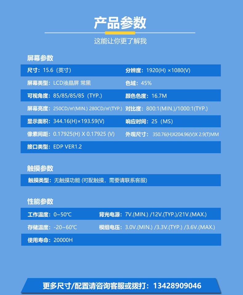 15.6inch 휴대용 모니터 1920*1080 전체 보기 lcd LCD 화면 250 밝기 ZC156IA02-ZC