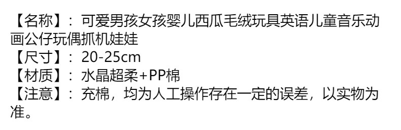 귀여운 소년 소녀 아기 수박 봉제 장난감 영어 어린이 음악 애니메이션 인형 인형 잡아 기계 인형스토어 가기