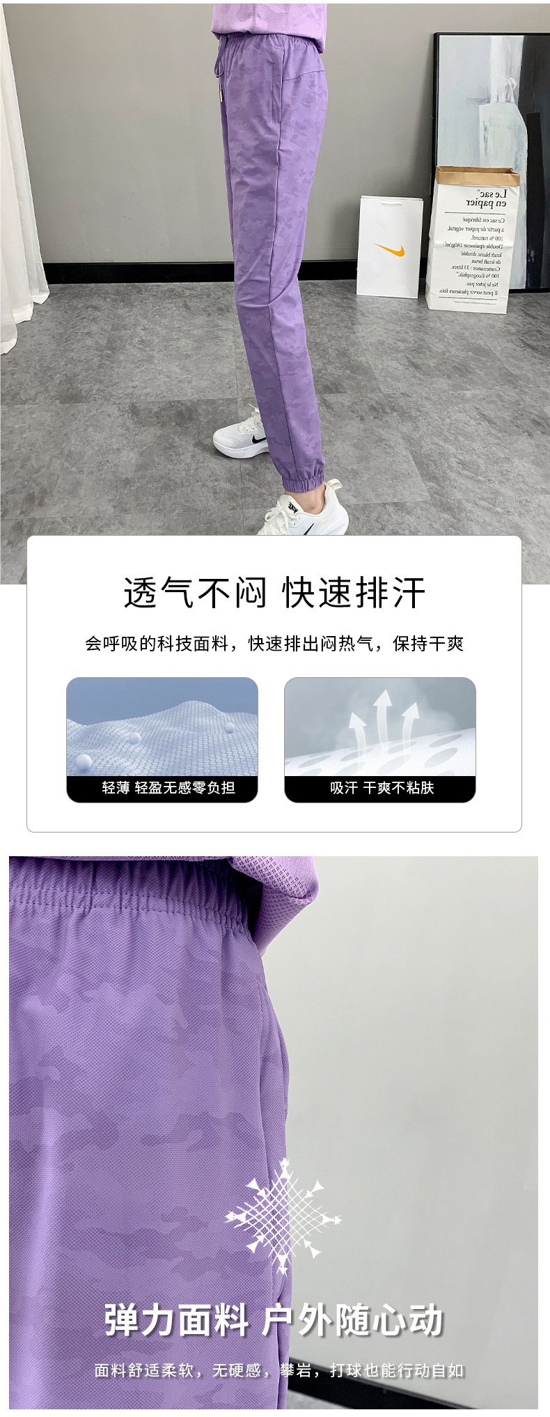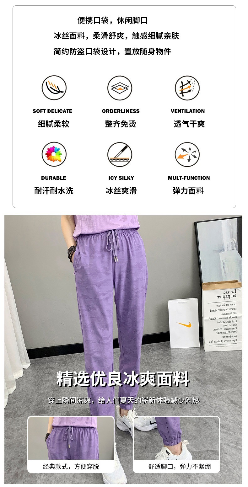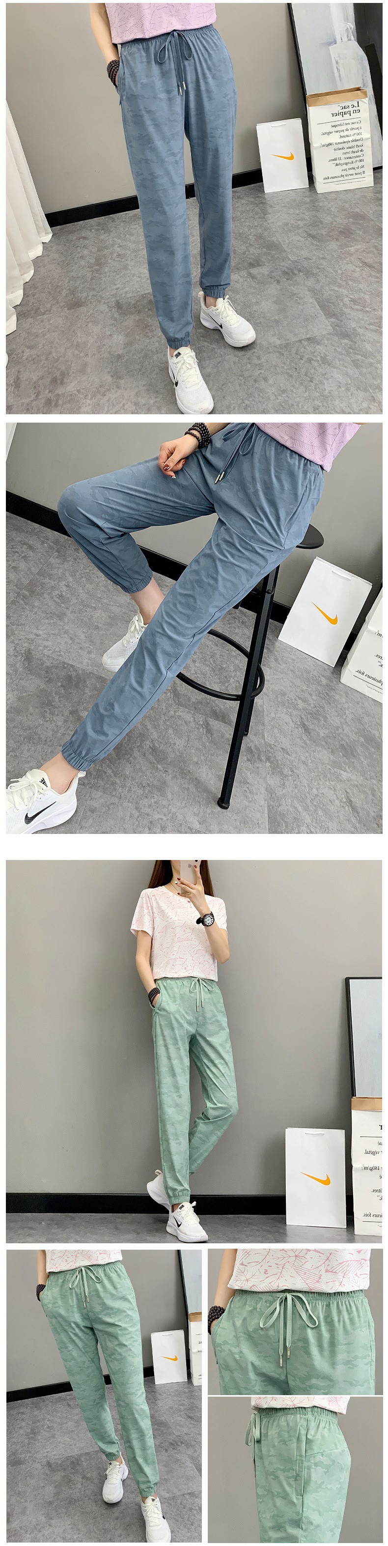 2023 여름 아이스 실크 속건성 여성용 긴바지, 신축성 있는 카무플라주 피트니스 스포츠 트렌디 팬츠스토어 가기