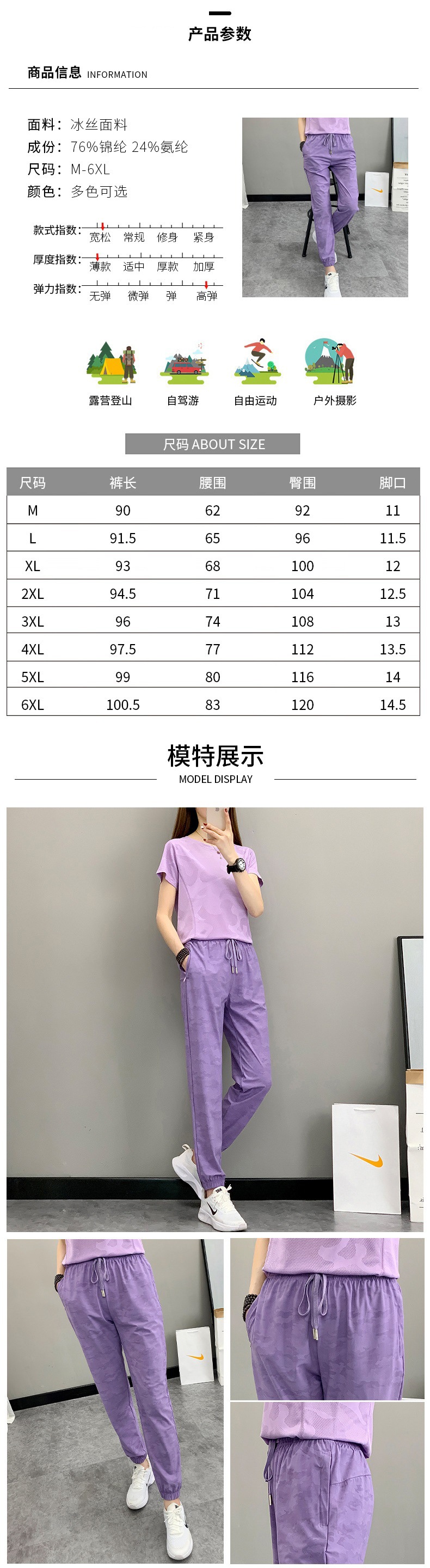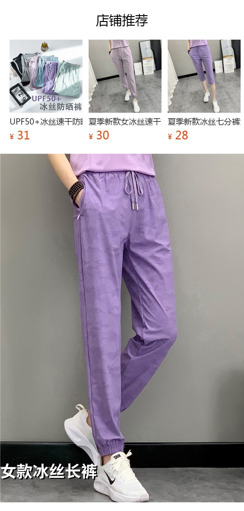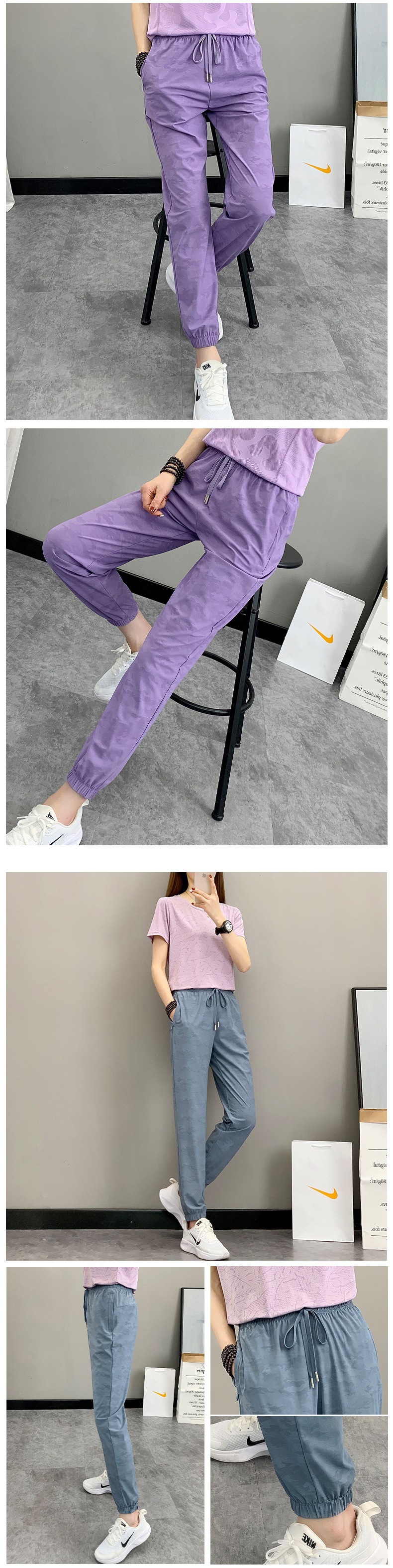 2023 여름 아이스 실크 속건성 여성용 긴바지, 신축성 있는 카무플라주 피트니스 스포츠 트렌디 팬츠스토어 가기