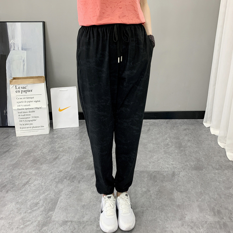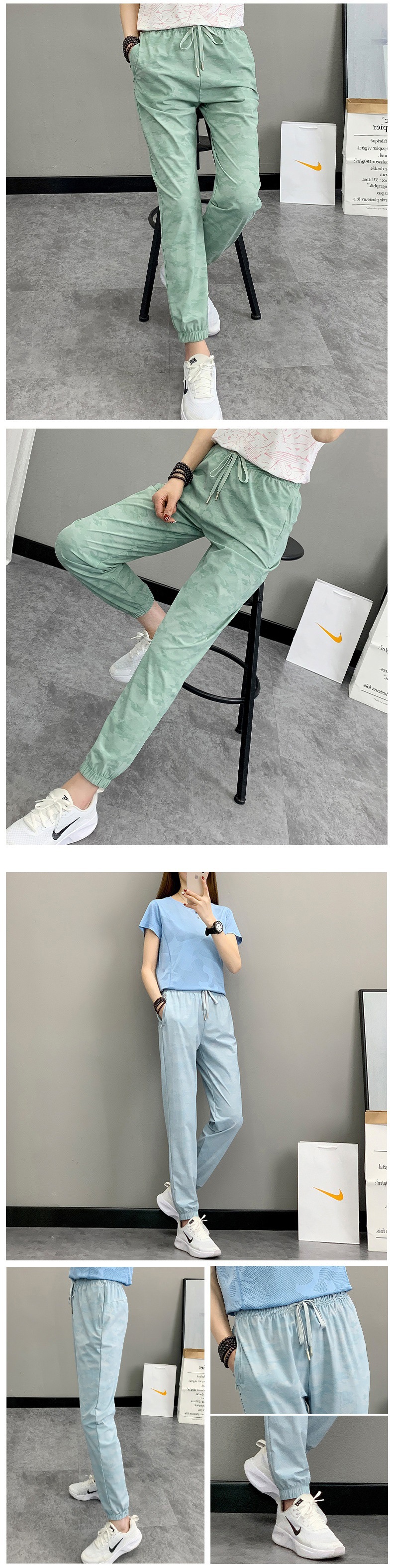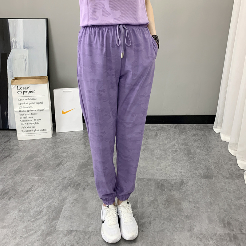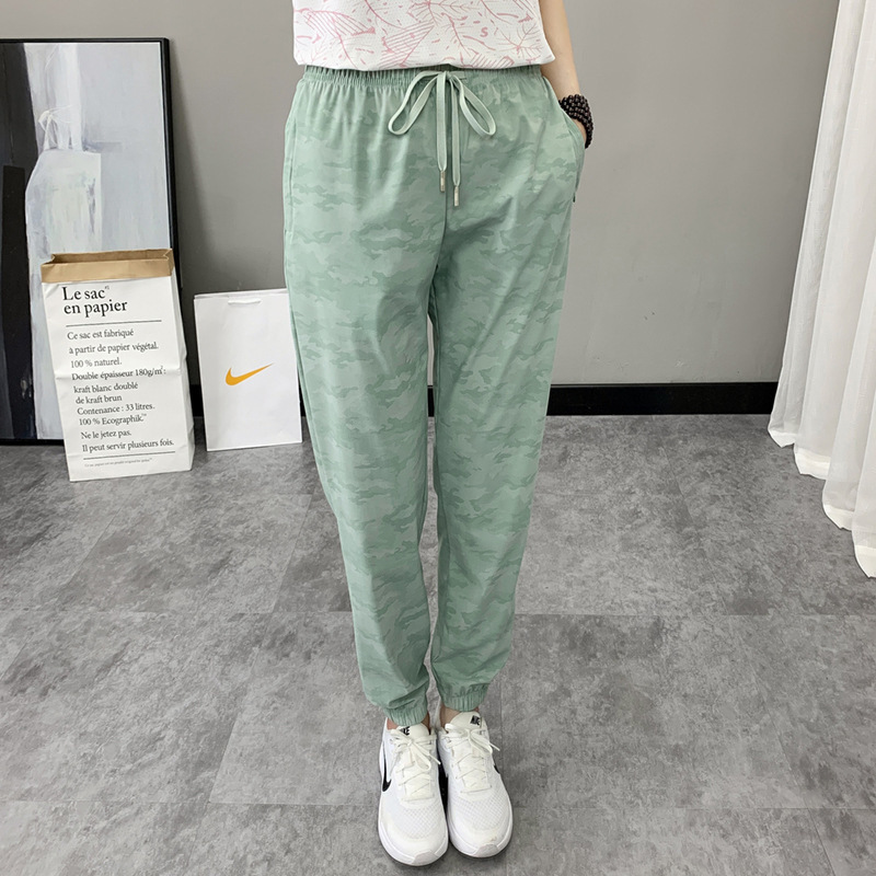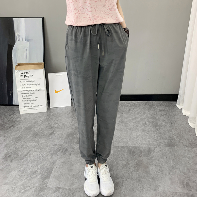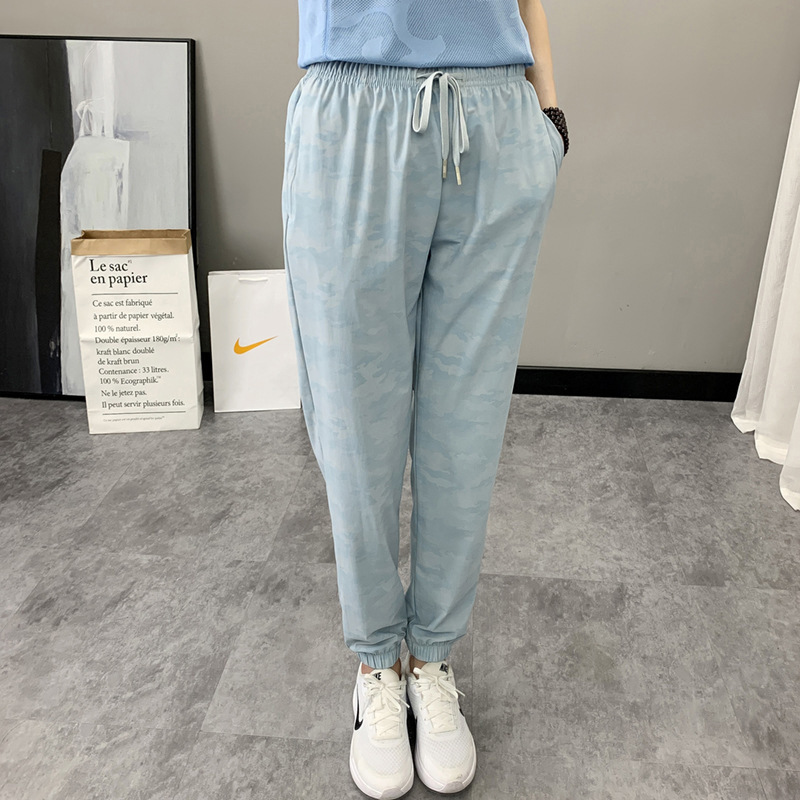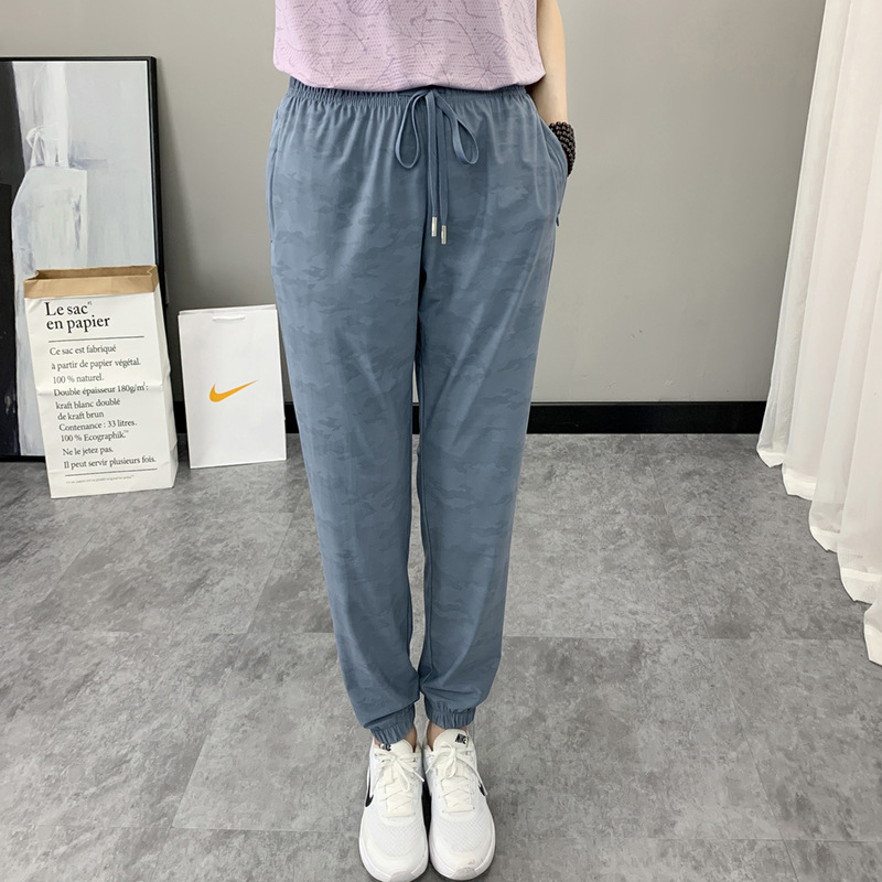 2023 여름 아이스 실크 속건성 여성용 긴바지, 신축성 있는 카무플라주 피트니스 스포츠 트렌디 팬츠