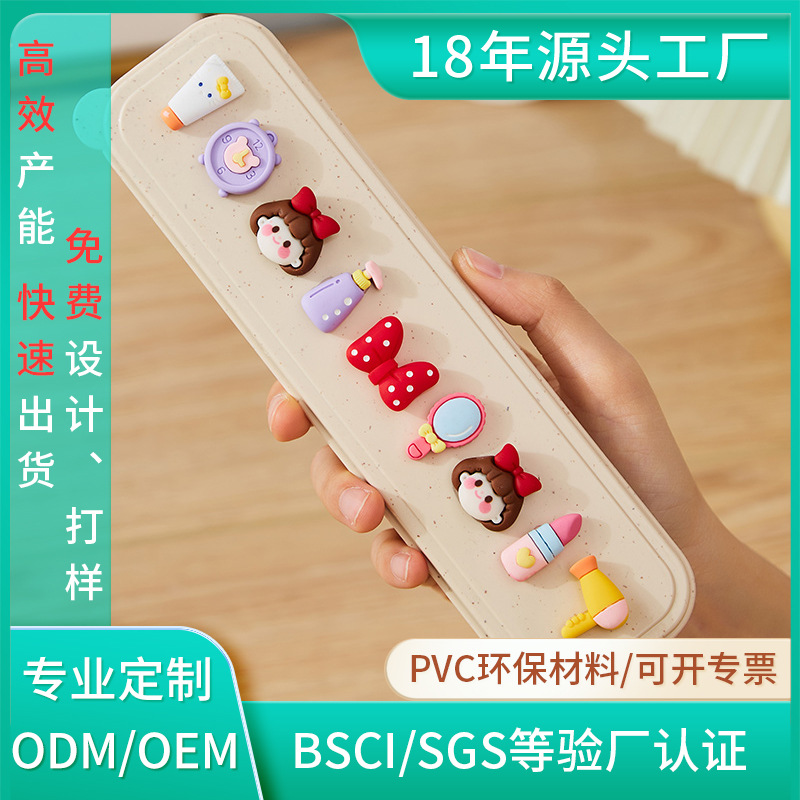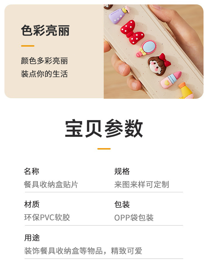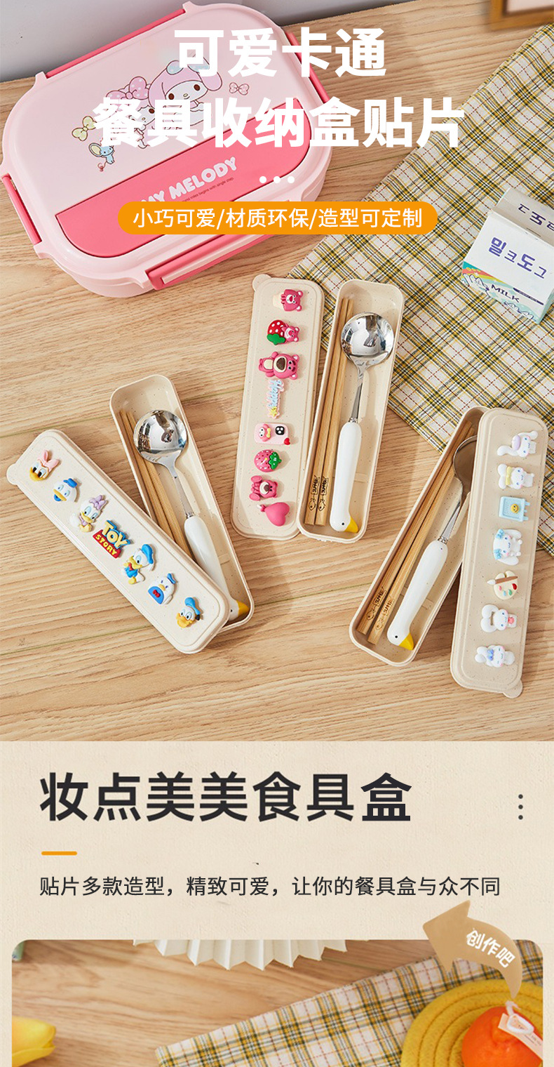 사용자 정의 만화 식기 보관 상자 장식 패치 젓가락 보관 상자 PVC 부드러운 접착제 패치 칼과 포크 상자 패치