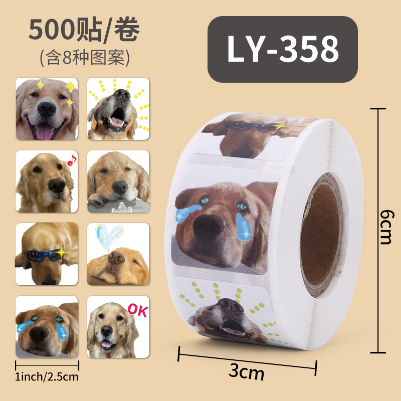 현실적인 황금 머리 개 스티커 라운드 인감 스티커 스티커 만화 귀여운 롤 스티커 도매
