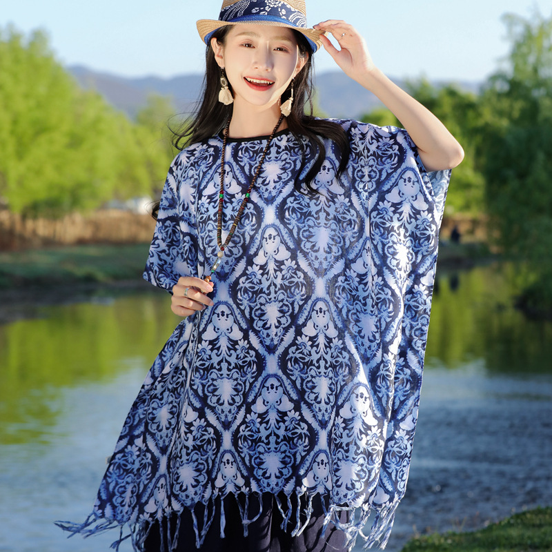 한국식 풀오버 망토 여행 장식 목도리 면 린넨 실크 스카프 봄과 가을 운남 리장 타이 염색 스카프스토어 가기