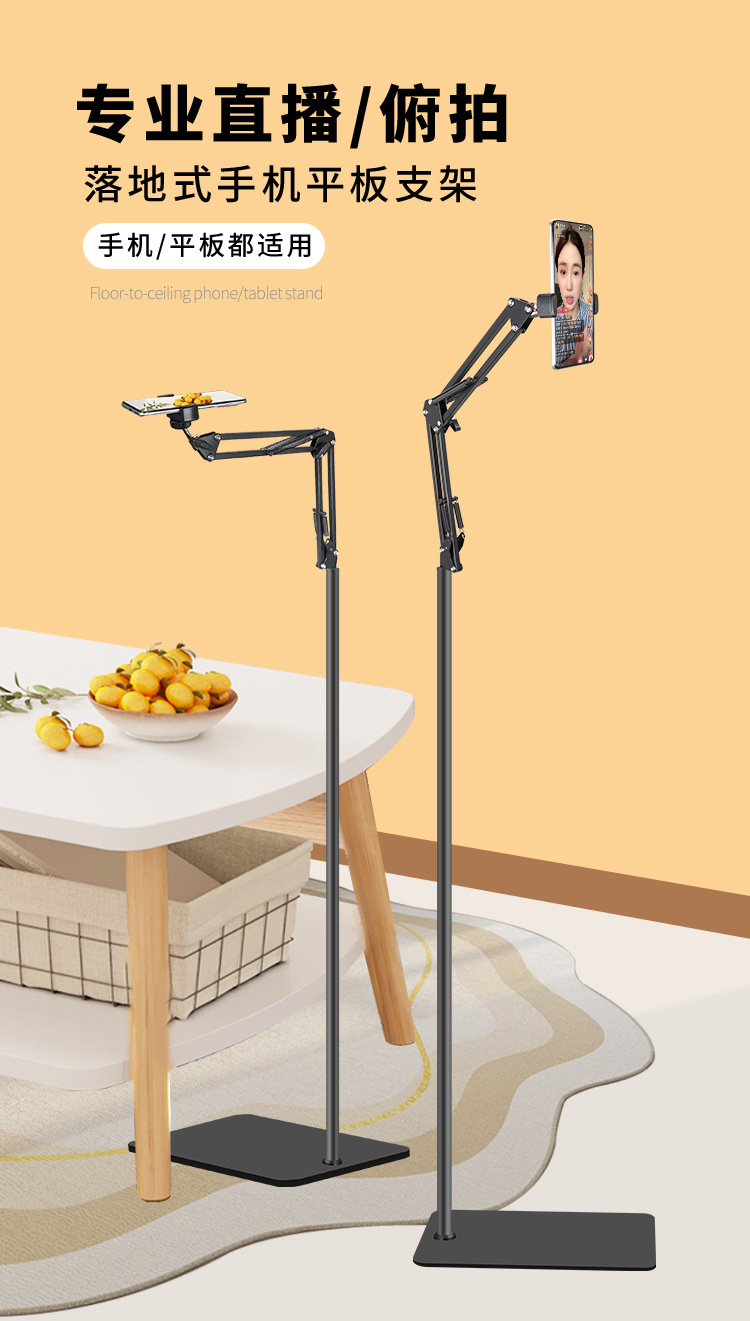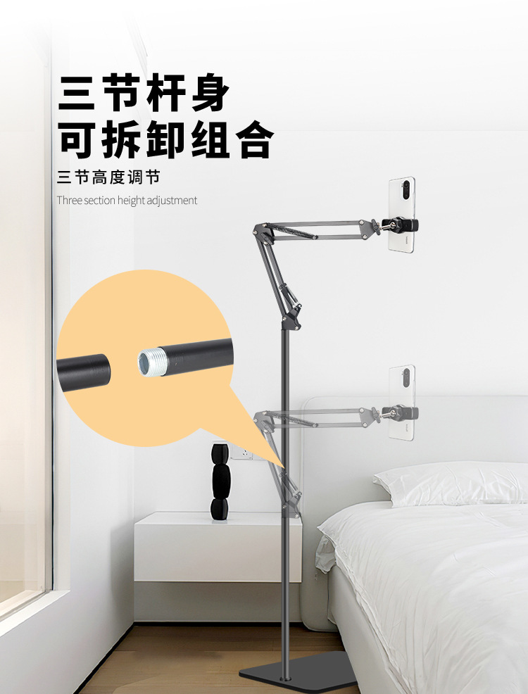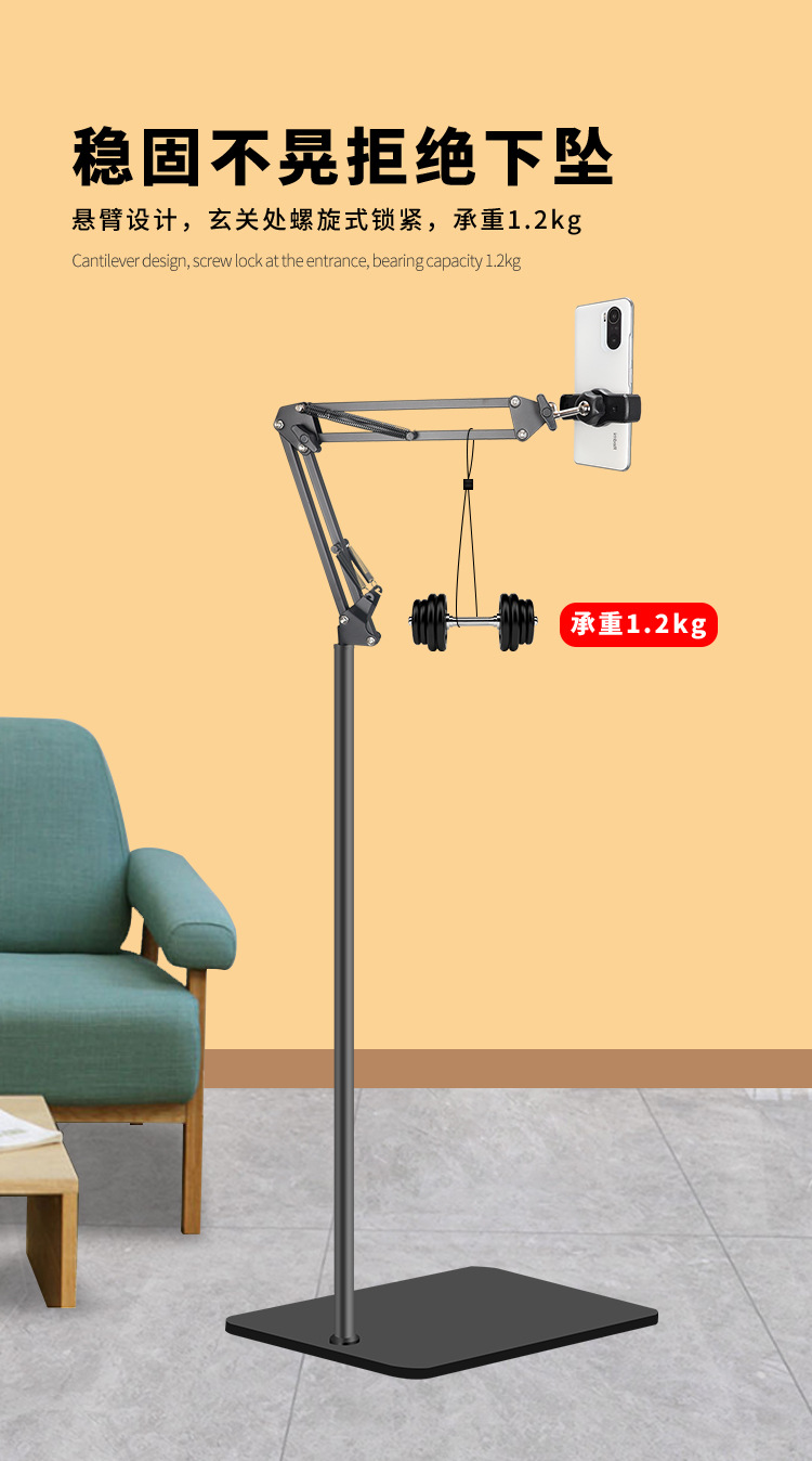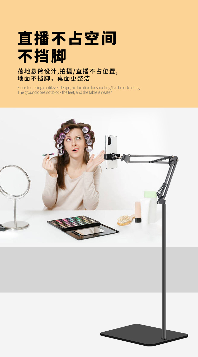 라이브 방송 휴대 전화 스탠드 플로어 스탠딩 오버 헤드 샷 금속 캔틸레버 브래킷 게으른 사람들이 드라마를 쫓는 침대 옆 태블릿 브래킷 기계 팔스토어 가기