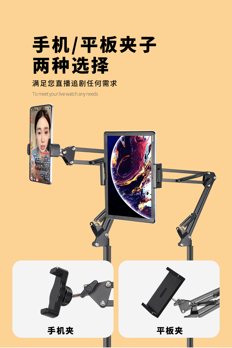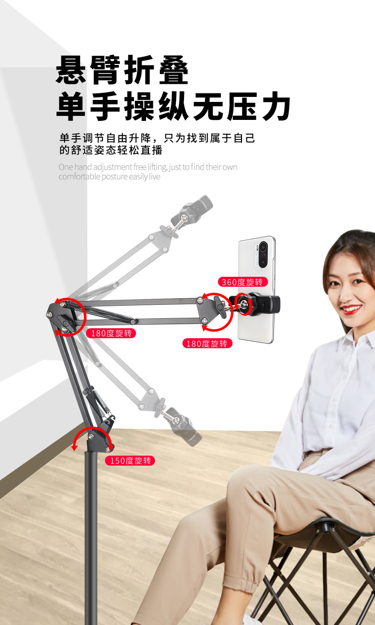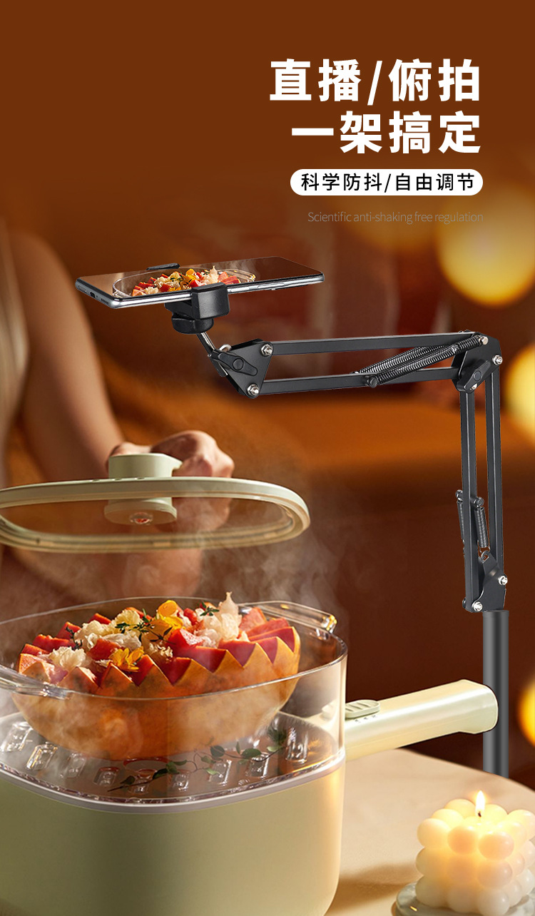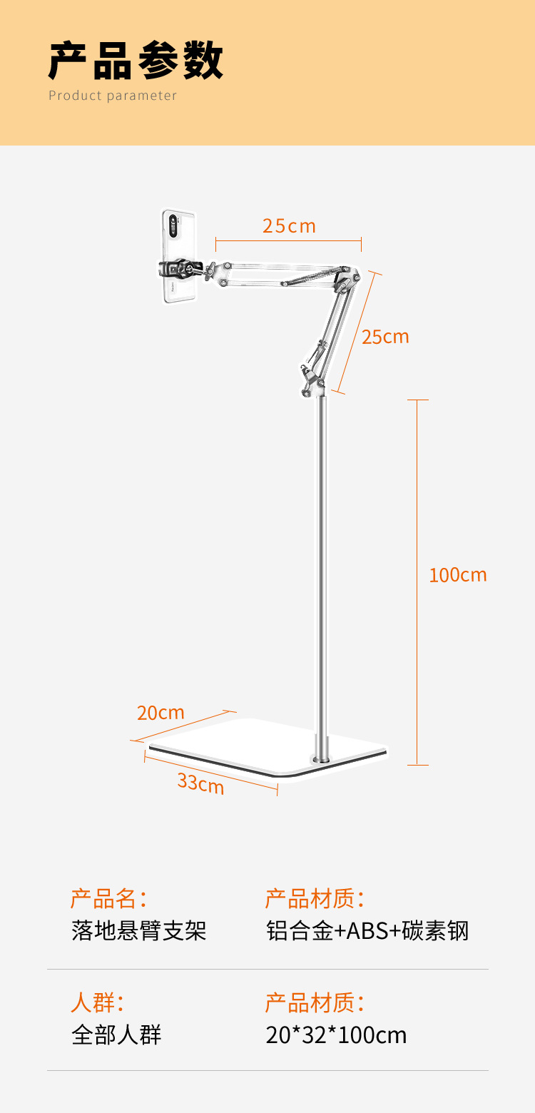 라이브 방송 휴대 전화 스탠드 플로어 스탠딩 오버 헤드 샷 금속 캔틸레버 브래킷 게으른 사람들이 드라마를 쫓는 침대 옆 태블릿 브래킷 기계 팔스토어 가기