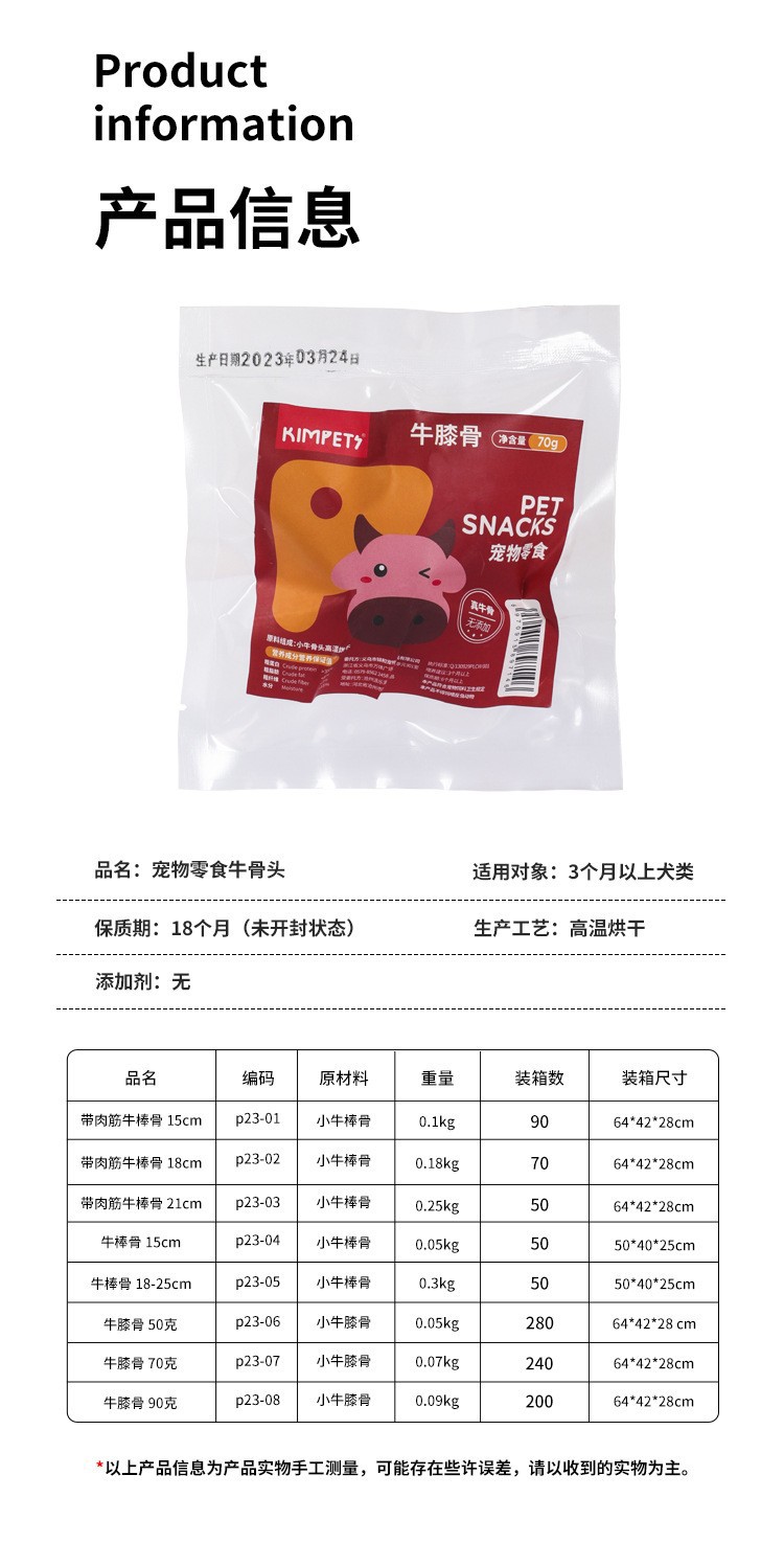 本产品未开封条件下保质期为18个月 ! 产品收到有任何问题请第一时间联系客服给您处理哦(每一根骨头都是甄选优质牛骨,因为是不同牛身上的所以无法保证每一根大小都一样哦标注尺寸仅供参考,主要以克重为准。介意尺寸不一的慎拍)