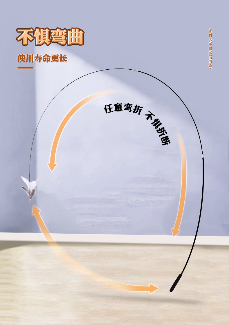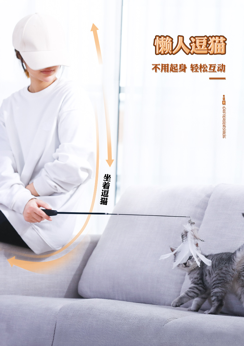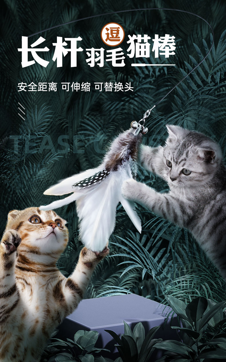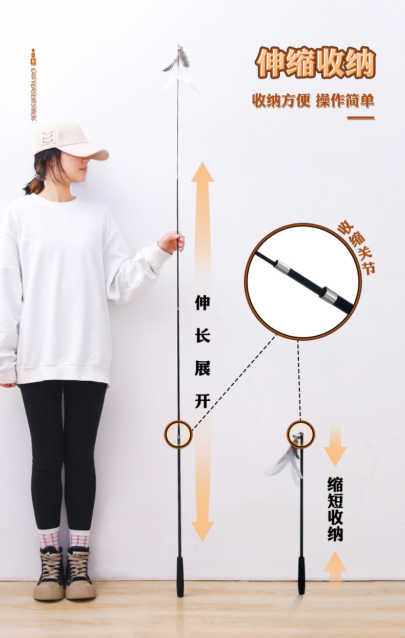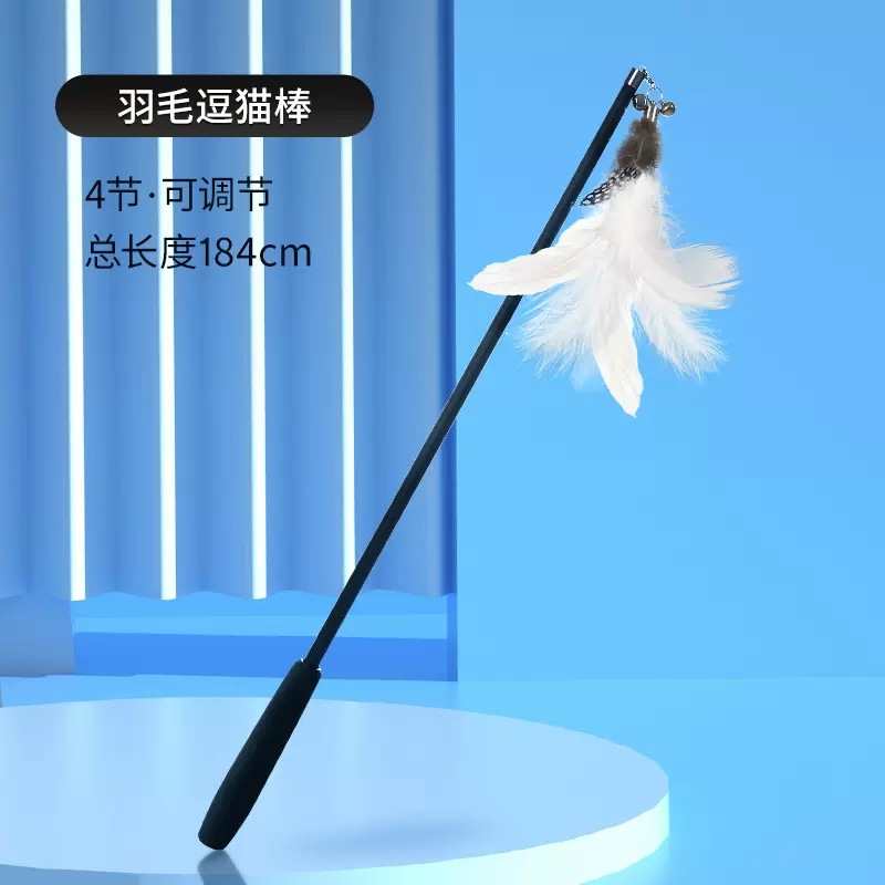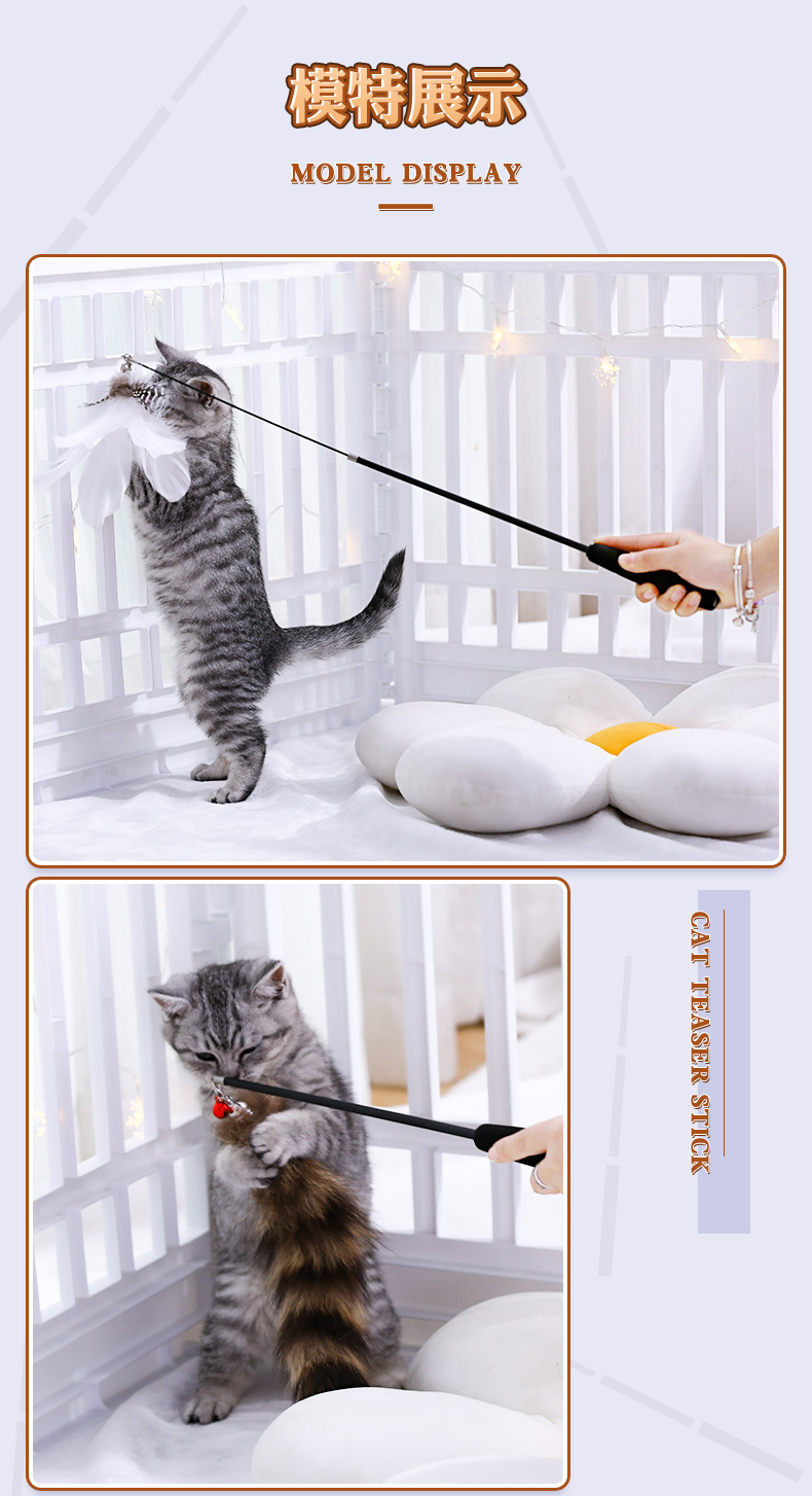 고양이 장난감 고양이 스틱 긴 막대 개폐식 깃털 교체 헤드 벨 낚싯대 새끼 고양이 용품스토어 가기