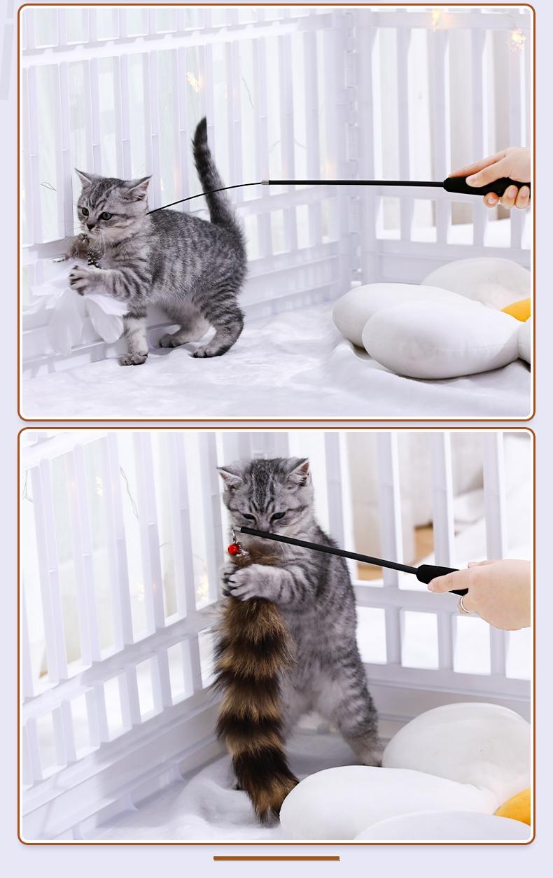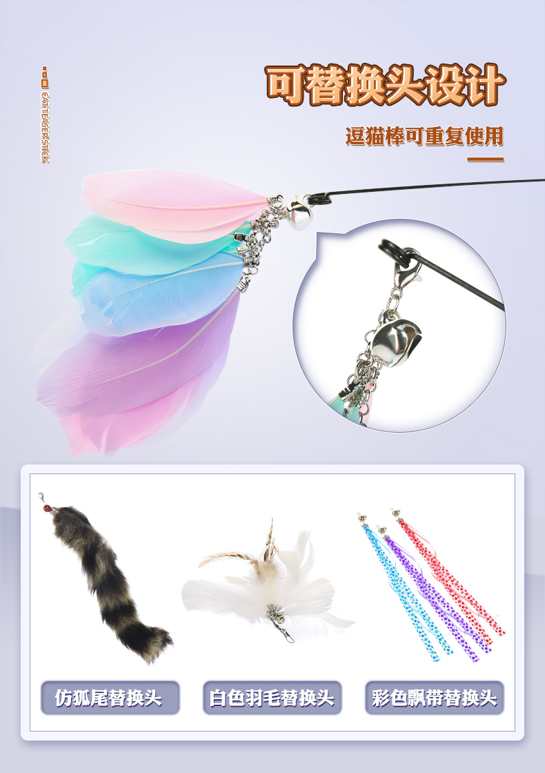 고양이 장난감 고양이 스틱 긴 막대 개폐식 깃털 교체 헤드 벨 낚싯대 새끼 고양이 용품