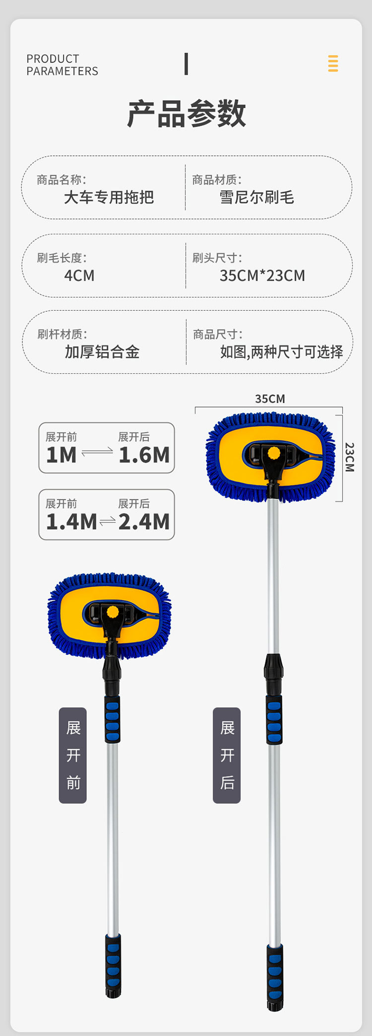 트럭 자동차 세차 걸레 용 특수 두꺼운 브러시 자동차 버스 용 긴로드 텔레스코픽 도구