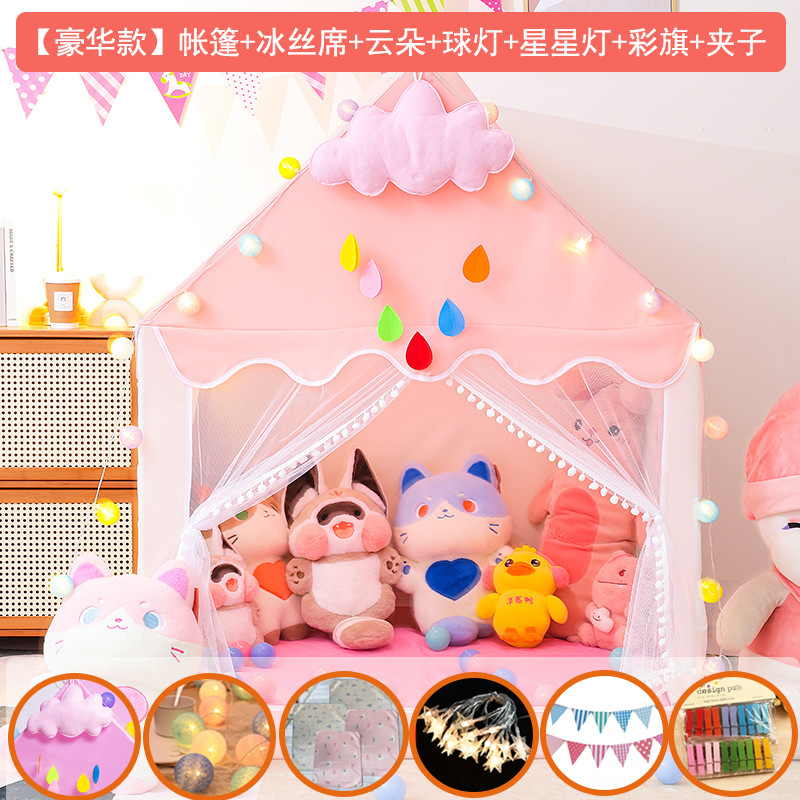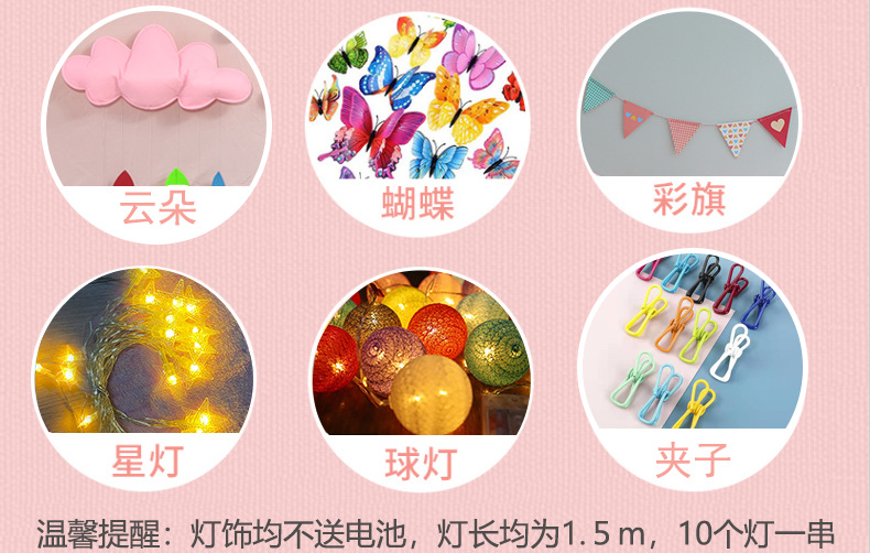 • 핑크 화이트 텐트 [메탈 튜브] + 아이스 실크 매트 + 나비 + 구름 + 볼 라이트 + 스타 라이트 + 플래그 + 클립