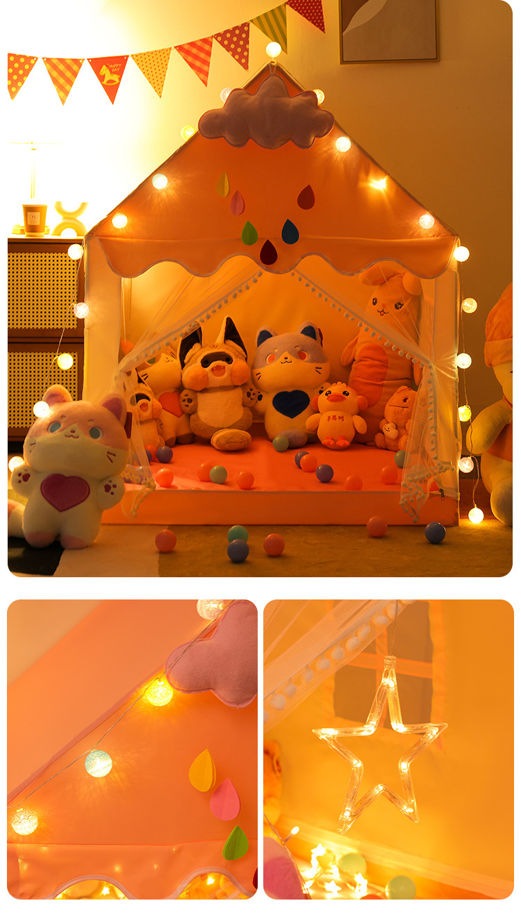• 핑크 화이트 텐트 [메탈 튜브] + 면 패드 + 나비 + 구름 + 볼 라이트 + 스타 라이트 + 플래그 + 클립
