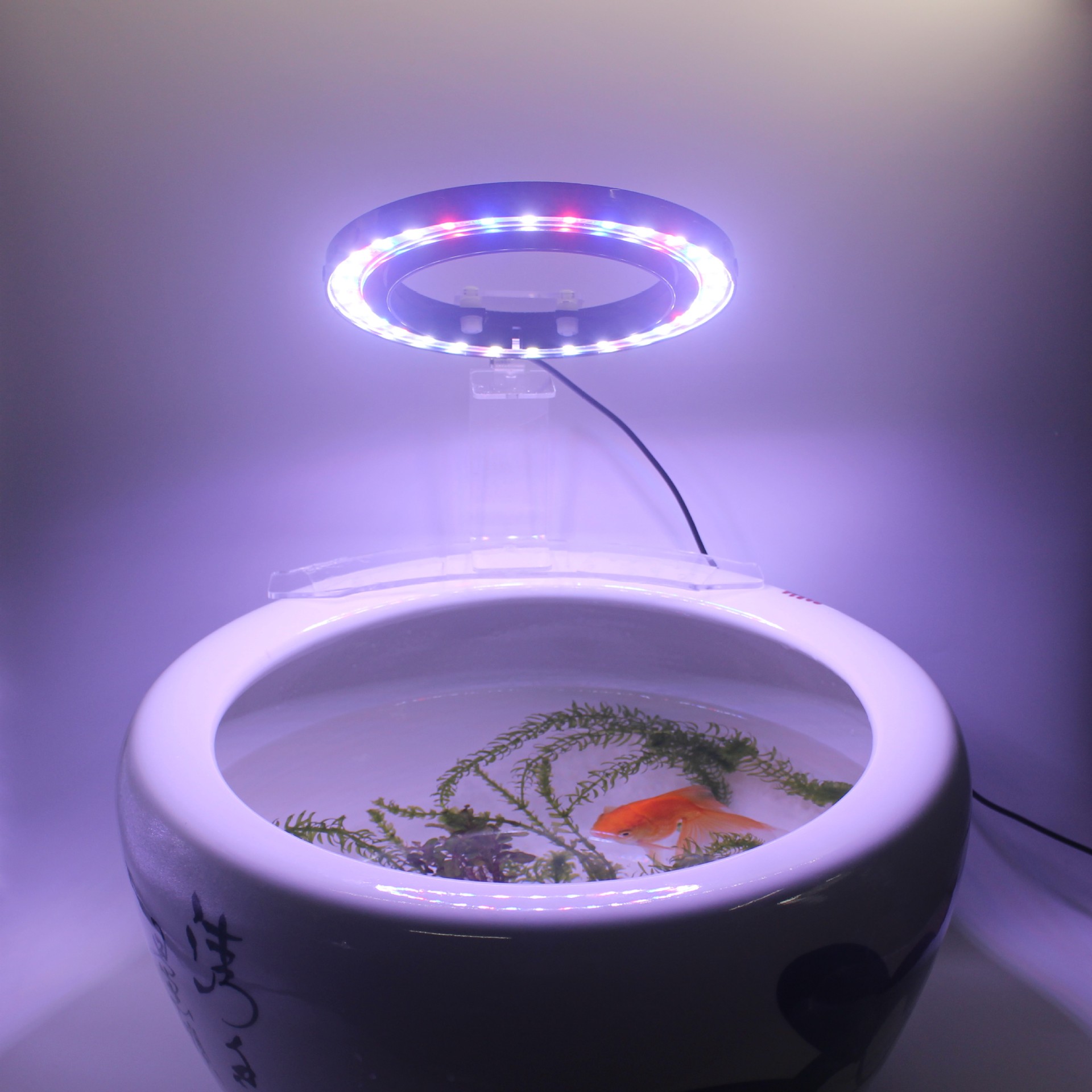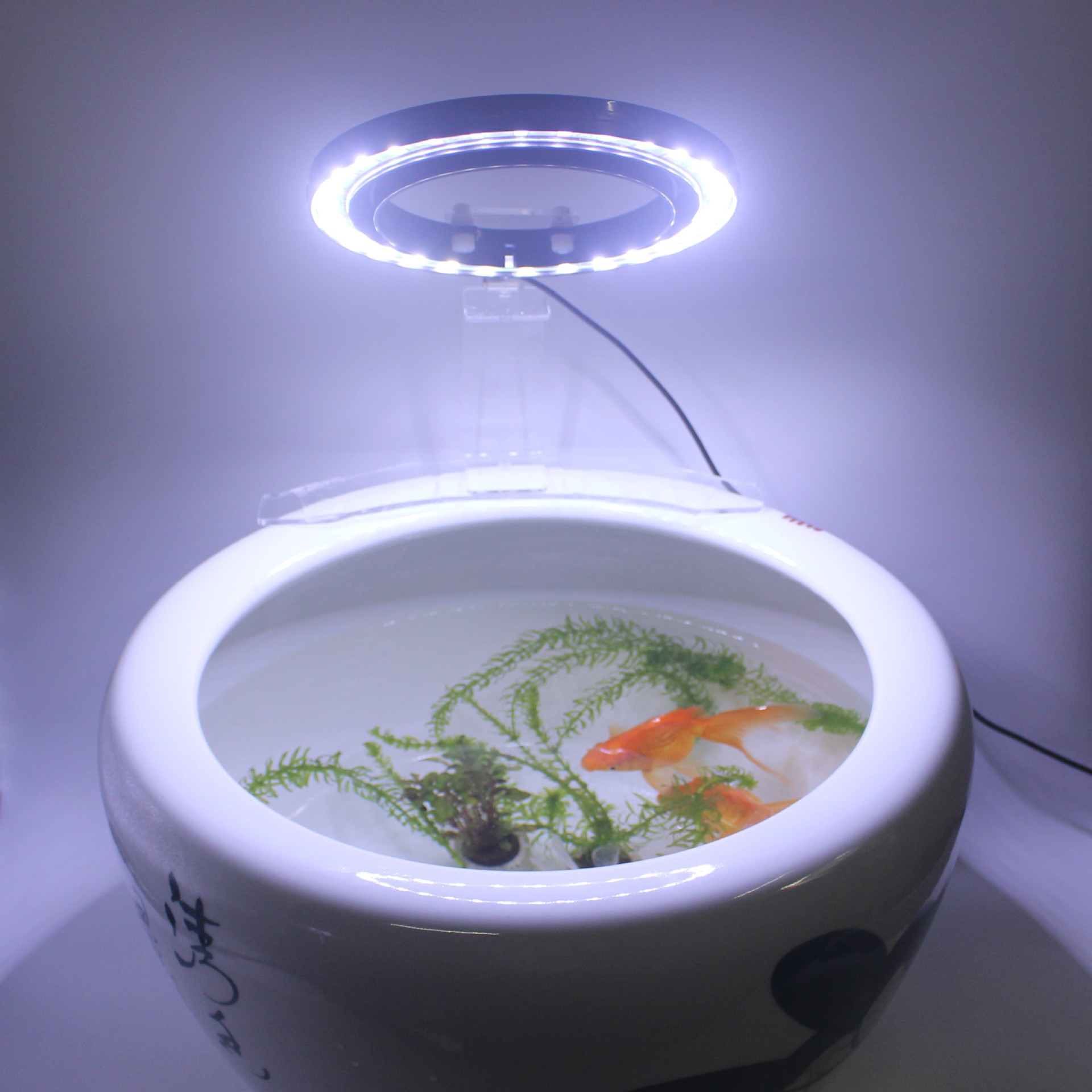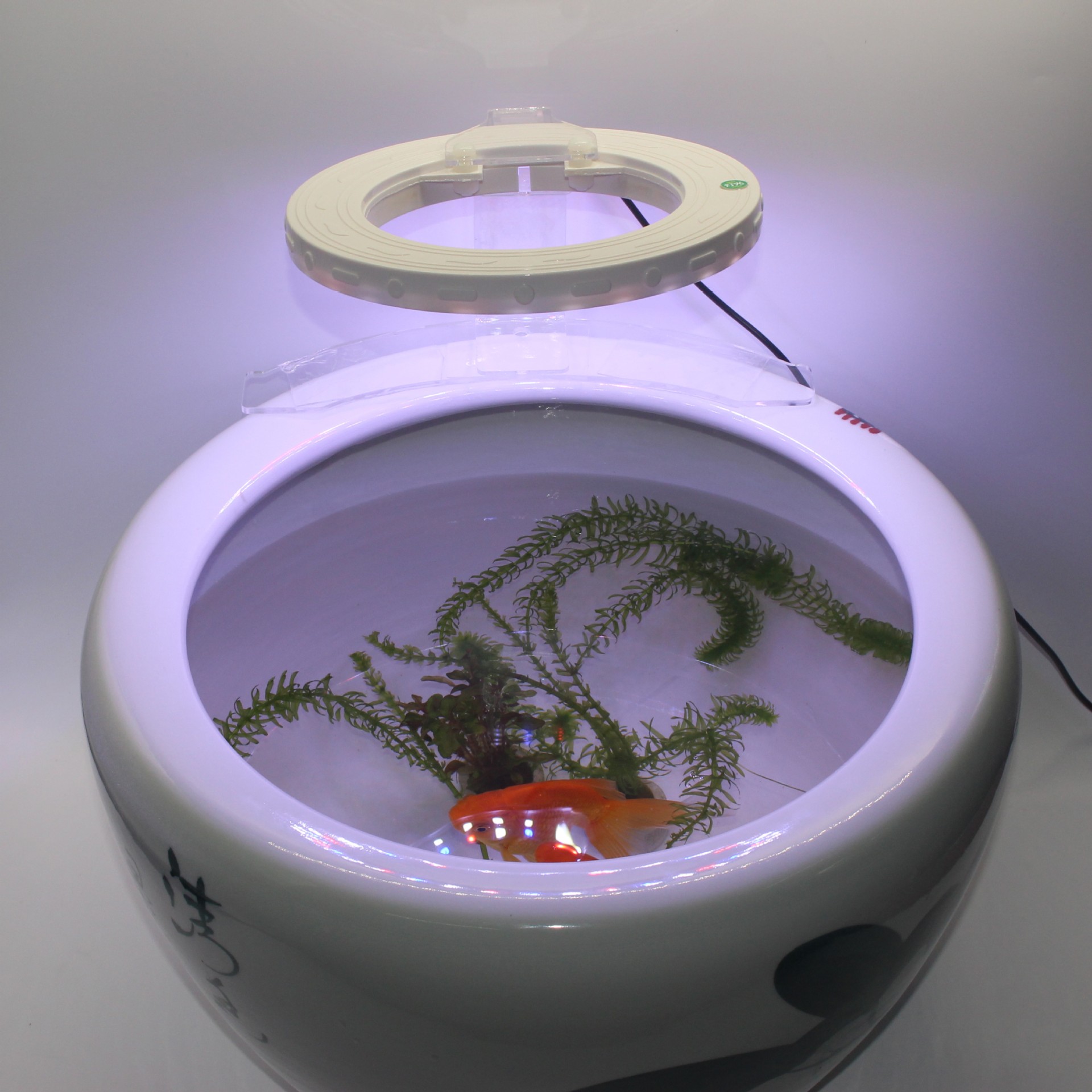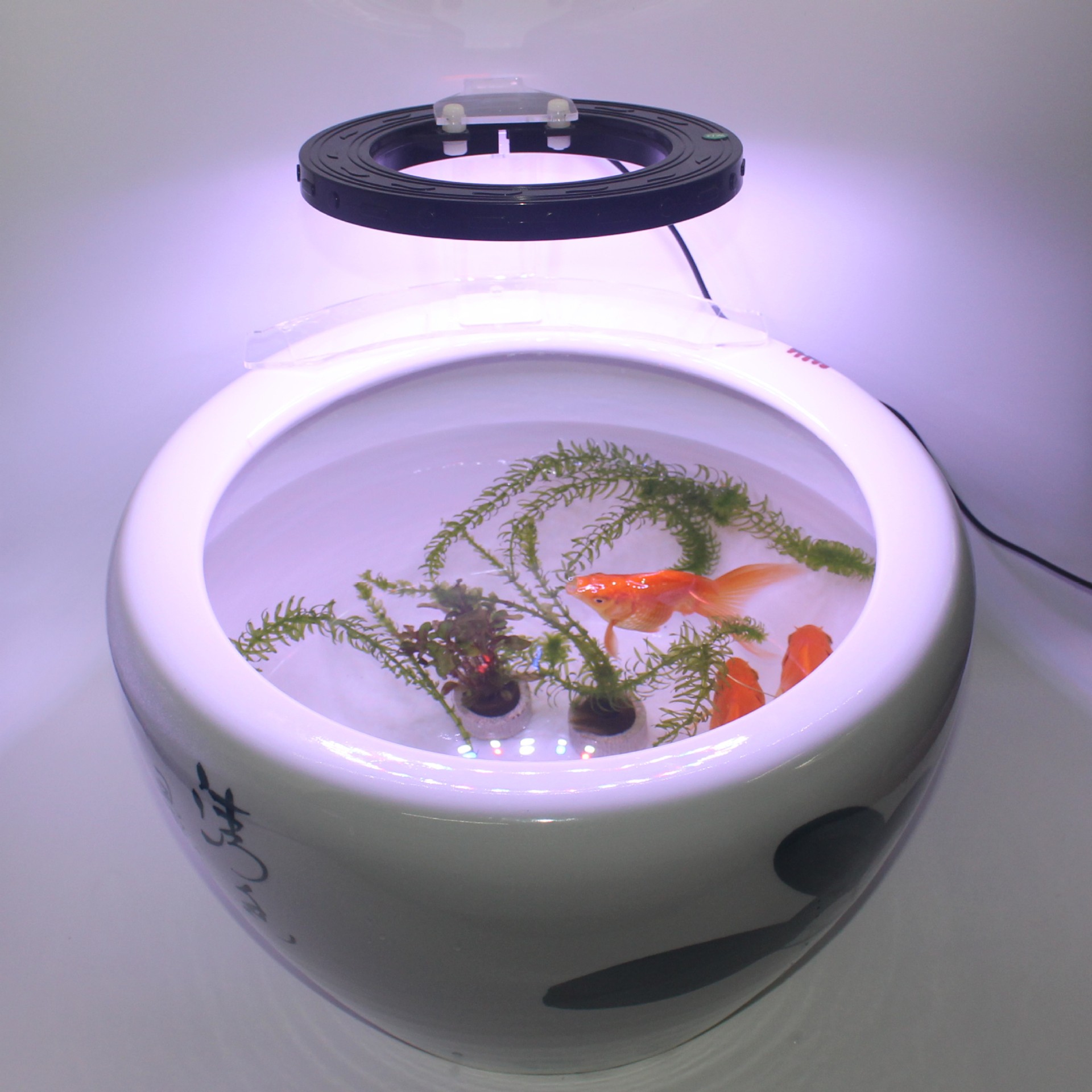 라운드 물 탱크 물고기 분지 수생 잔디 조명 조명 전체 스펙트럼 LED 조정 가능한 화이트 라이트 세라믹 원형 탱크 대형 원형 조명