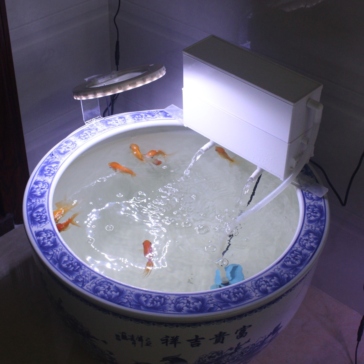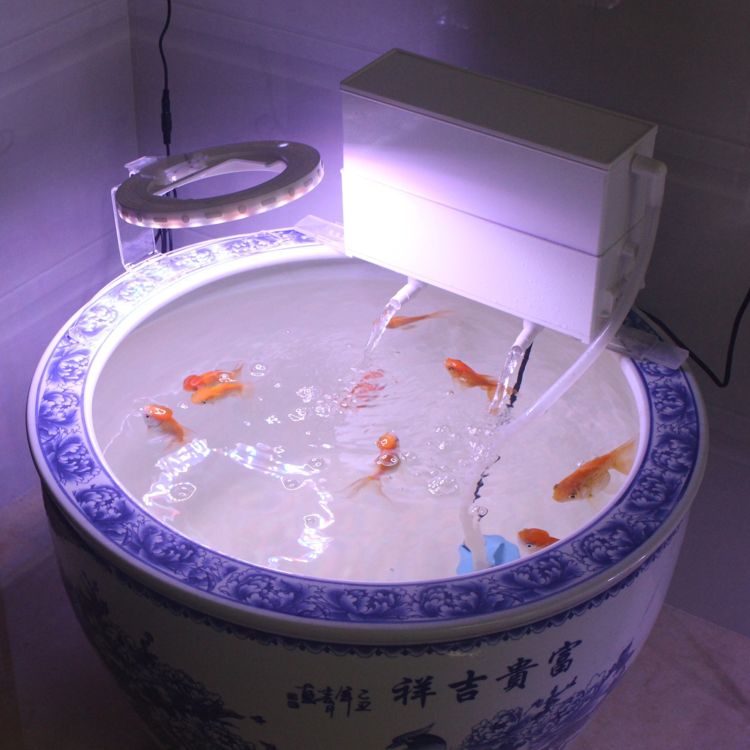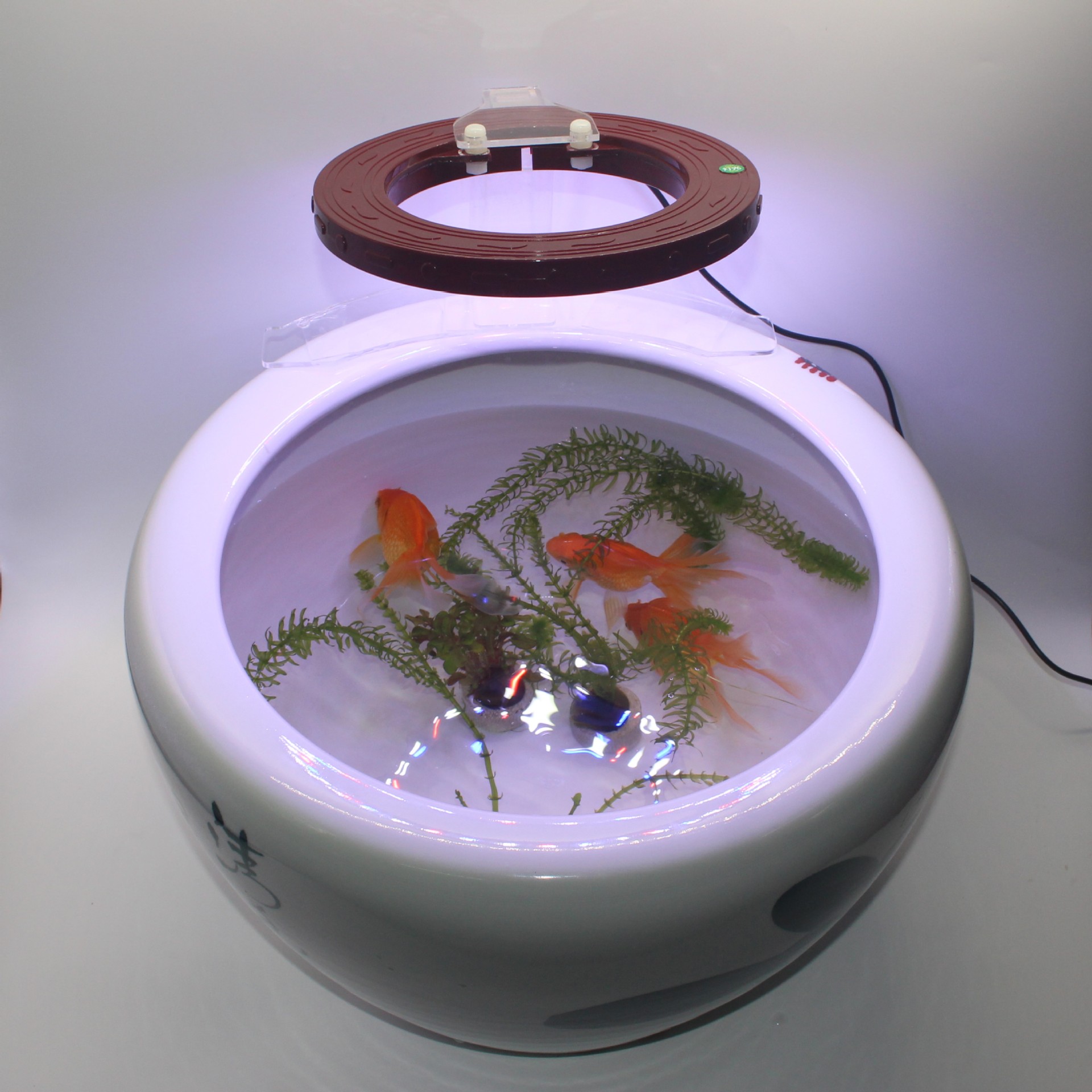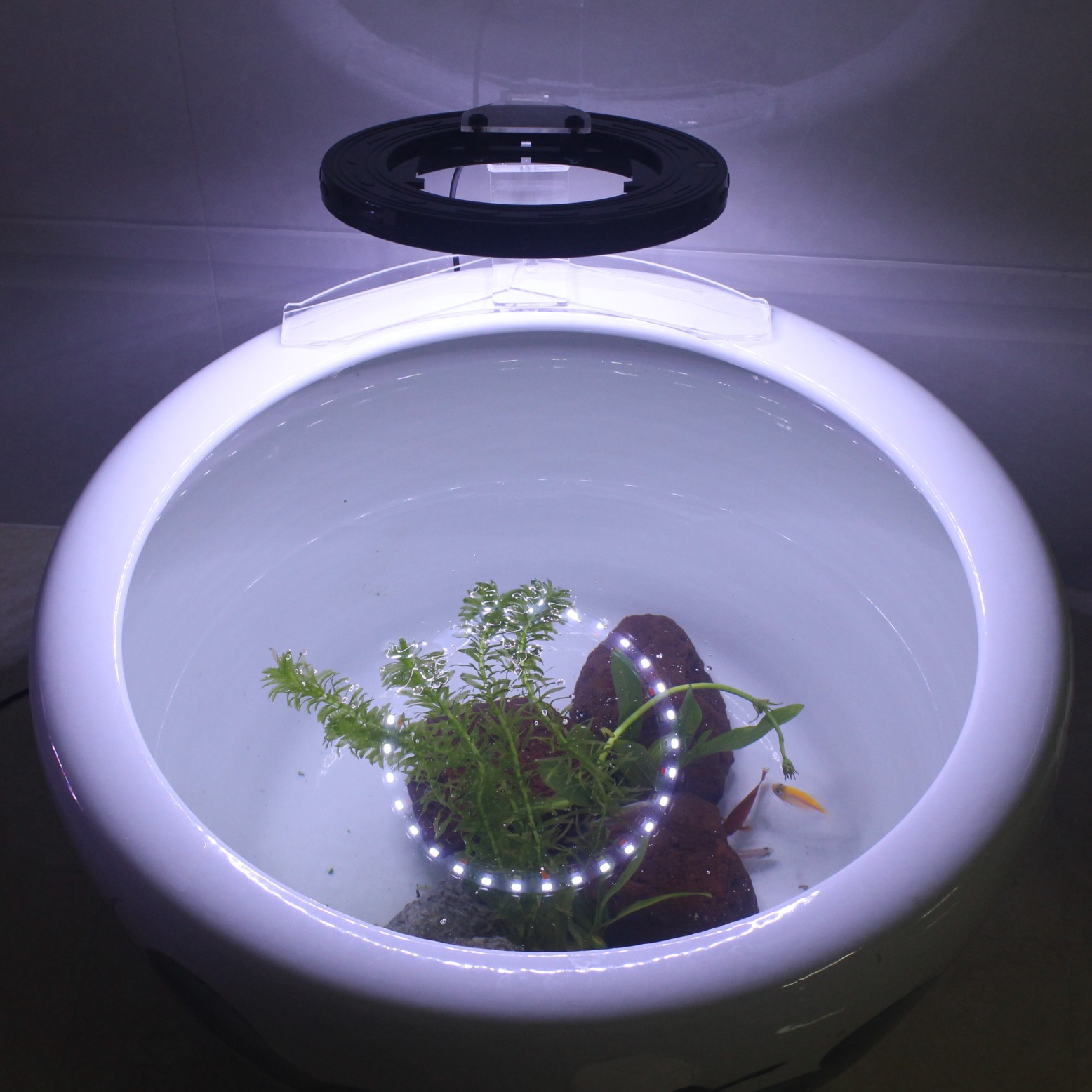 라운드 물 탱크 물고기 분지 수생 잔디 조명 조명 전체 스펙트럼 LED 조정 가능한 화이트 라이트 세라믹 원형 탱크 대형 원형 조명스토어 가기