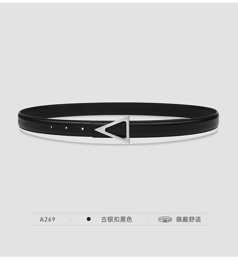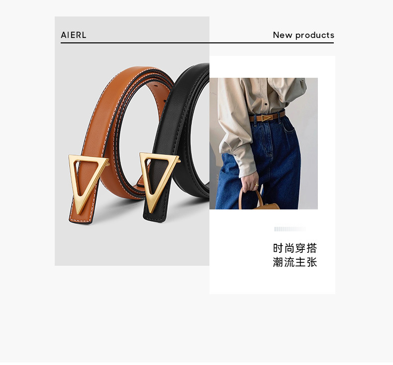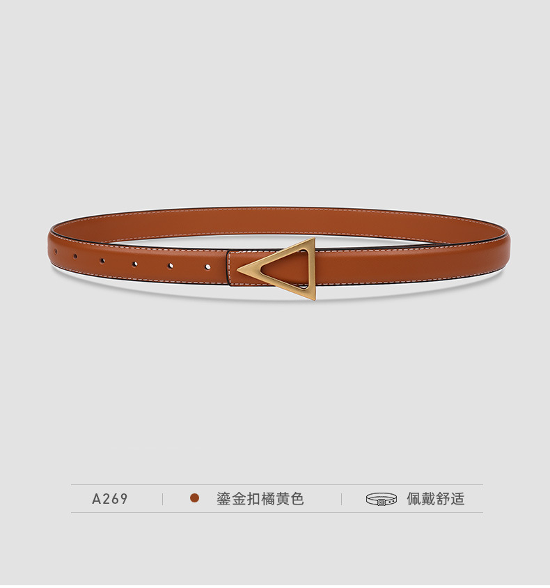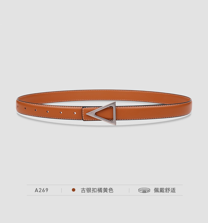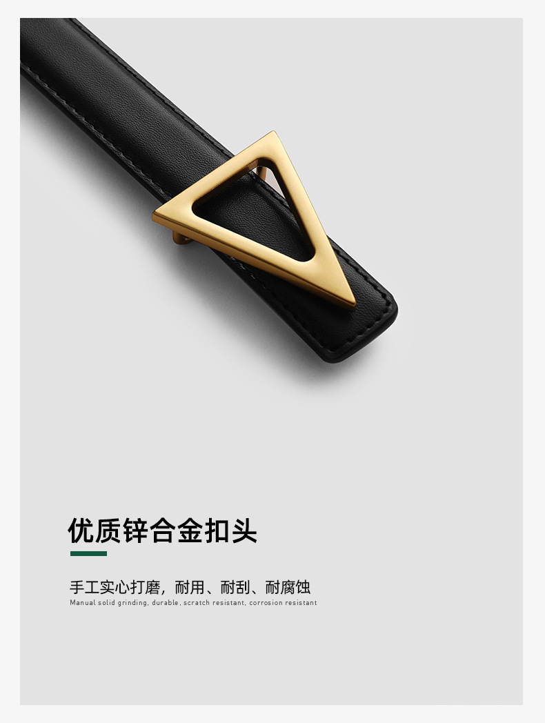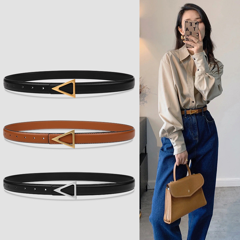 새로운 여자의 삼각형 버클 벨트 정품 가죽 벨트 모든 일치 장식 청바지 얇은 벨트 여성의 원피스 벨트스토어 가기