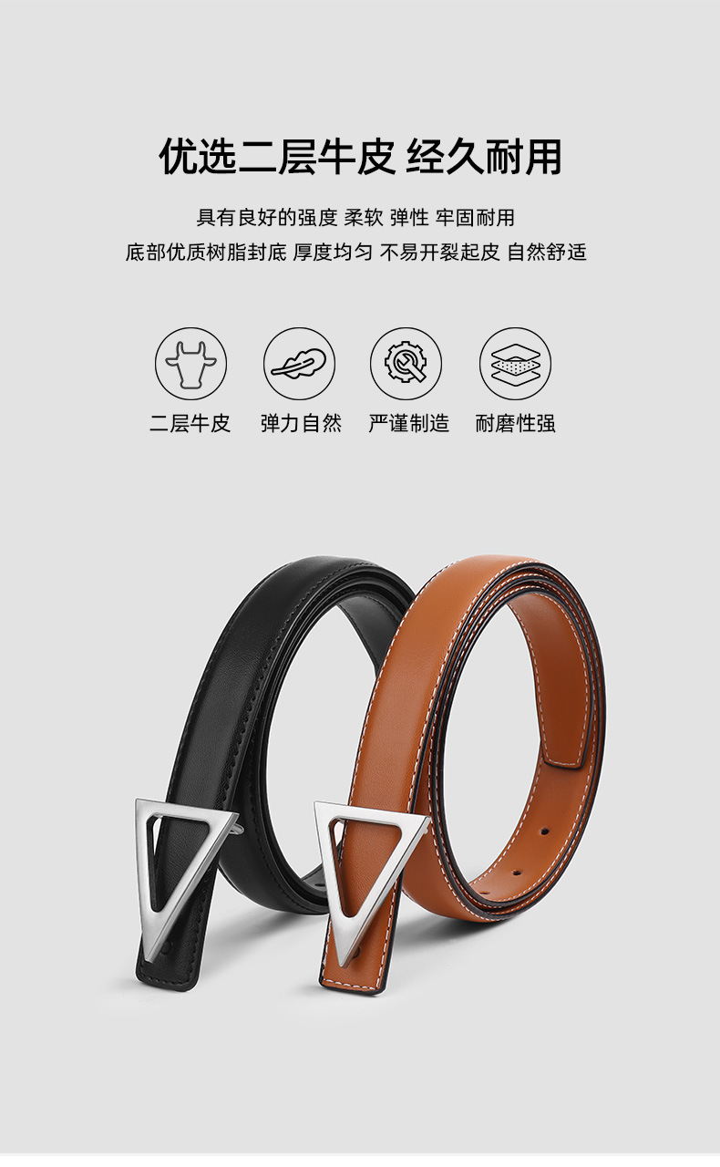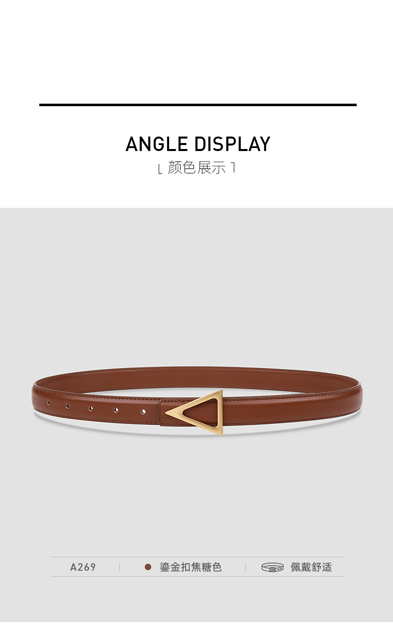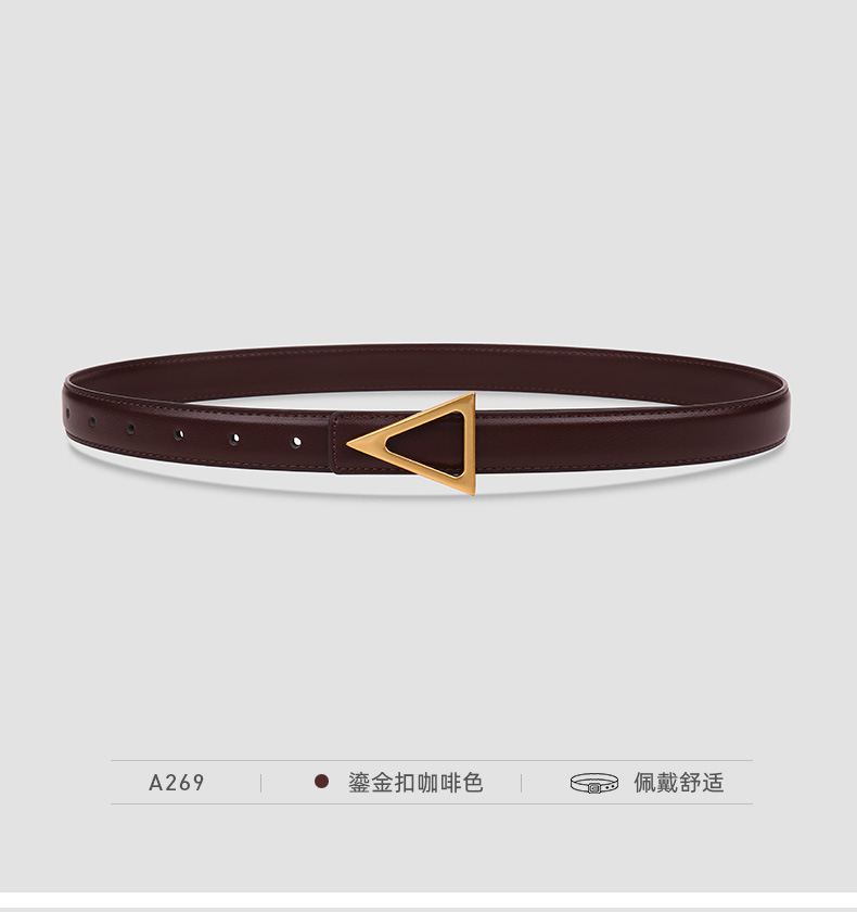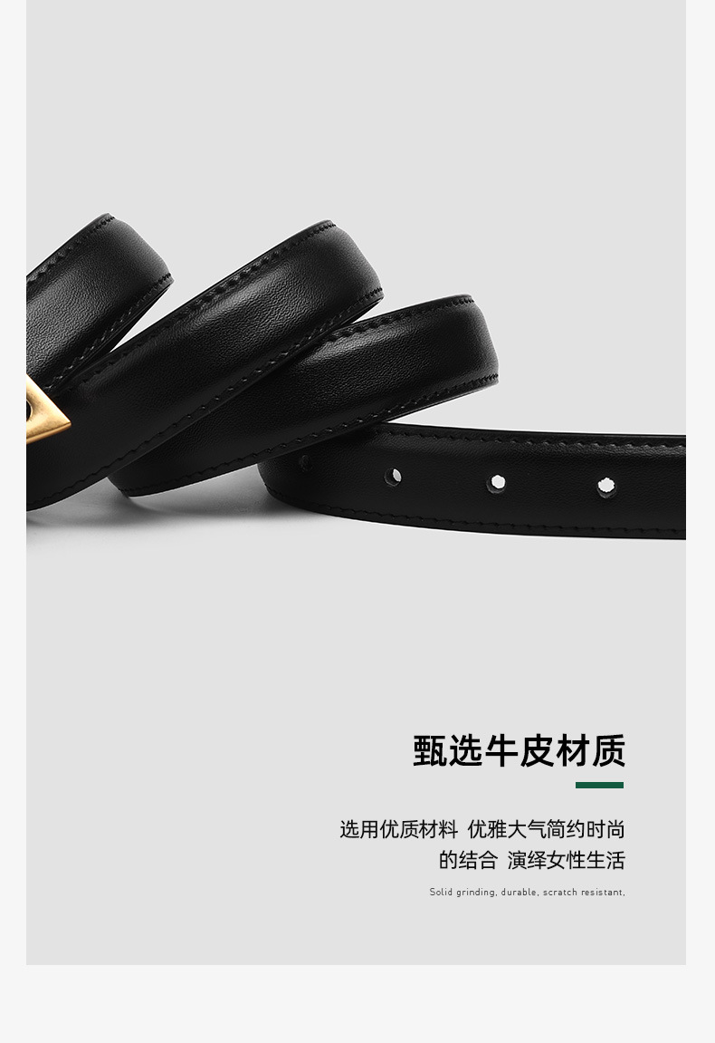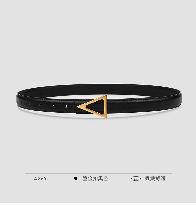 새로운 여자의 삼각형 버클 벨트 정품 가죽 벨트 모든 일치 장식 청바지 얇은 벨트 여성의 원피스 벨트스토어 가기