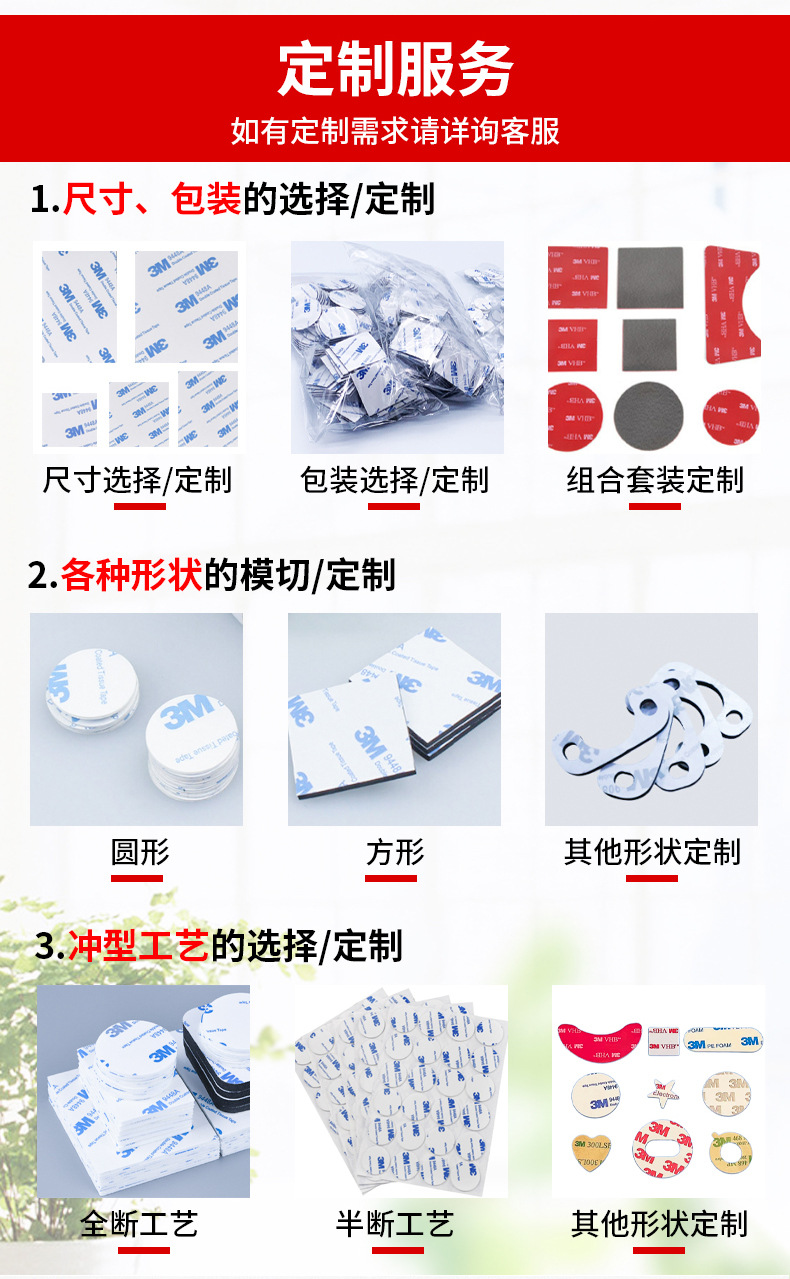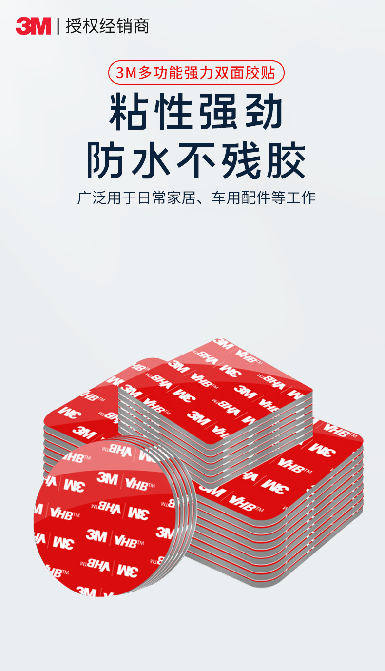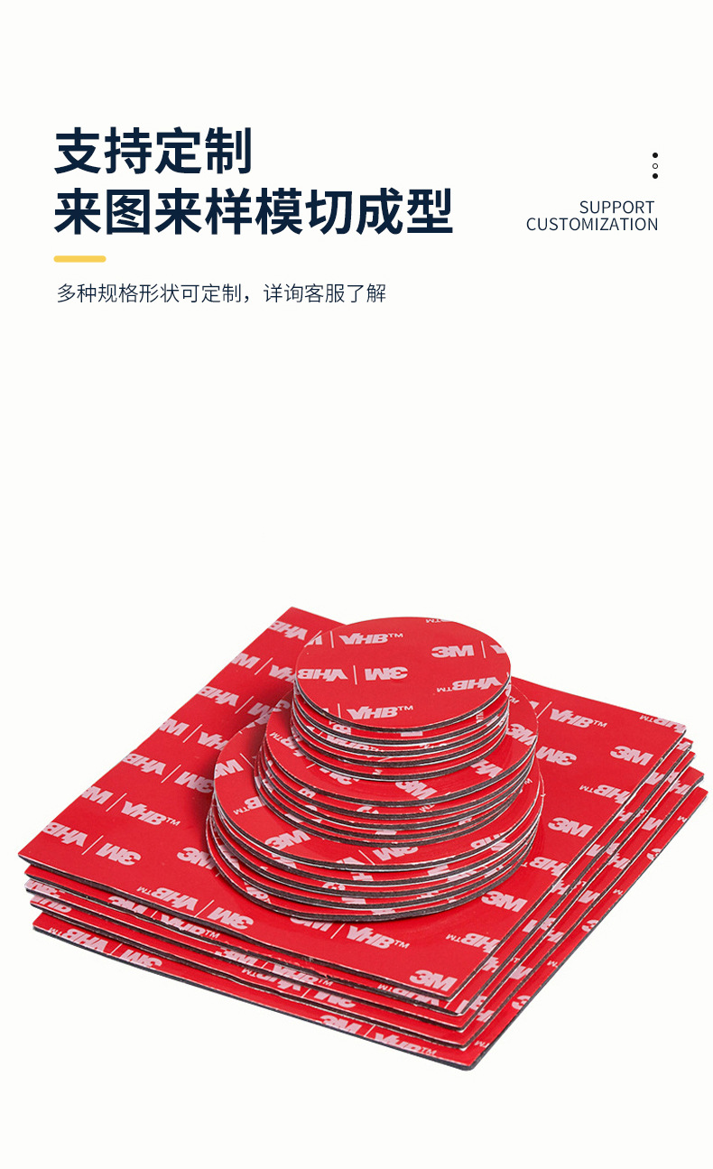3m双面胶贴 vhb模切冲型防水泡棉胶带圆形方形车用强力3m双面胶