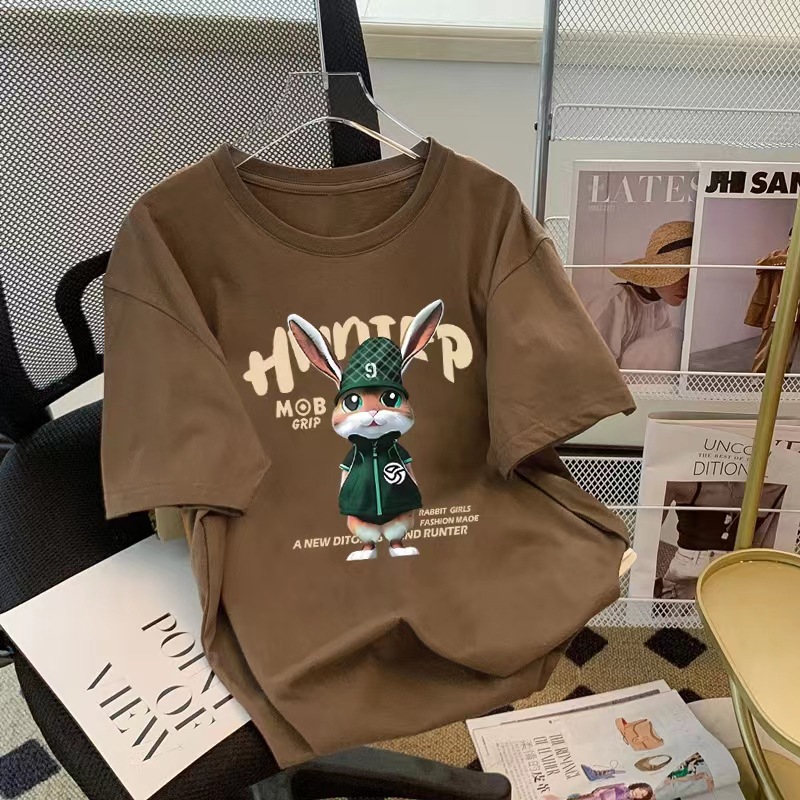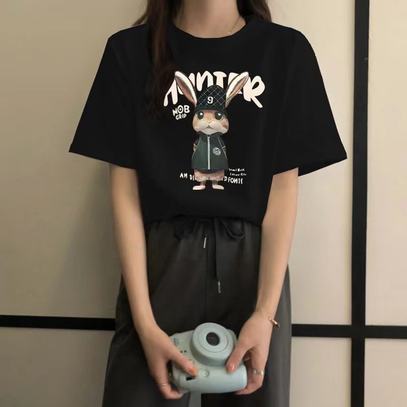 다채로운 어깨 반팔 티셔츠 여성용 2023 여름 새로운 탑 소녀의 부드러운 반팔 티셔츠 만화 귀여운스토어 가기