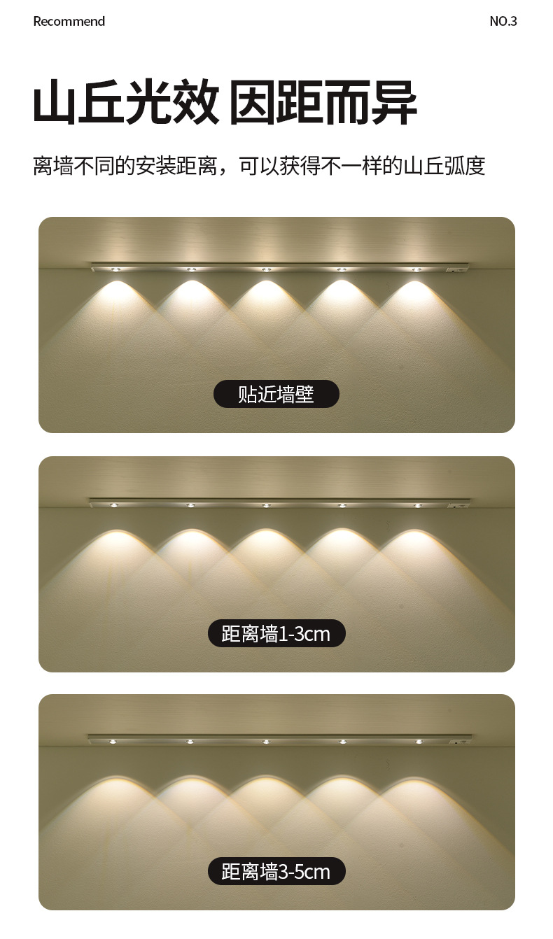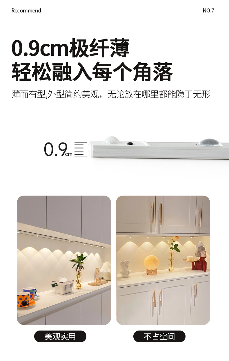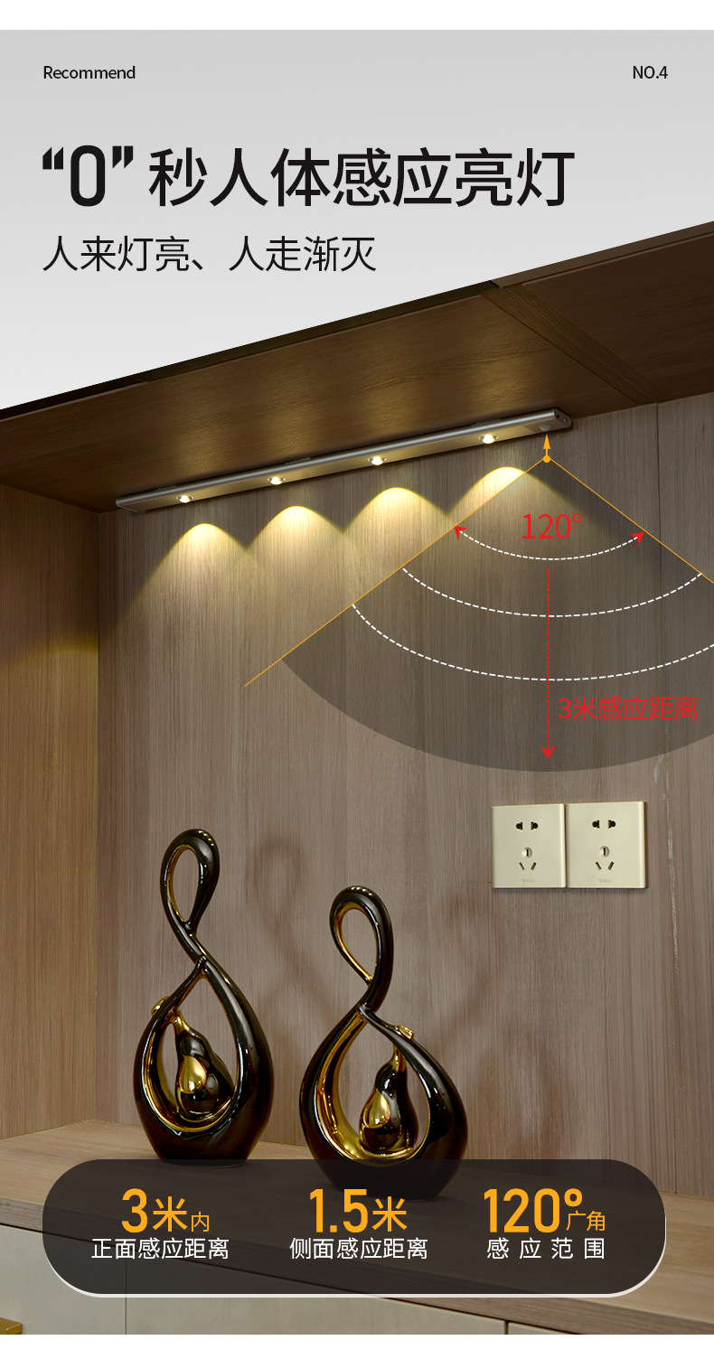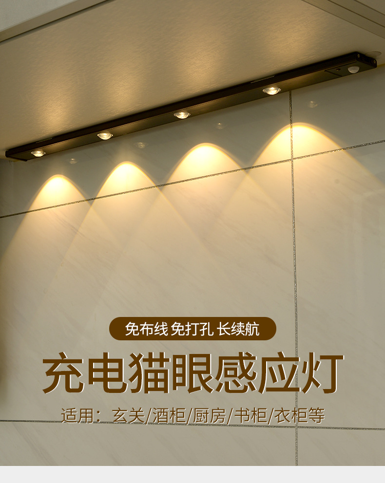 인체 유도 램프 초박형 고양이 눈 언덕 주름진 스포트라이트 롱 유도 램프 (와인 캐비닛 신발 포함) 충전식 자기 매력