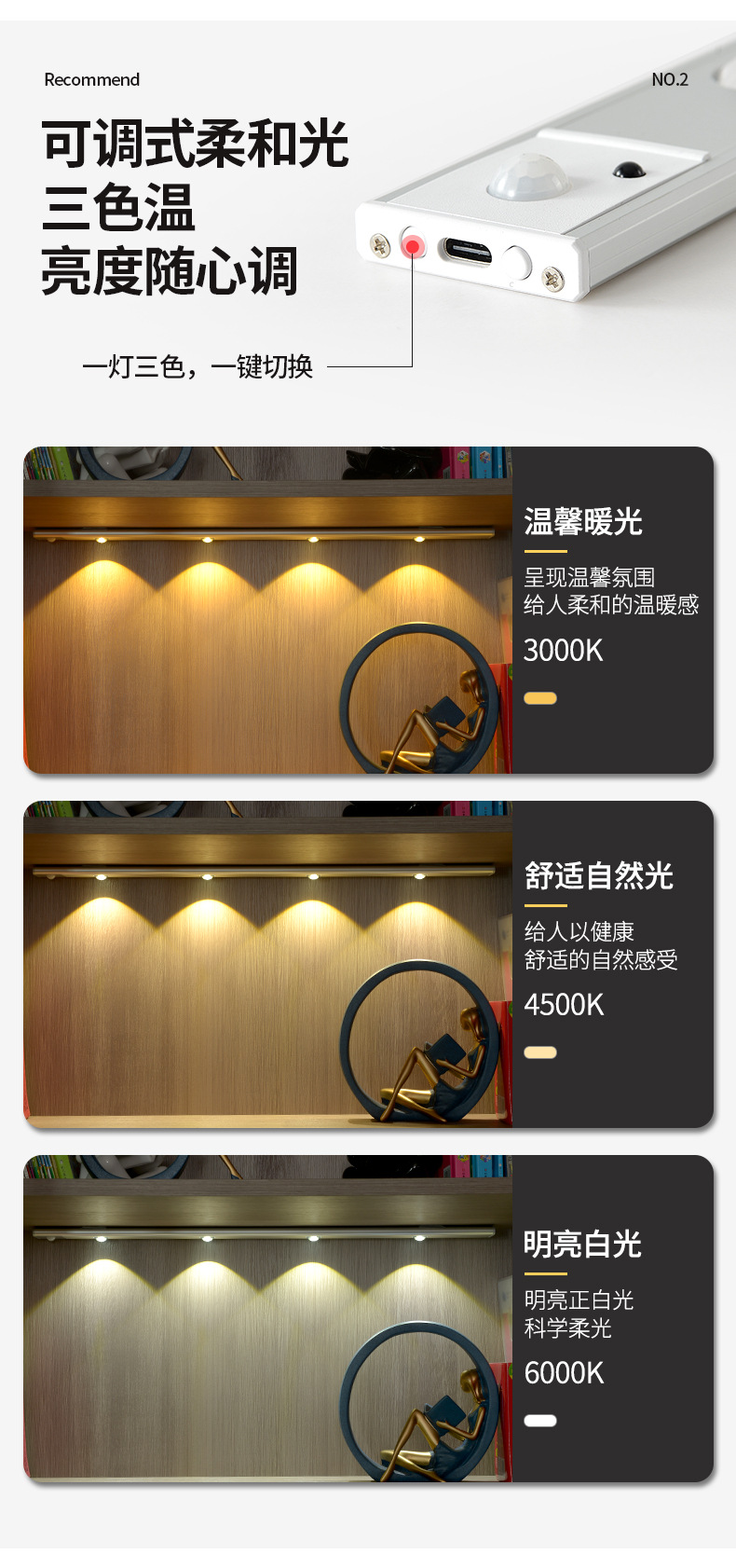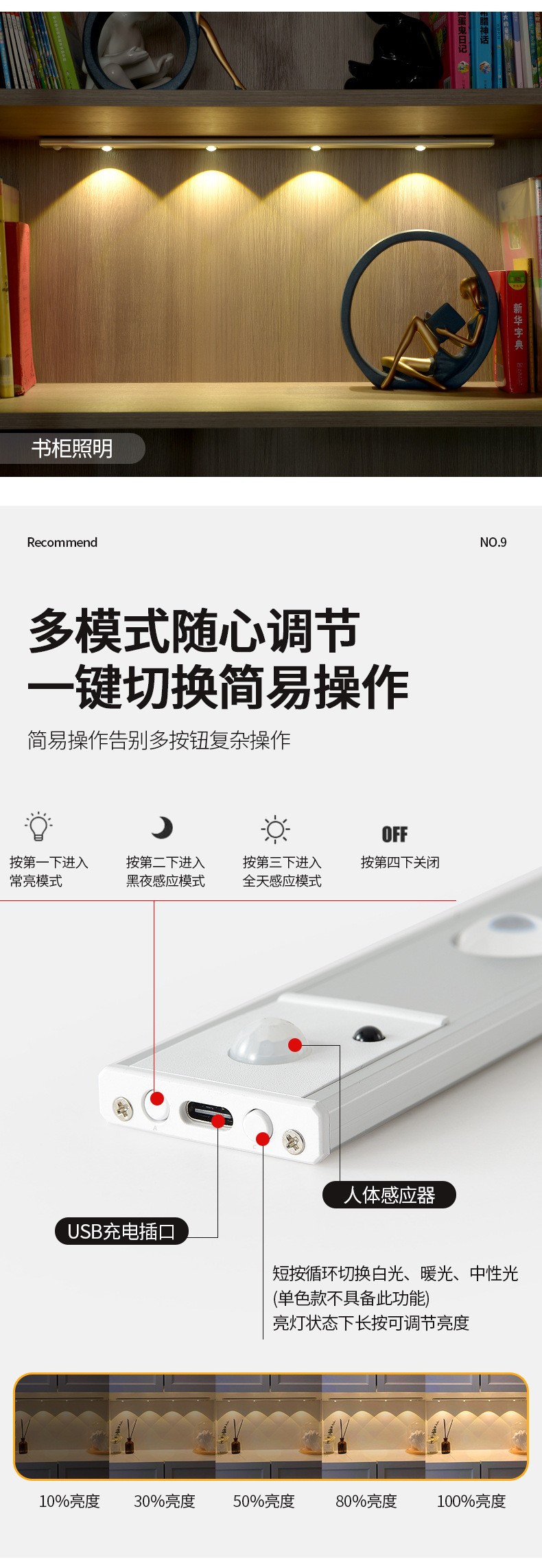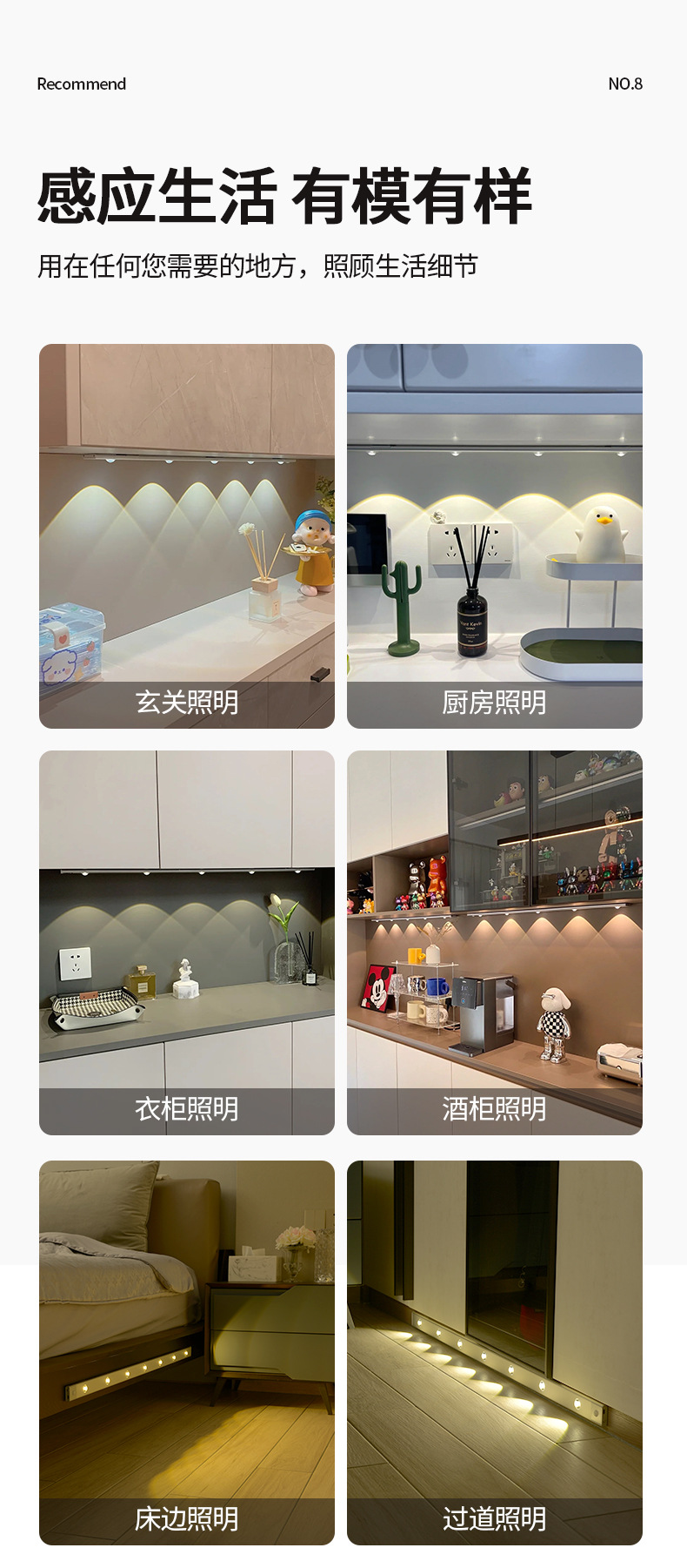 인체 유도 램프 초박형 고양이 눈 언덕 주름진 스포트라이트 롱 유도 램프 (와인 캐비닛 신발 포함) 충전식 자기 매력