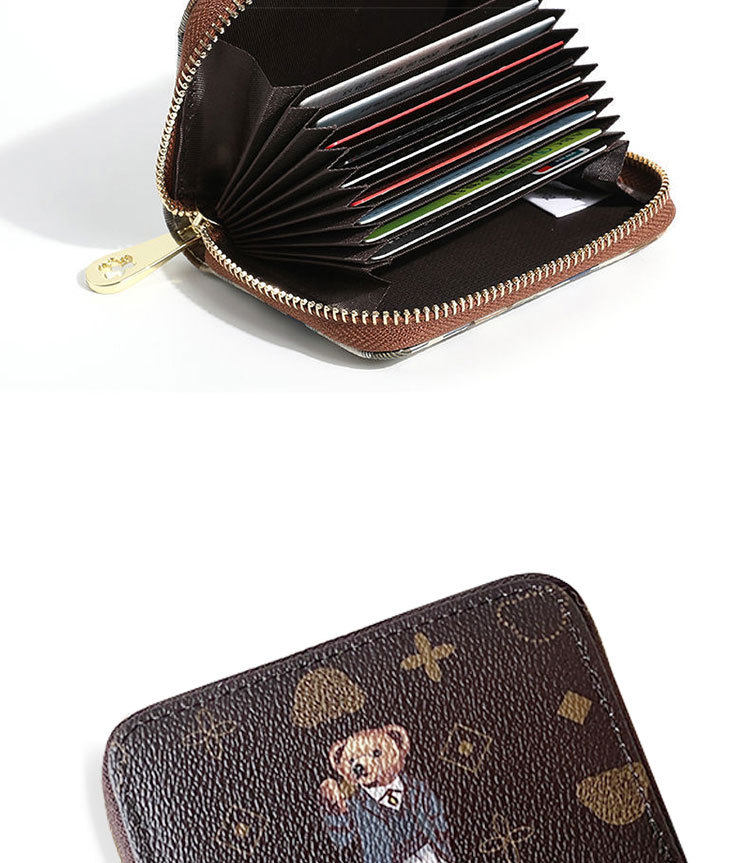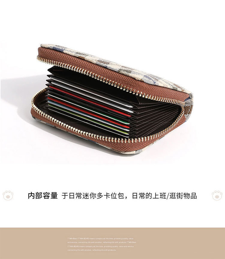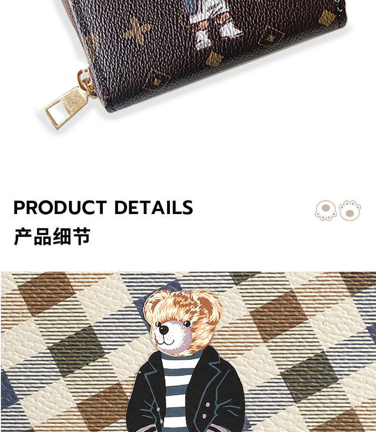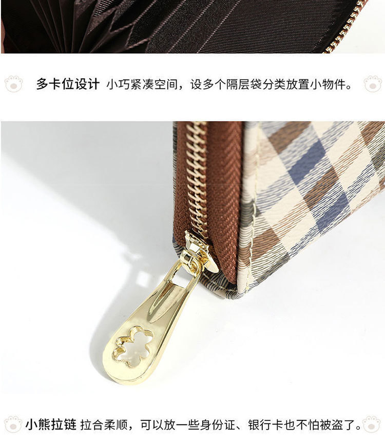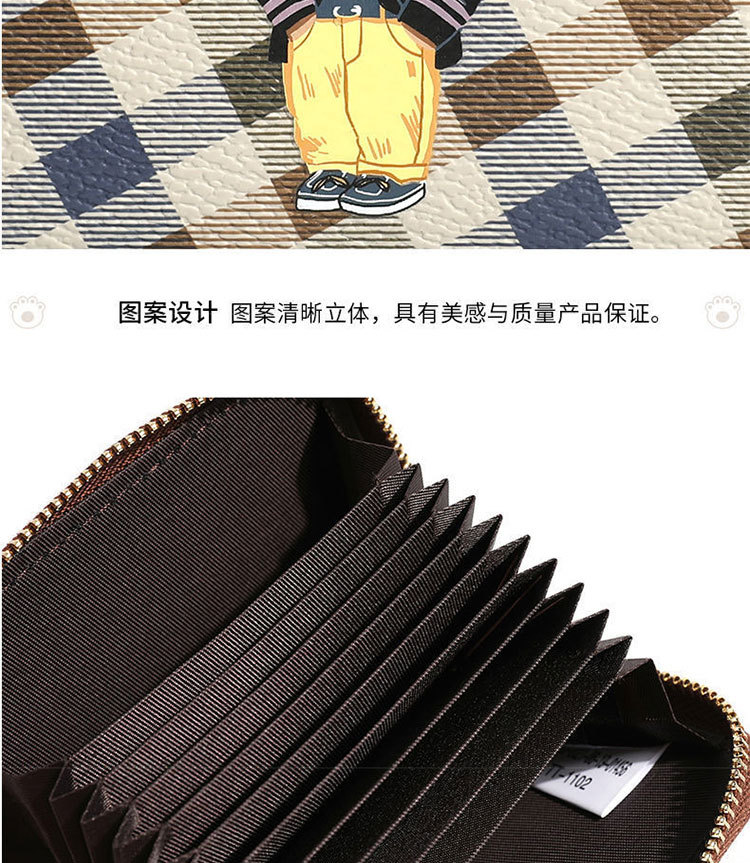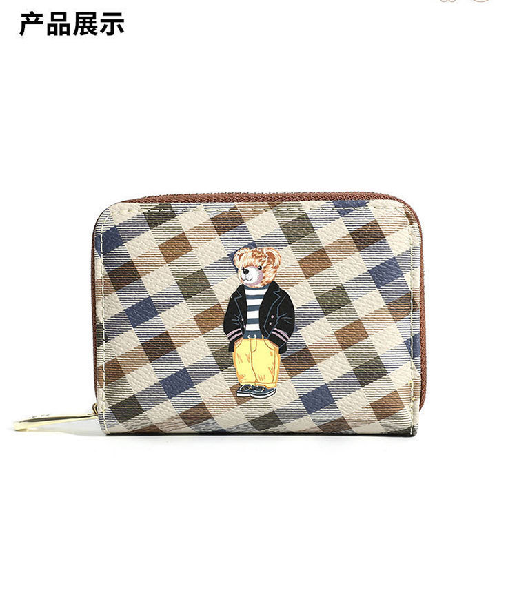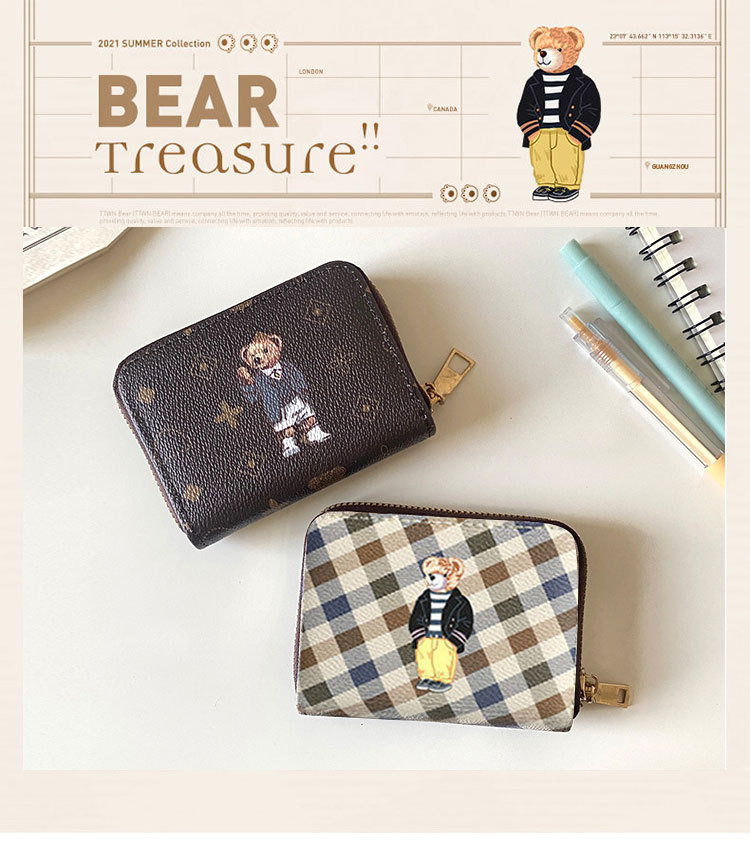 곰 격자 무늬 인쇄 학생 장기 카드 가방 작은 지갑 여성용 멀티 카드 ID 가방 카드 보관 동전 지갑스토어 가기