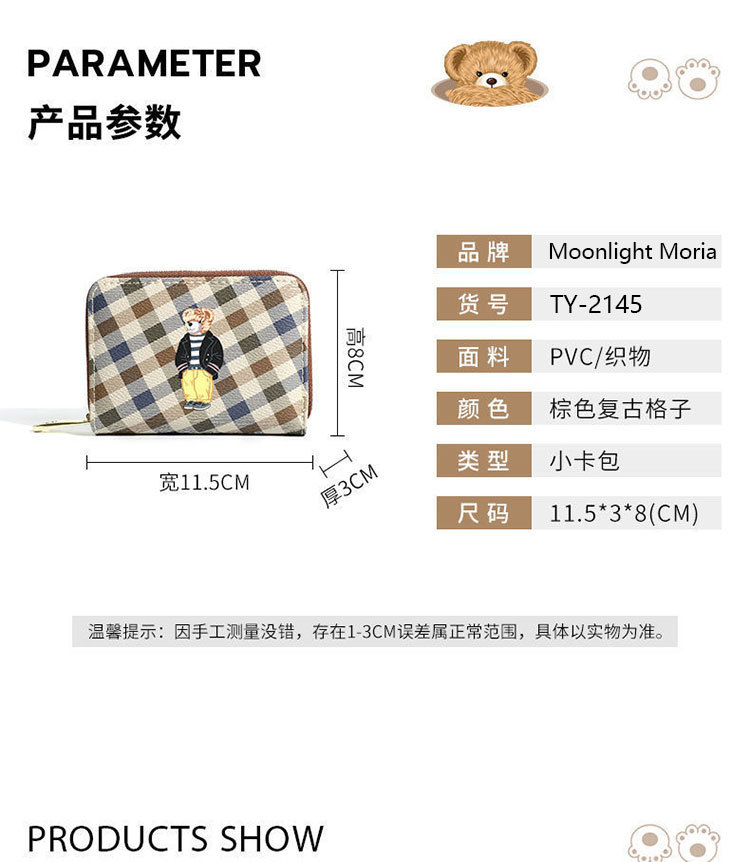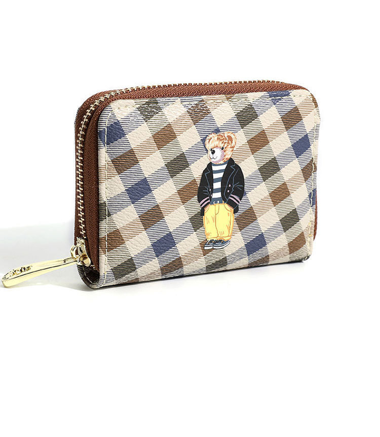 곰 격자 무늬 인쇄 학생 장기 카드 가방 작은 지갑 여성용 멀티 카드 ID 가방 카드 보관 동전 지갑
