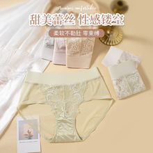 섹시한 여성 속옷 경량 원활한 스티칭 새틴 럭셔리 미드 웨이스트 여성 바지 면 가랑이 고탄성 여행스토어 가기