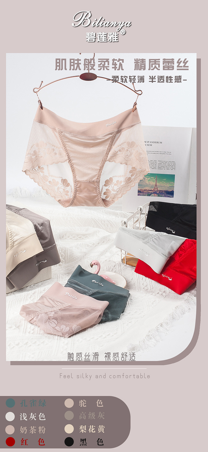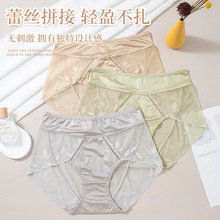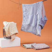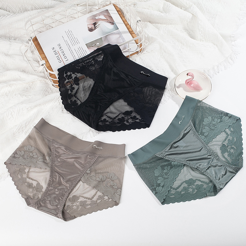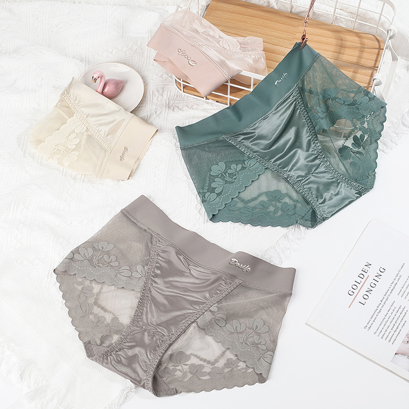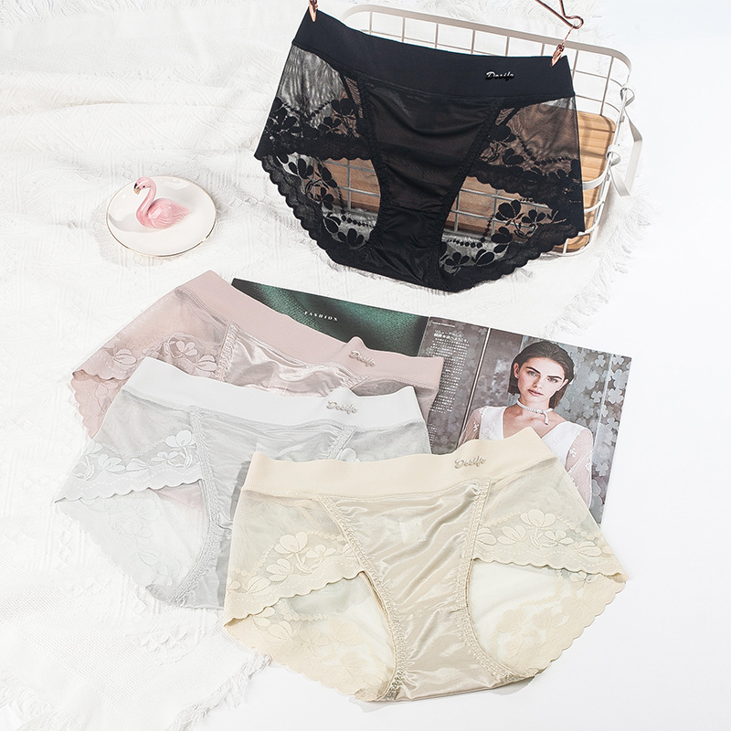 섹시한 여성 속옷 경량 원활한 스티칭 새틴 럭셔리 미드 웨이스트 여성 바지 면 가랑이 고탄성 여행
