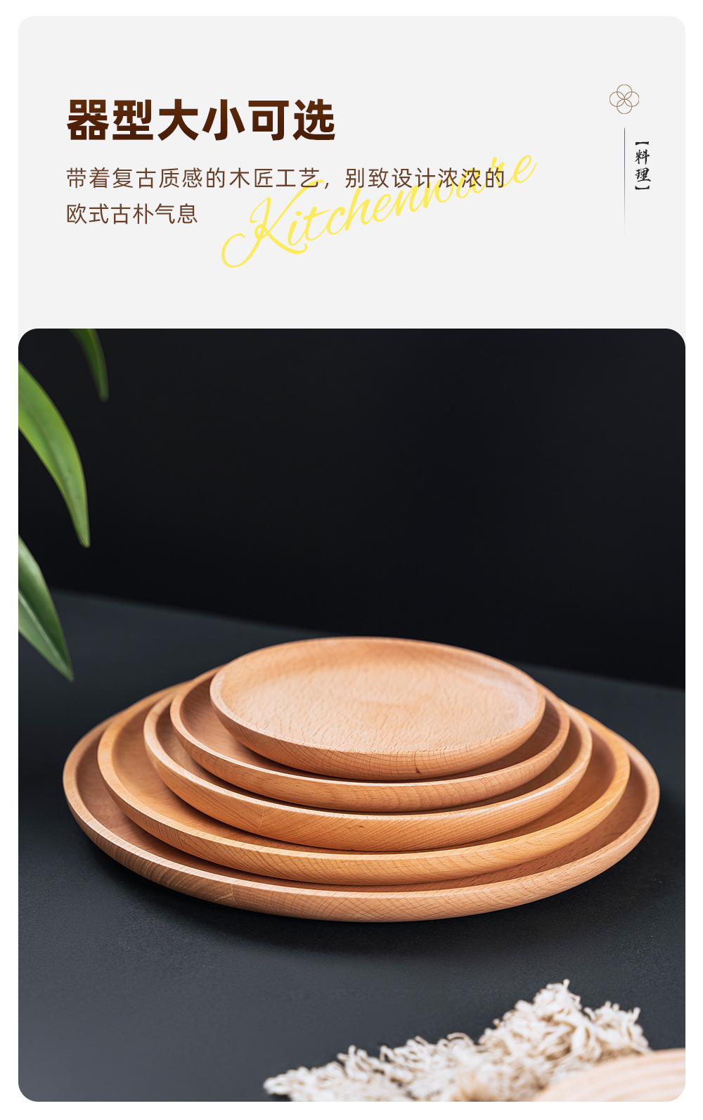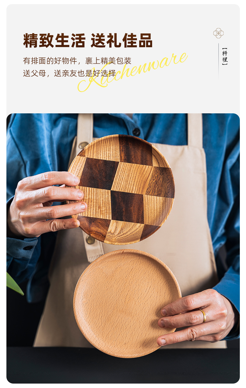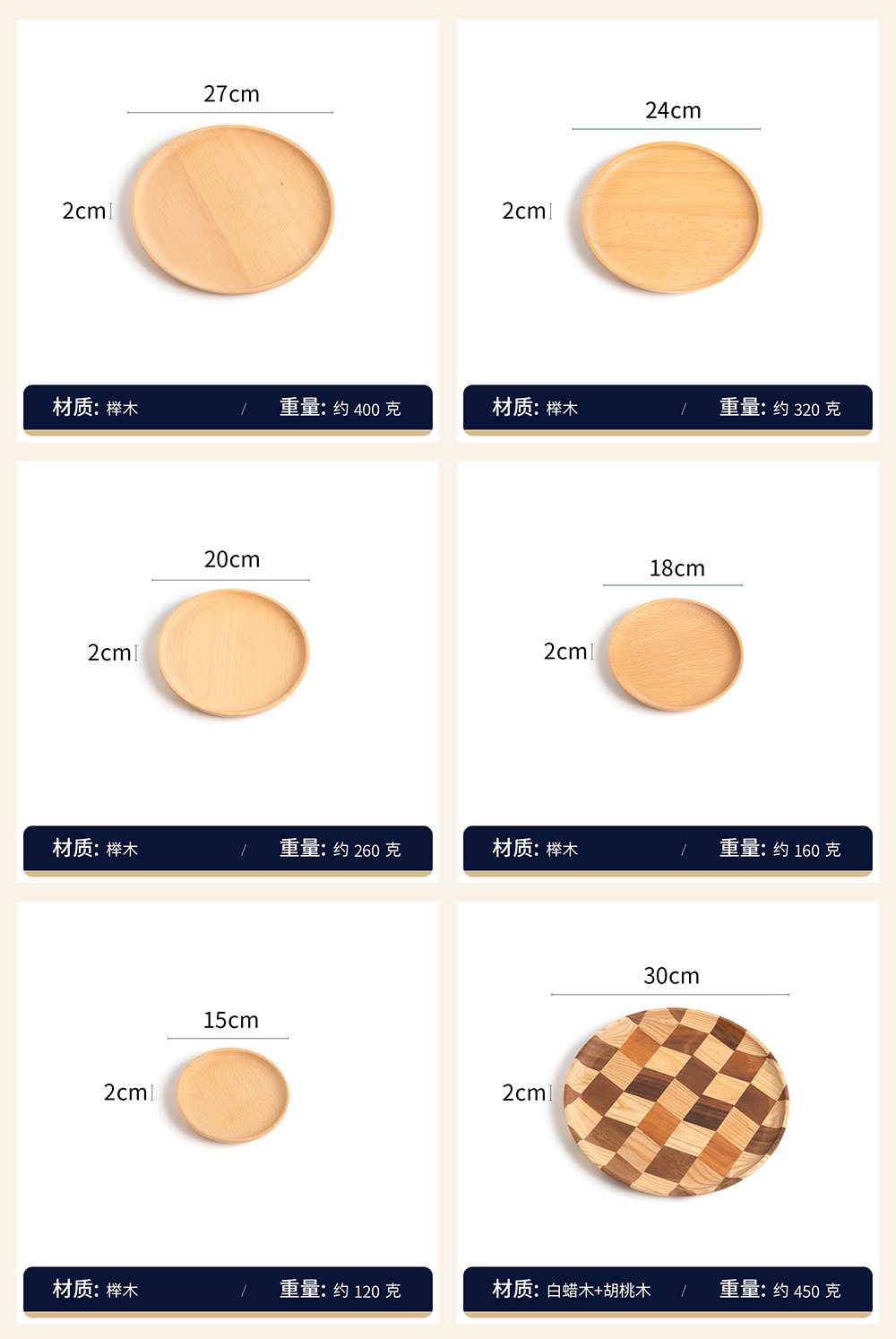 재고 창조적 인 라운드 흑백 바둑판 판 판 호텔 트레이 가정 너도밤 나무 전체 나무 과일 접시 도매