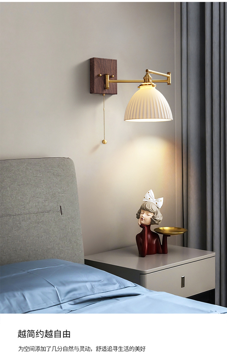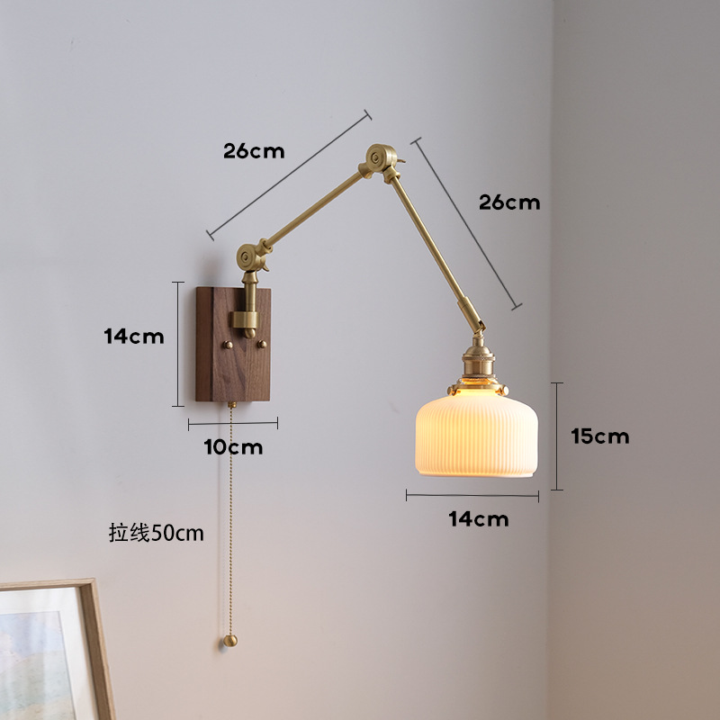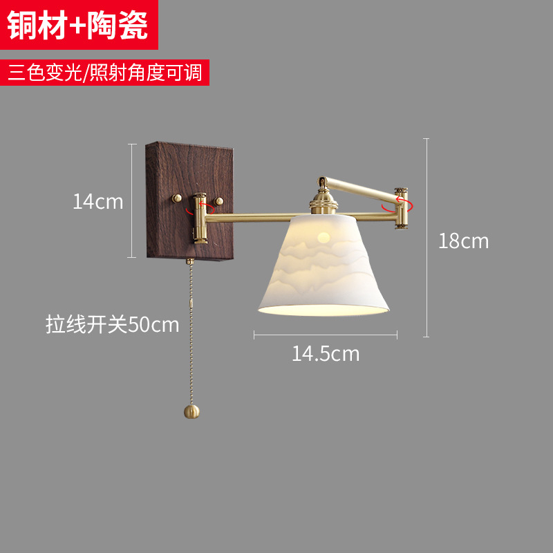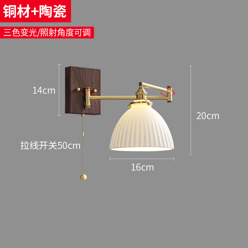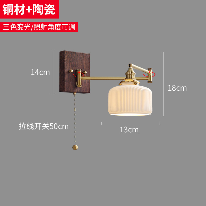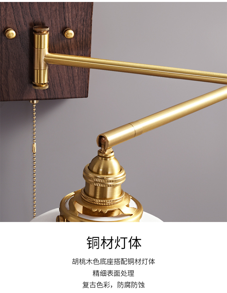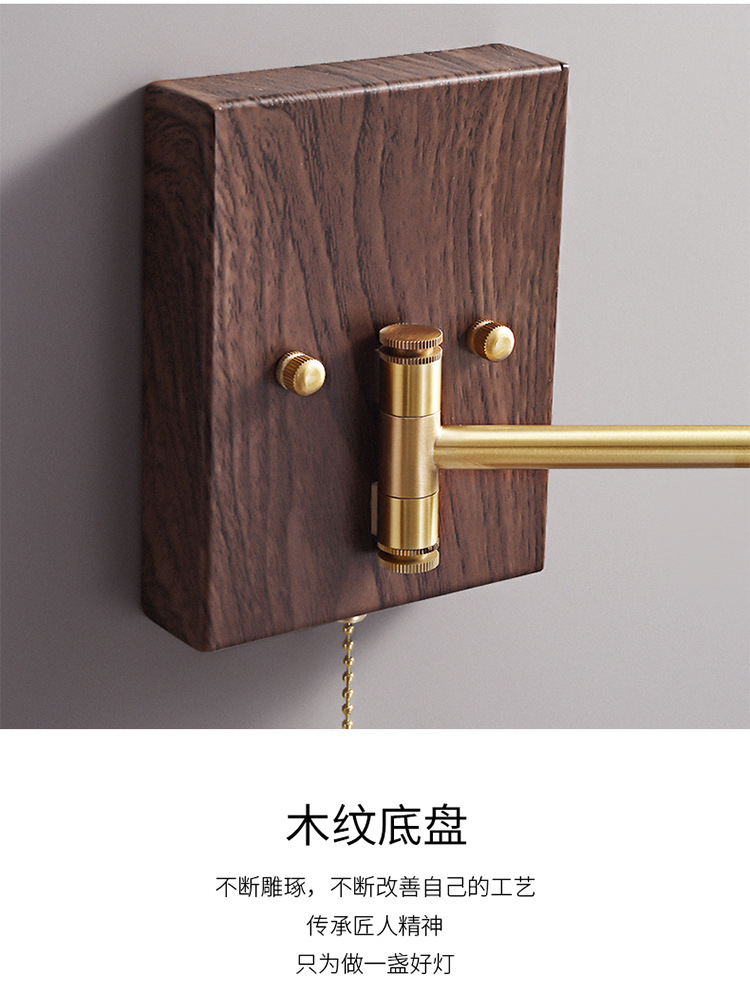 북유럽 심플 모던 침실 로커블 라이트, 올 코퍼 벽걸이 램프, 거실 및 서재용 회전 및 신축 가능한 라이트