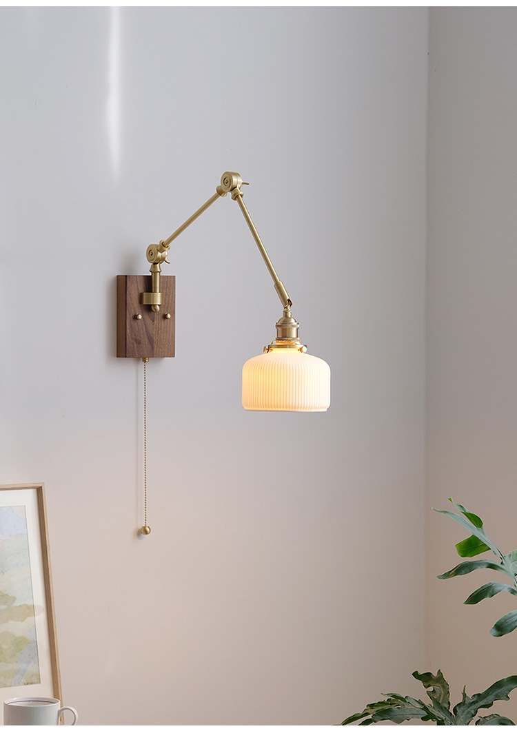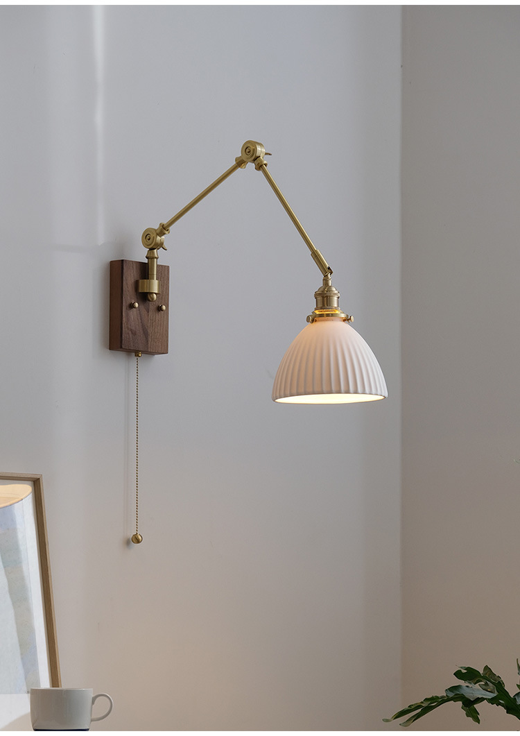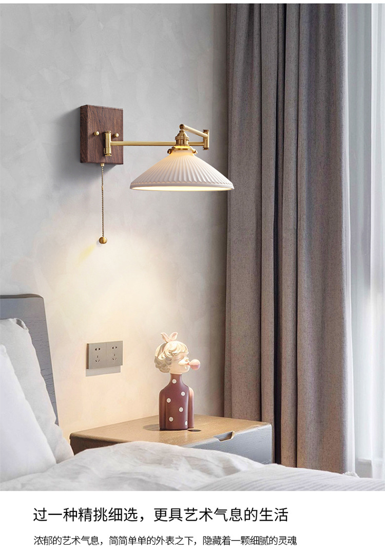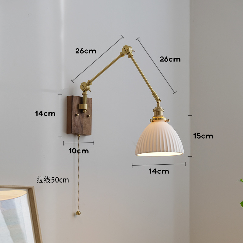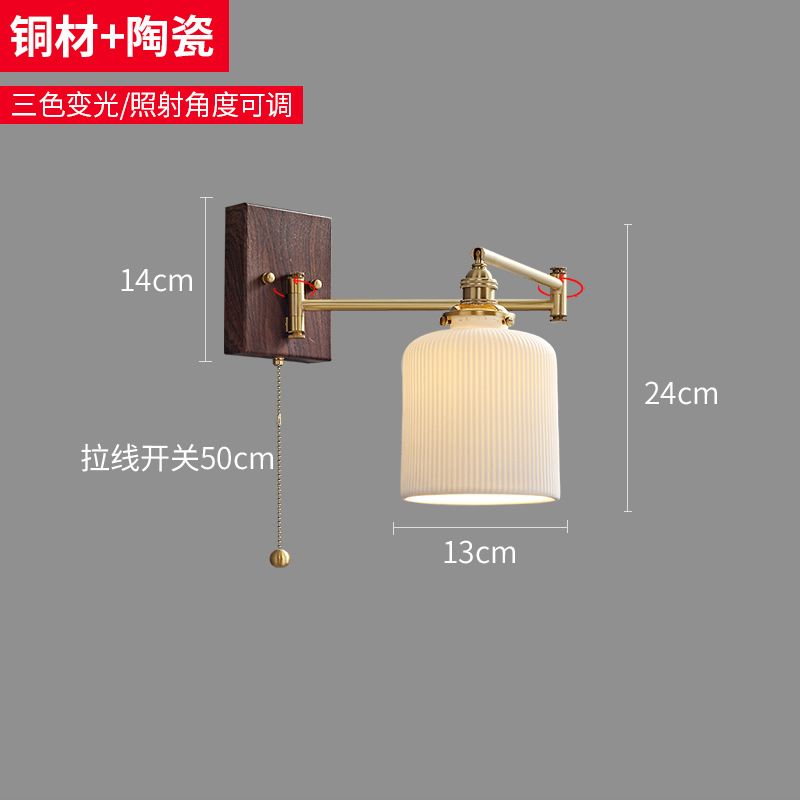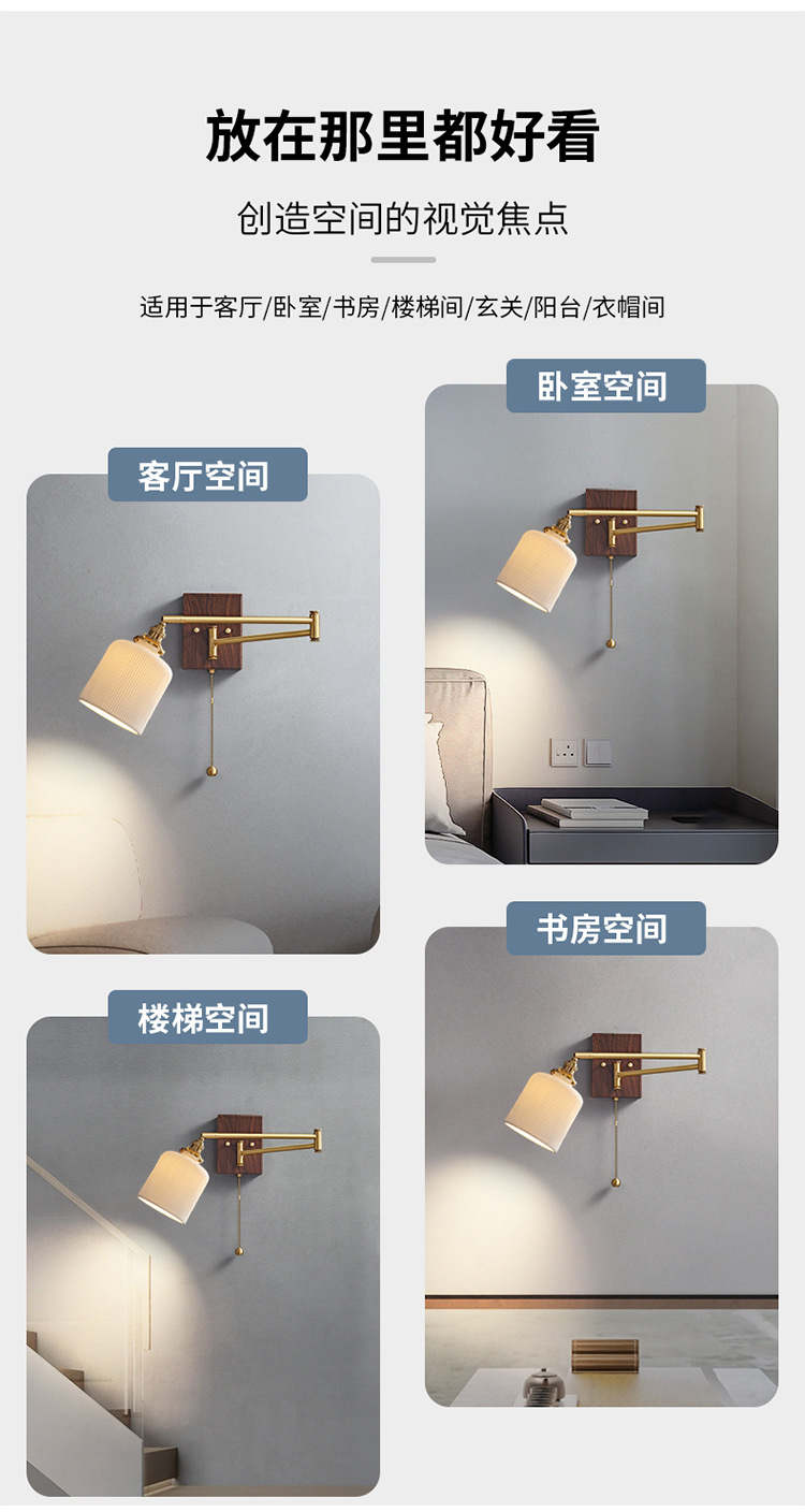 북유럽 심플 모던 침실 로커블 라이트, 올 코퍼 벽걸이 램프, 거실 및 서재용 회전 및 신축 가능한 라이트