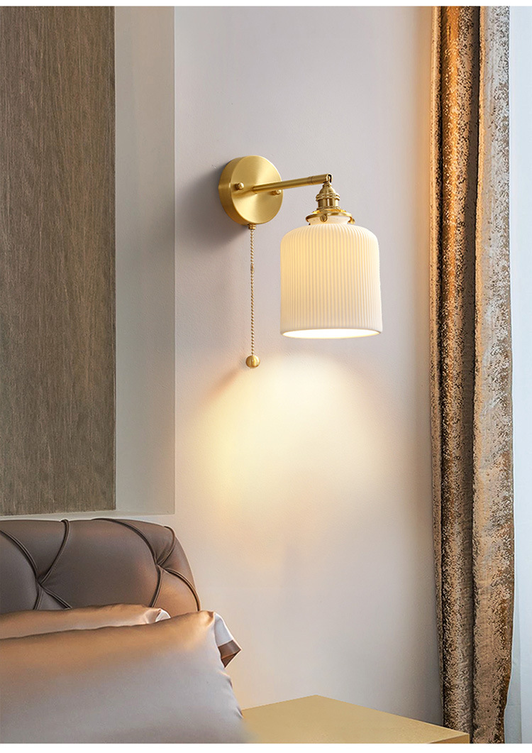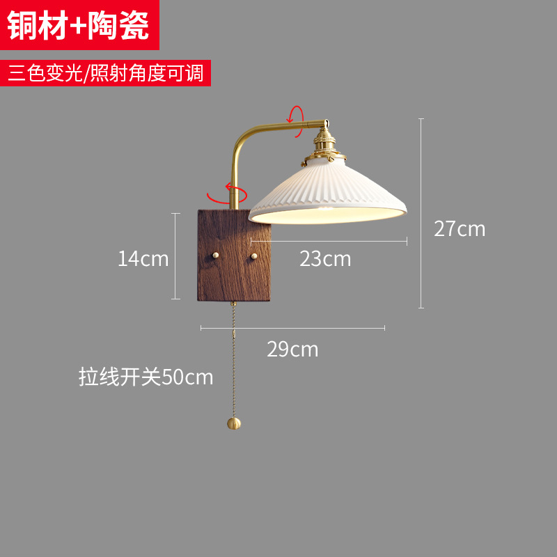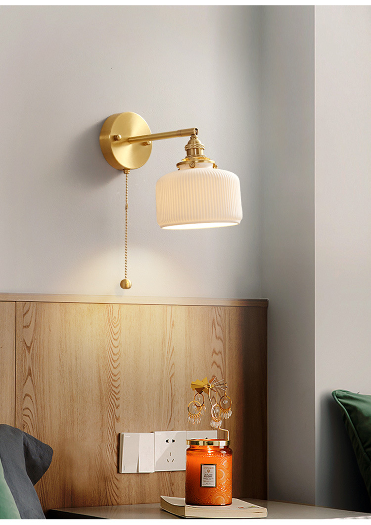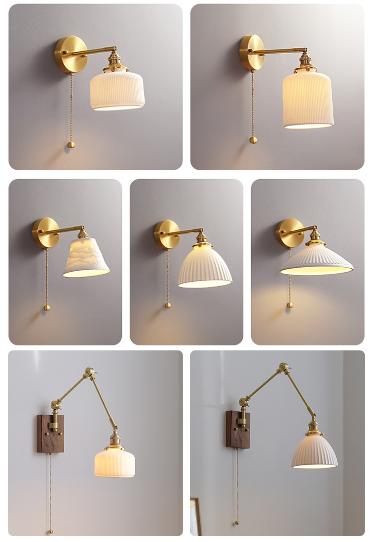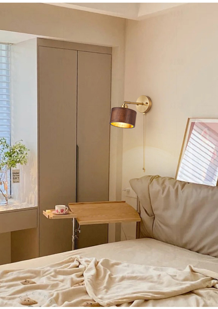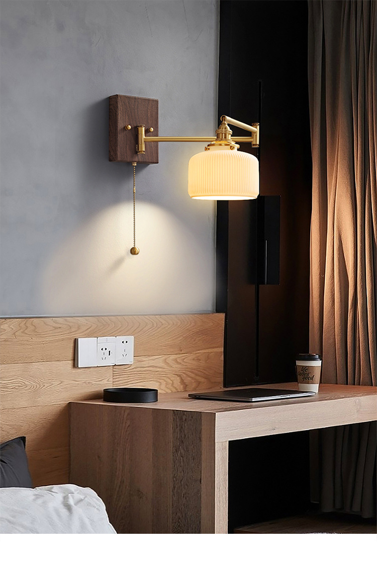 북유럽 심플 모던 침실 로커블 라이트, 올 코퍼 벽걸이 램프, 거실 및 서재용 회전 및 신축 가능한 라이트