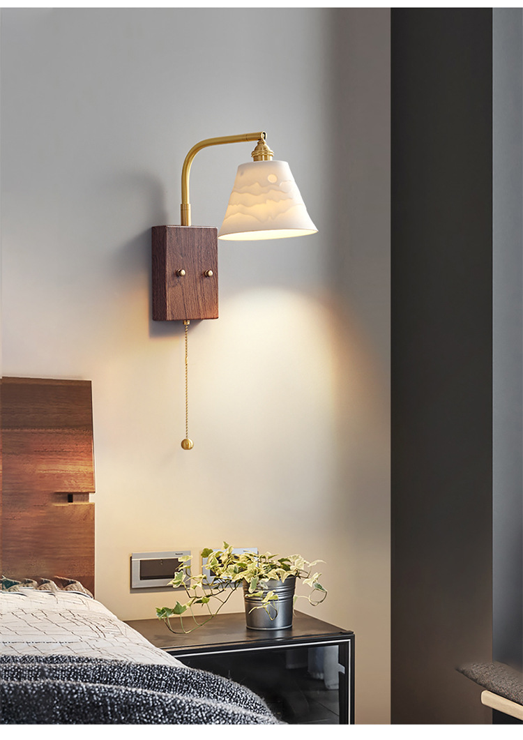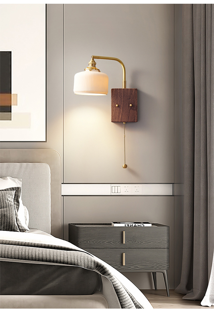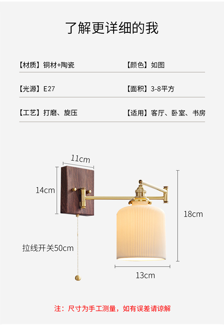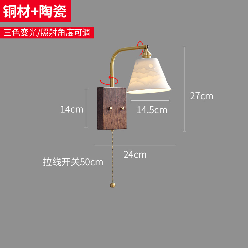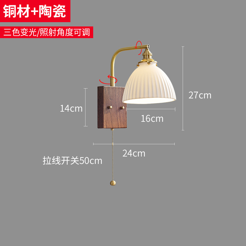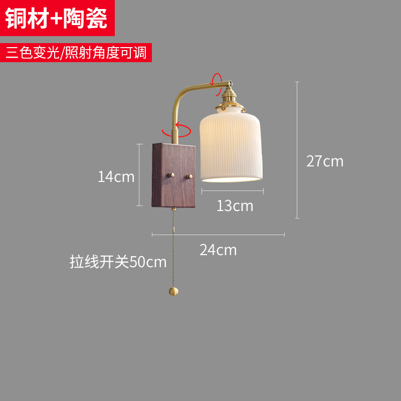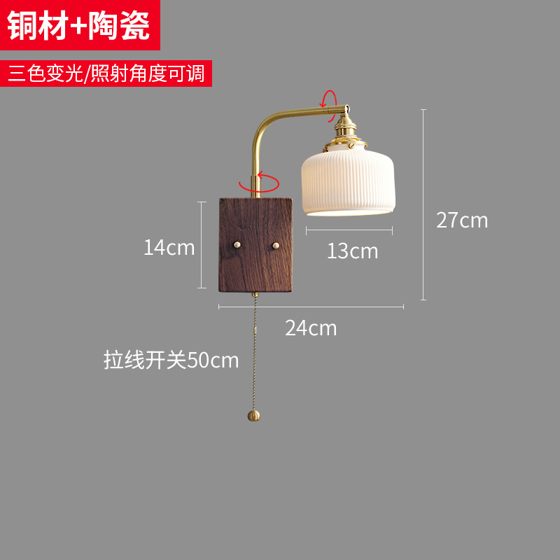 북유럽 심플 모던 침실 로커블 라이트, 올 코퍼 벽걸이 램프, 거실 및 서재용 회전 및 신축 가능한 라이트
