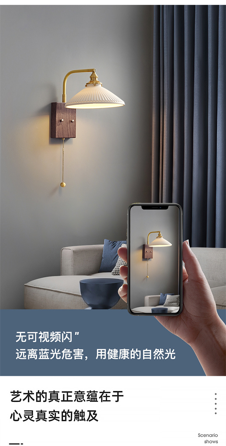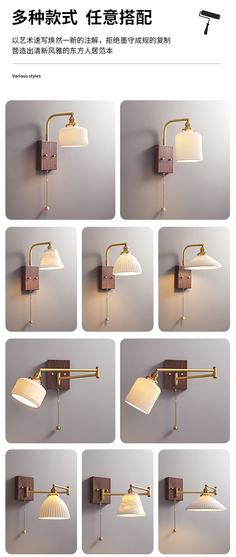 북유럽 심플 모던 침실 로커블 라이트, 올 코퍼 벽걸이 램프, 거실 및 서재용 회전 및 신축 가능한 라이트스토어 가기