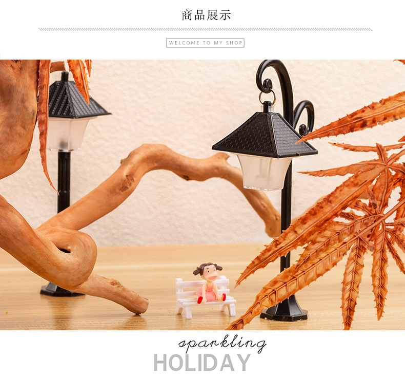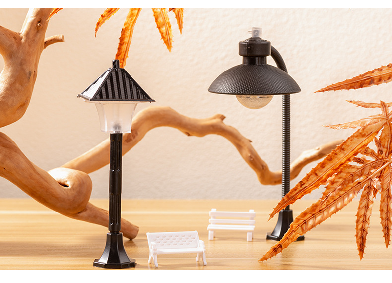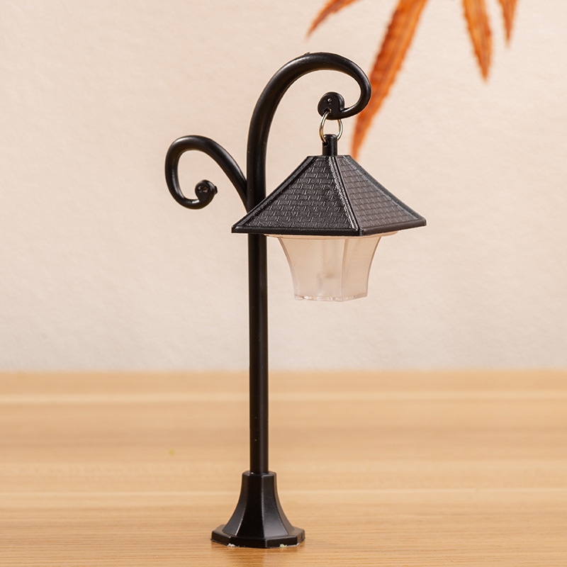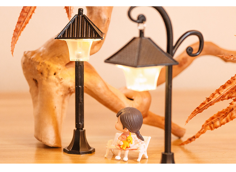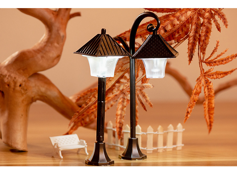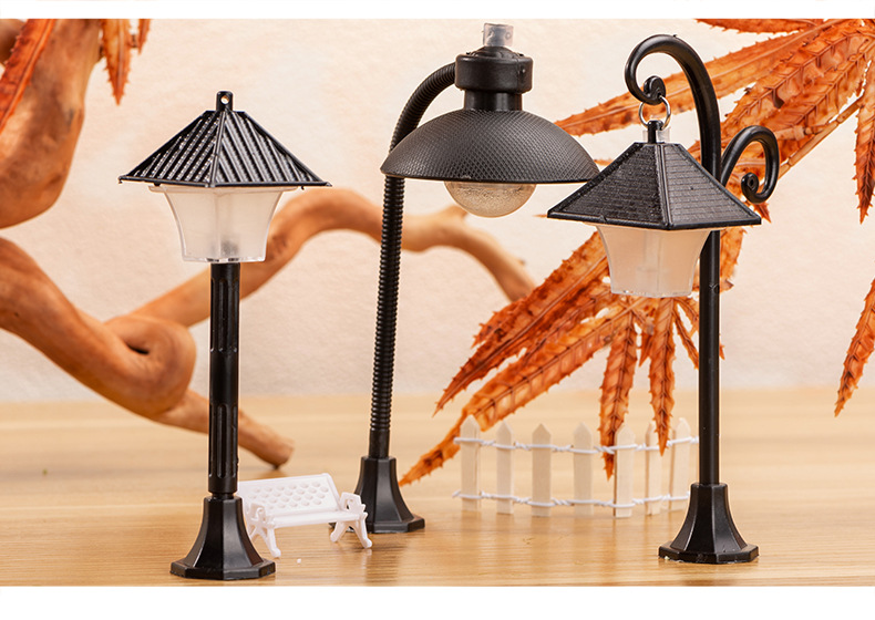 마이크로 풍경 플라스틱 모델 가로등 작은 장식품 유럽 길가 장식 창조적 인 조경 액세서리 2 색 디스플레이 램프