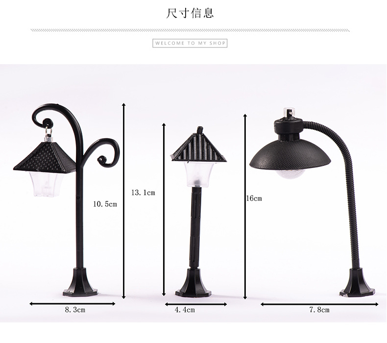 마이크로 풍경 플라스틱 모델 가로등 작은 장식품 유럽 길가 장식 창조적 인 조경 액세서리 2 색 디스플레이 램프스토어 가기