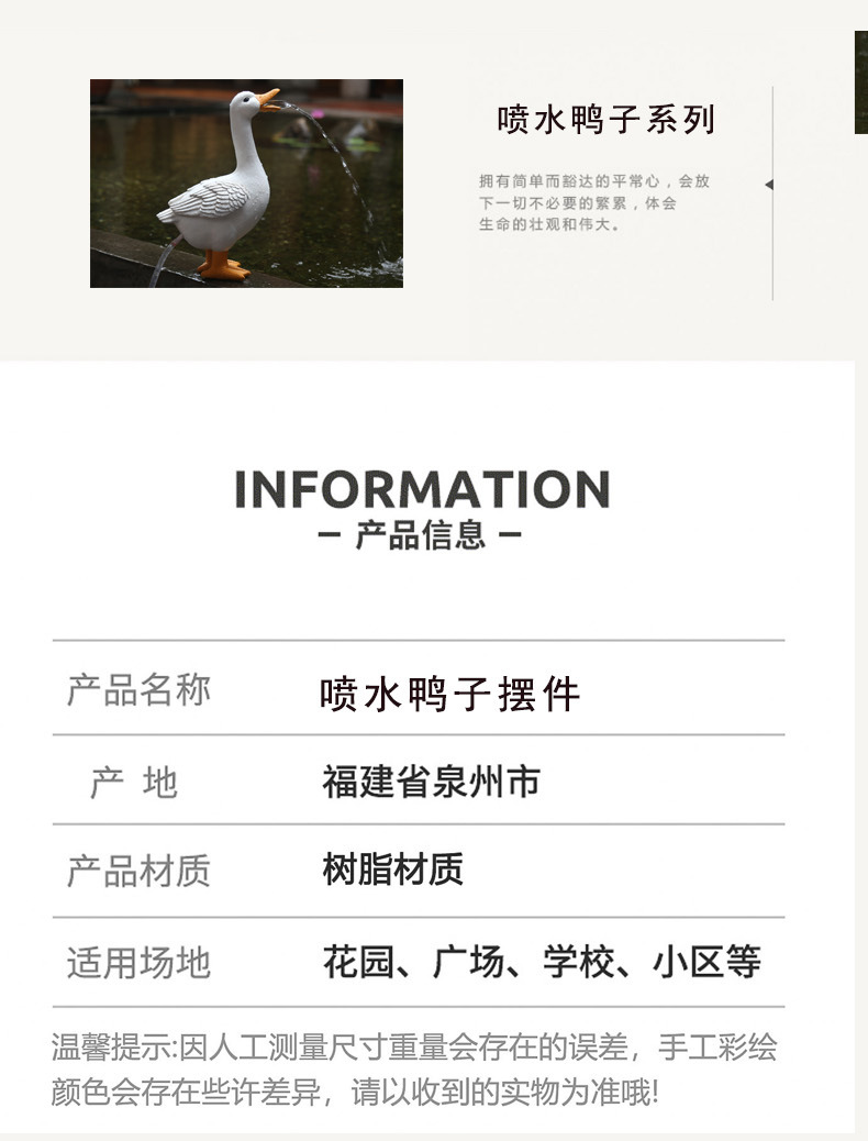 ZhuoZhiHua 창조적 인 물 스프레이 오리 장식품 야외 야외 물 풍경 물고기 연못 정원 수영장 풍경 장식 수지 거위