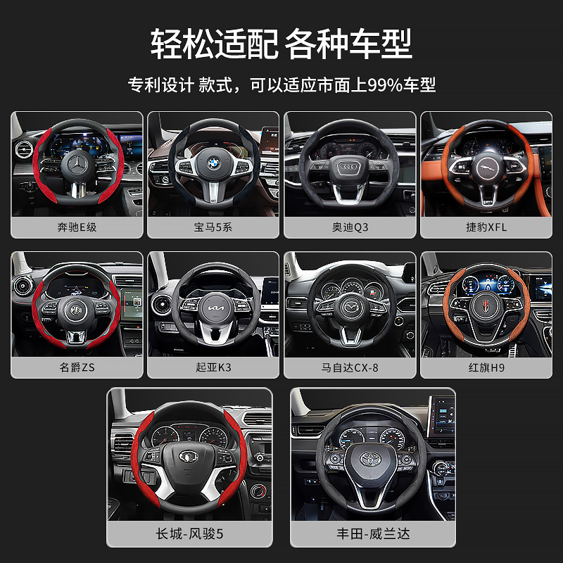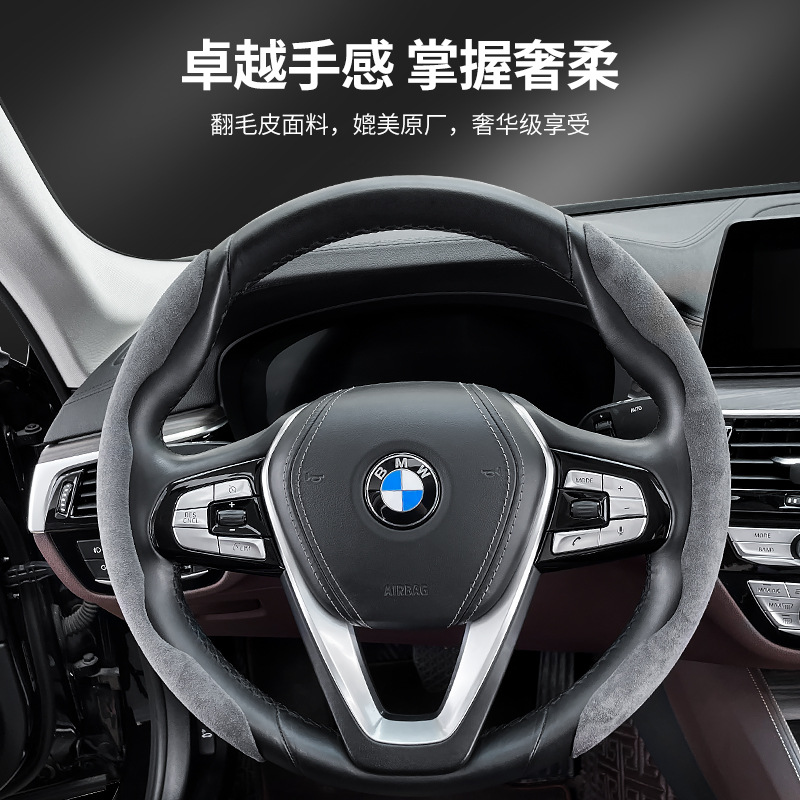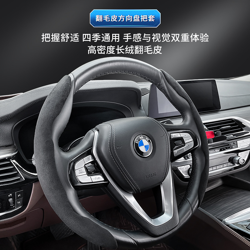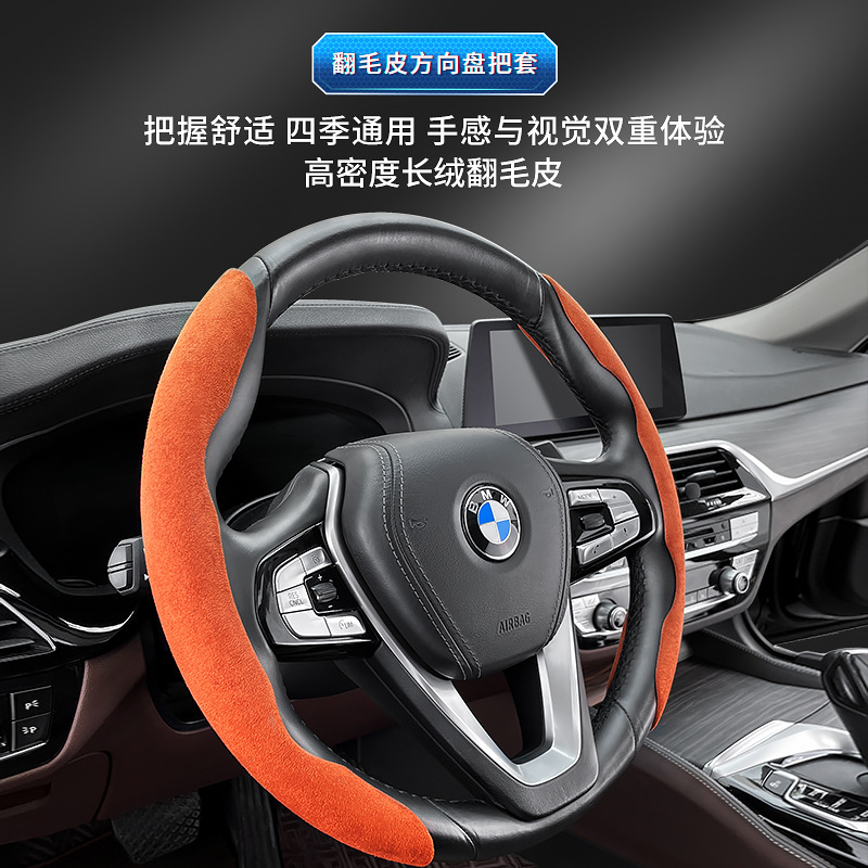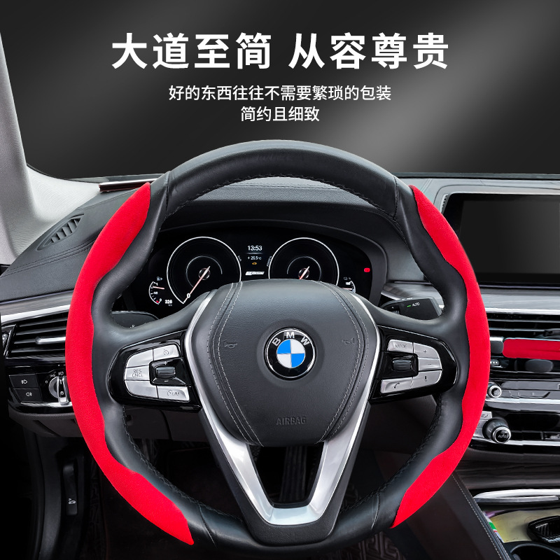 크로스 보더 자동차 핸들 커버 스웨이드 땀 흡수 미끄럼 방지 초박형 자동차 핸들 커버 사계절 범용 플러시 반 세트 카드 커버스토어 가기