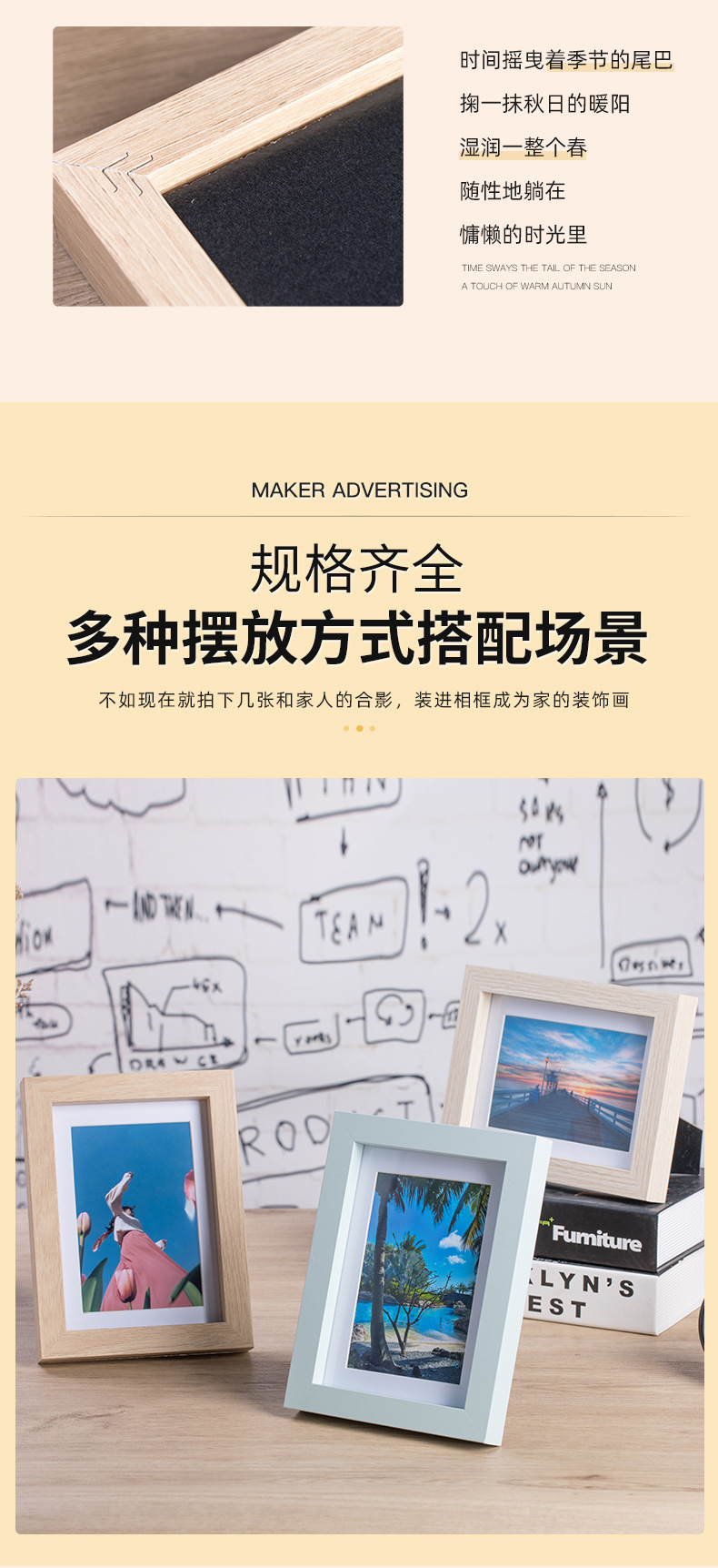 단단한 나무 사진 프레임 도매 테이블 6 인치 7 인치 8 인치 10 인치 a4 그림 프레임 나무 벽 사진 벽 스튜디오 창조적 인 DIY