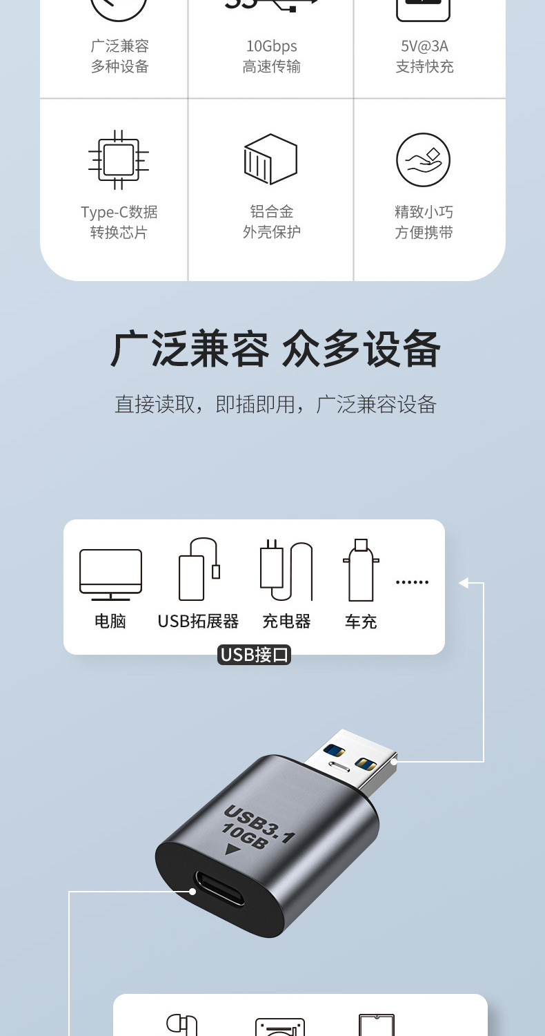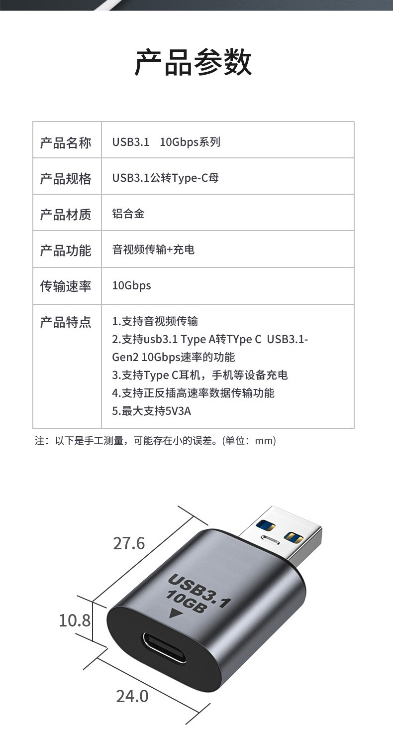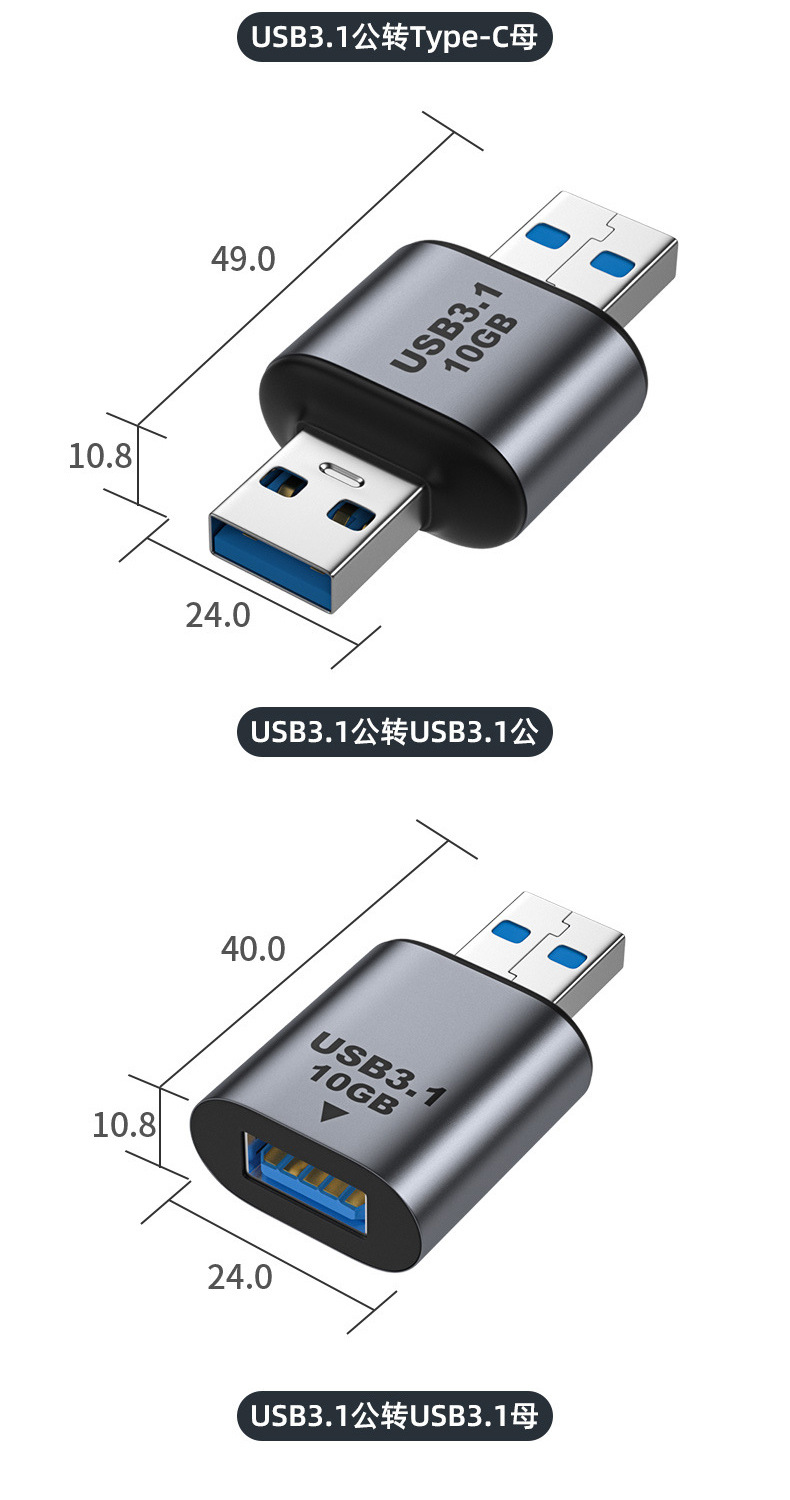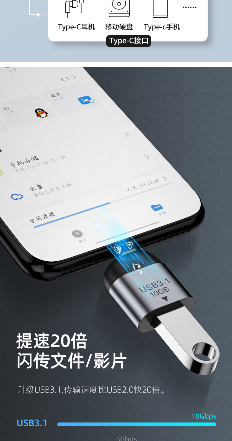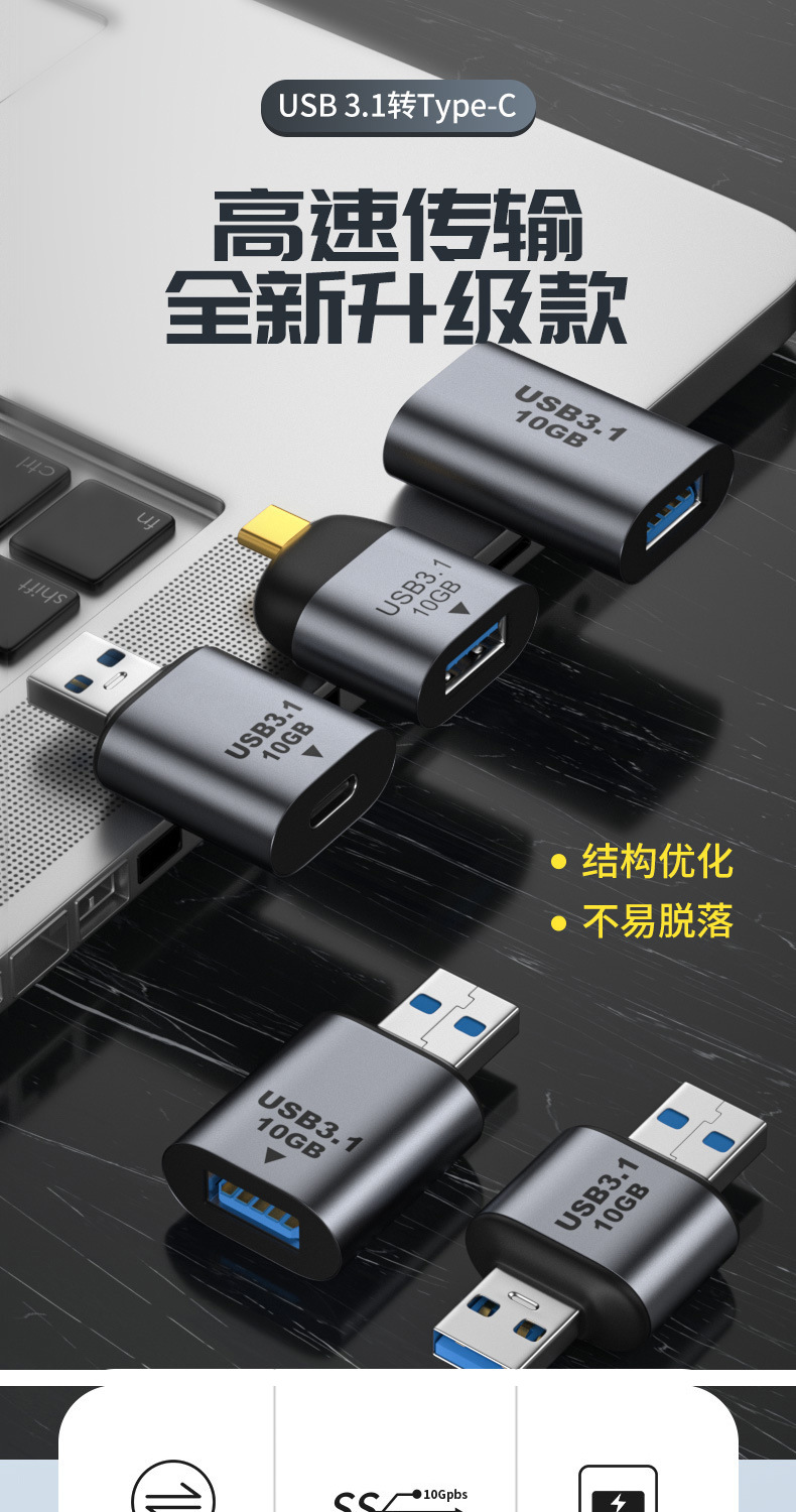 Typec 어댑터 USB3.1 남성-여성 OTG 오디오 및 비디오 전송, 휴대폰 및 컴퓨터 충전, USB 플래시 드라이브, 고속 충전, 다중 인터페이스스토어 가기