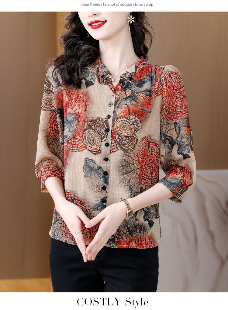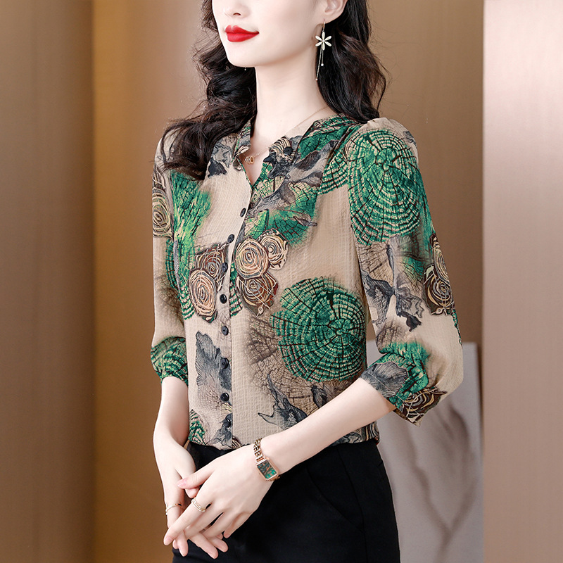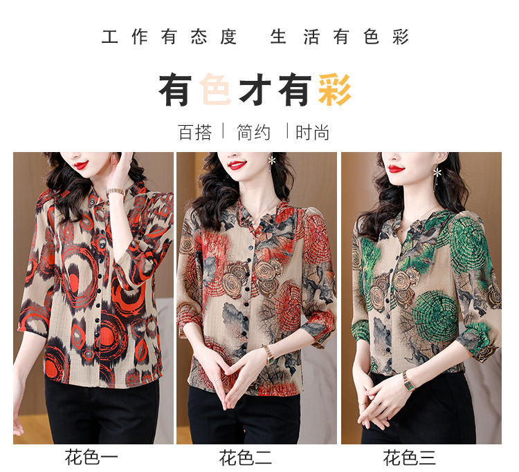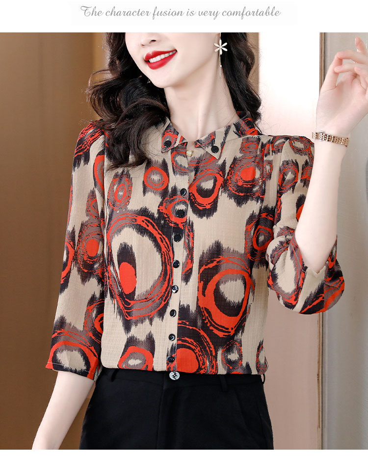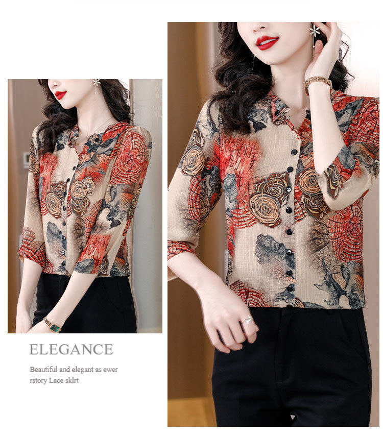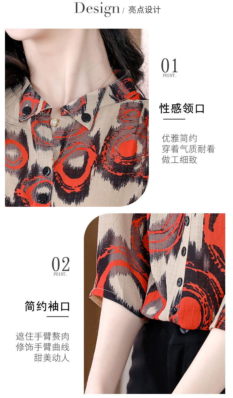 플러스 사이즈 프린트 셔츠 여성의 여름 2023 중년 어머니 느슨한 배꼽 재킷 얇은면과 린넨 셔츠 도매스토어 가기