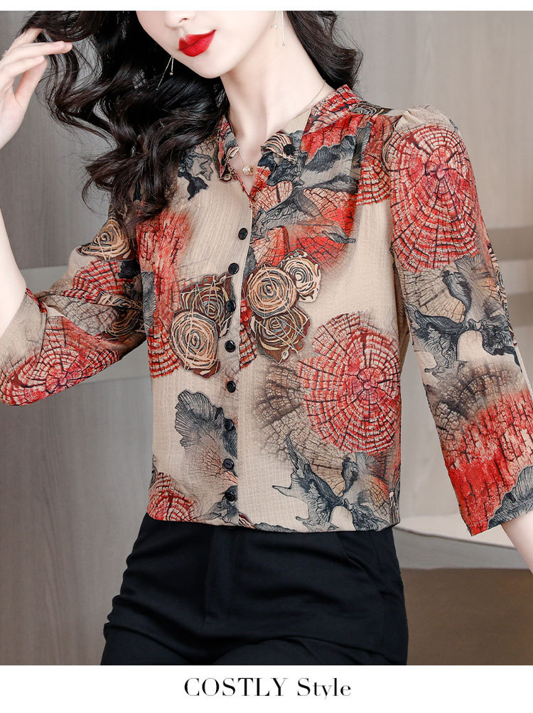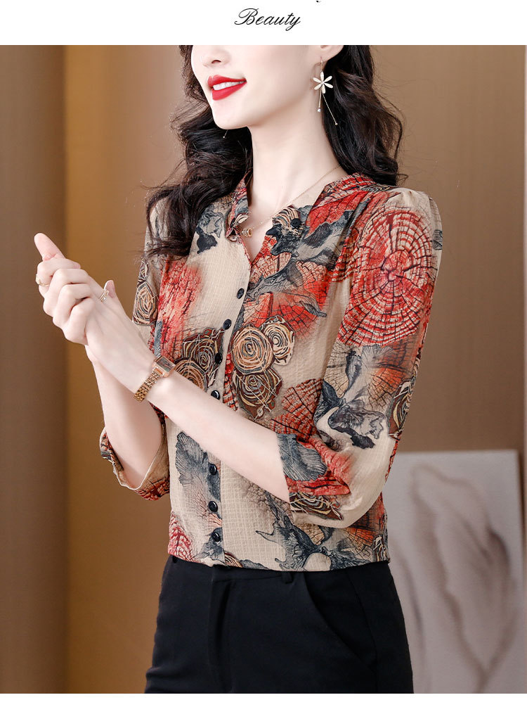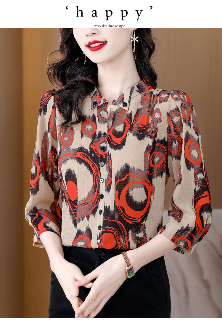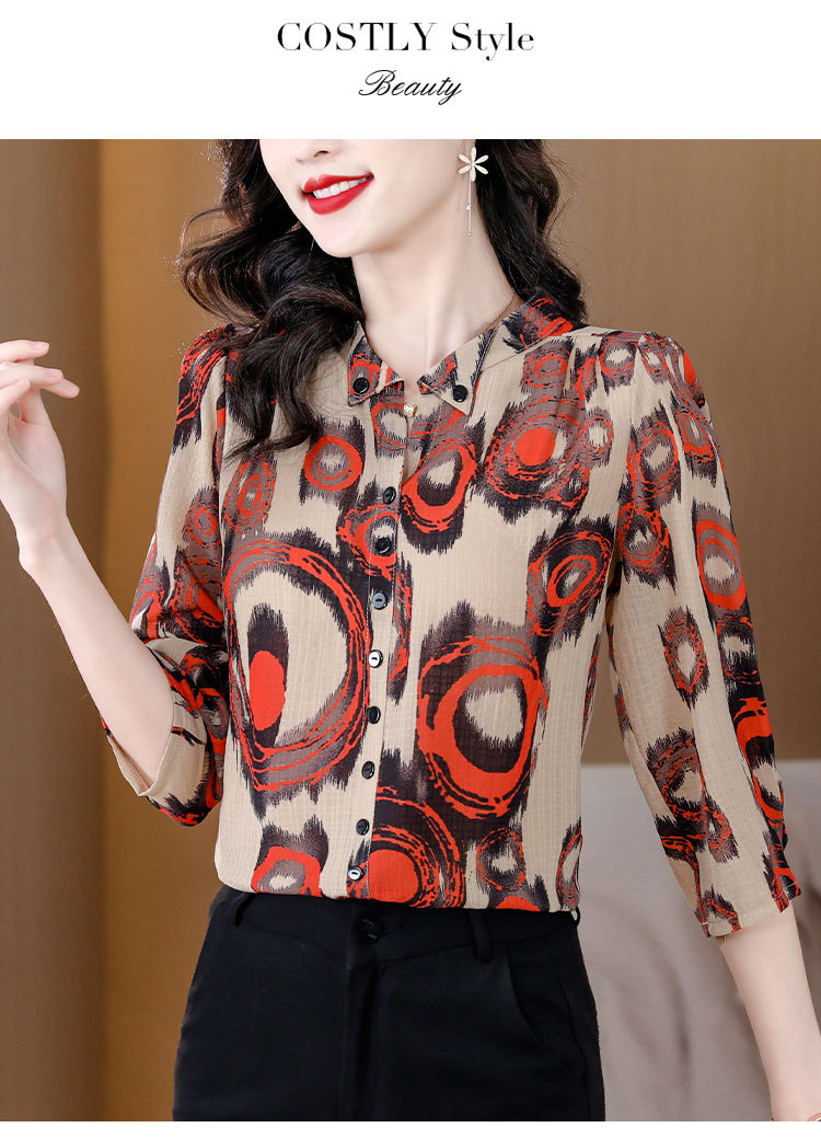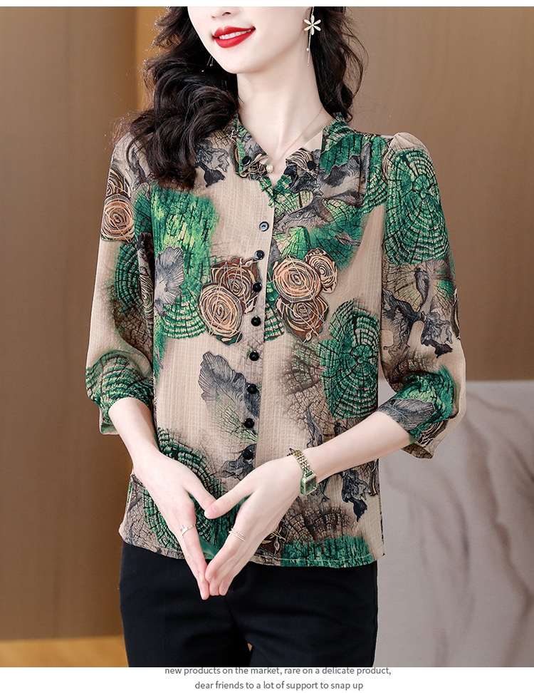 플러스 사이즈 프린트 셔츠 여성의 여름 2023 중년 어머니 느슨한 배꼽 재킷 얇은면과 린넨 셔츠 도매스토어 가기