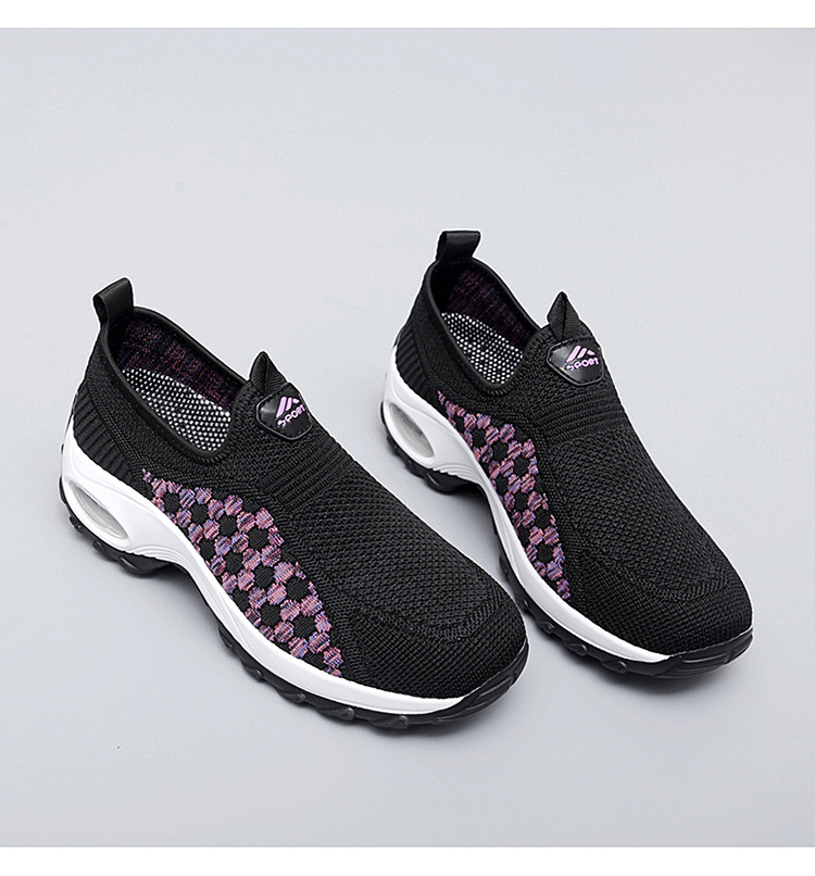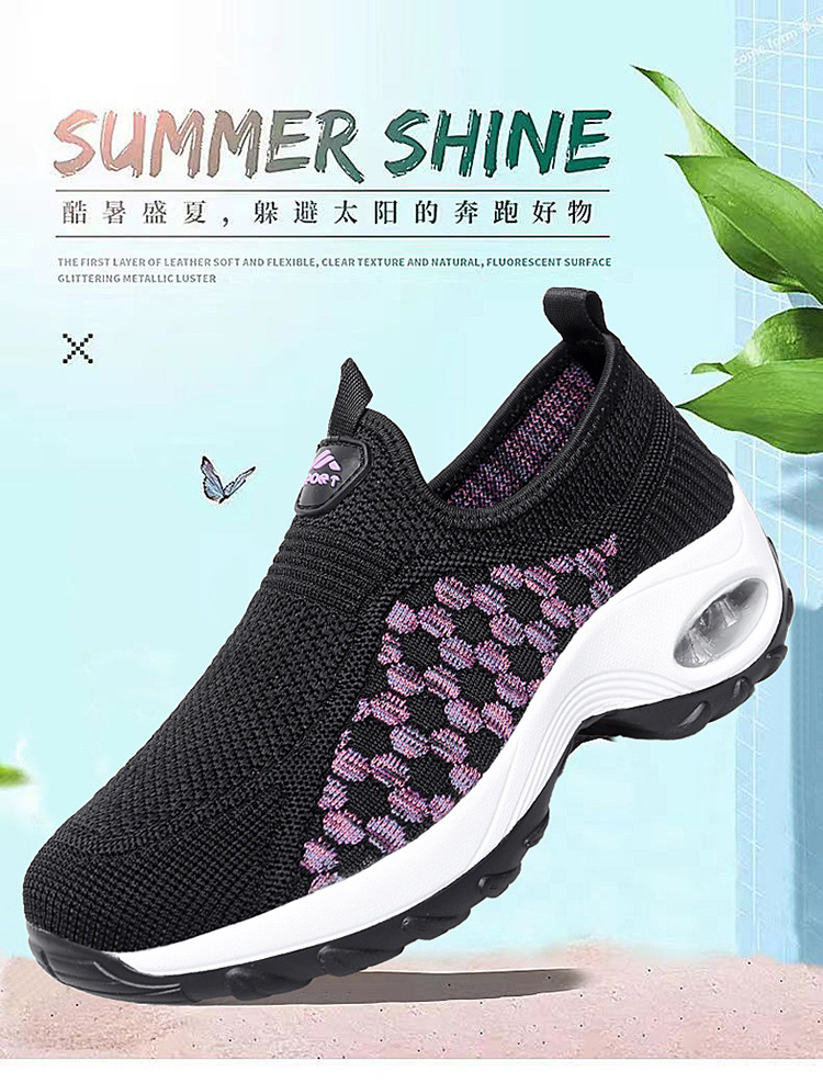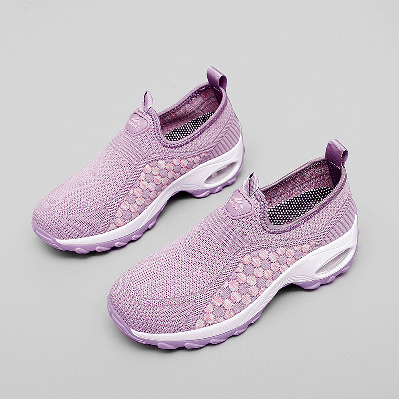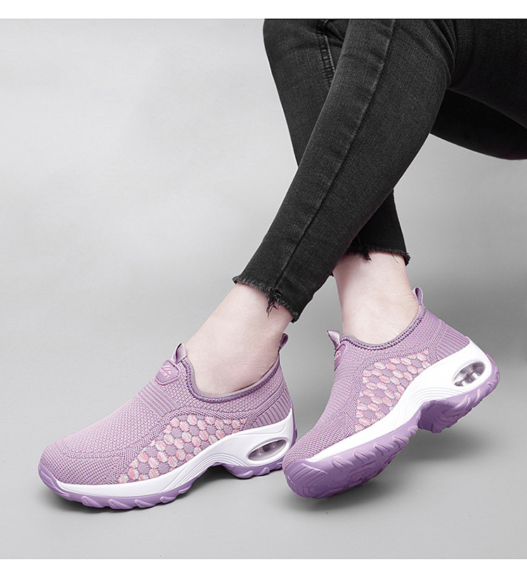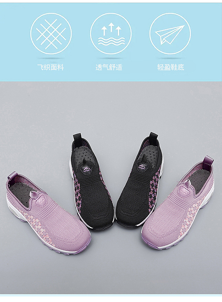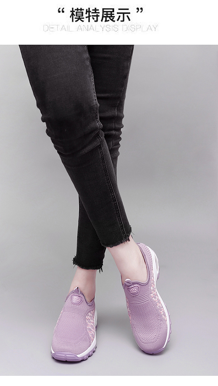 크로스 보더 새로운 캐주얼 패션 여성 신발 통기성 플라잉 짠 플랫 슈즈 여행 신발 슬립온 여성 야외 스포츠
