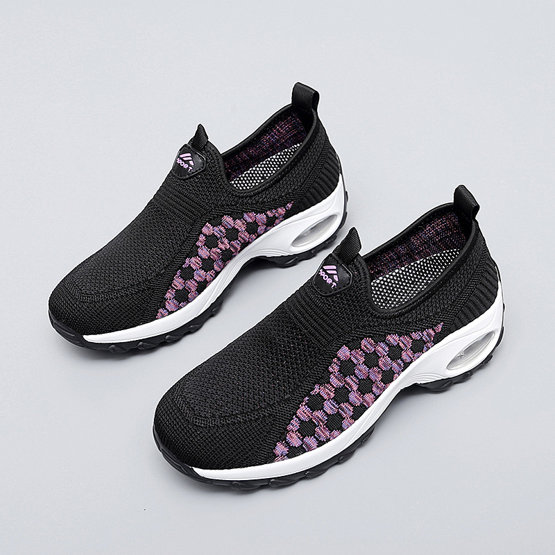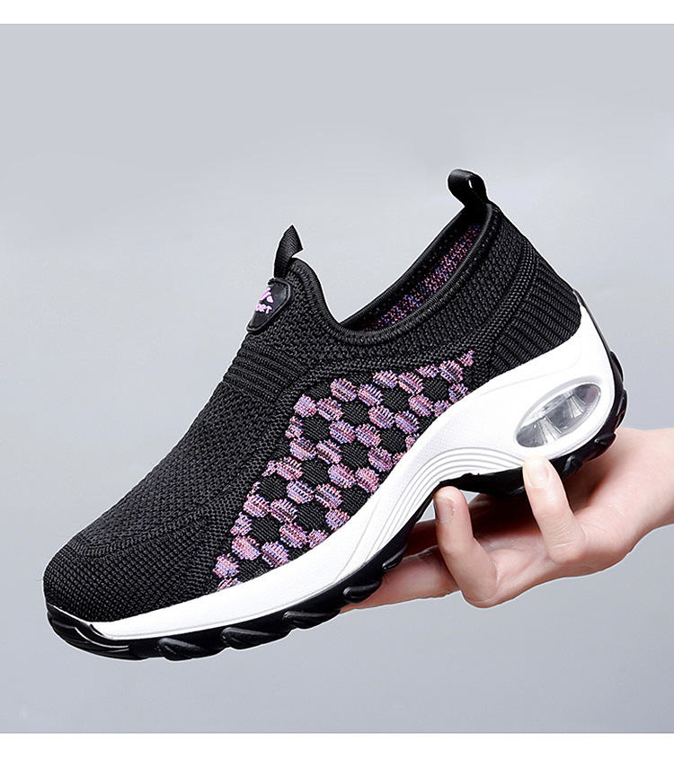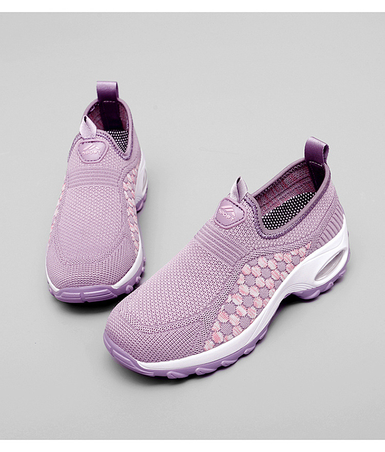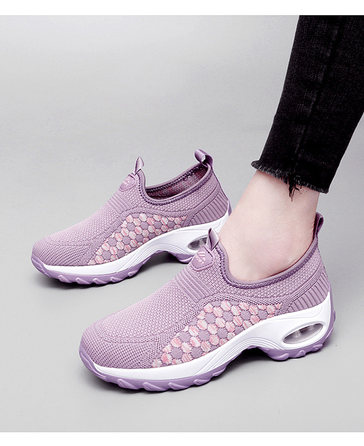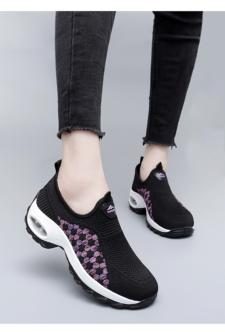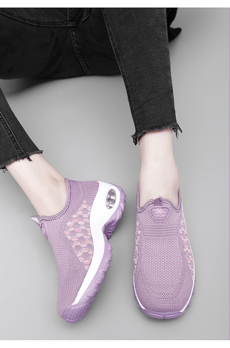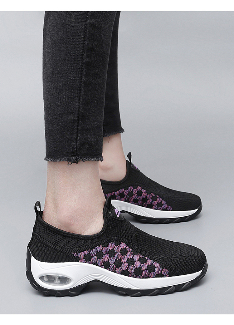 크로스 보더 새로운 캐주얼 패션 여성 신발 통기성 플라잉 짠 플랫 슈즈 여행 신발 슬립온 여성 야외 스포츠