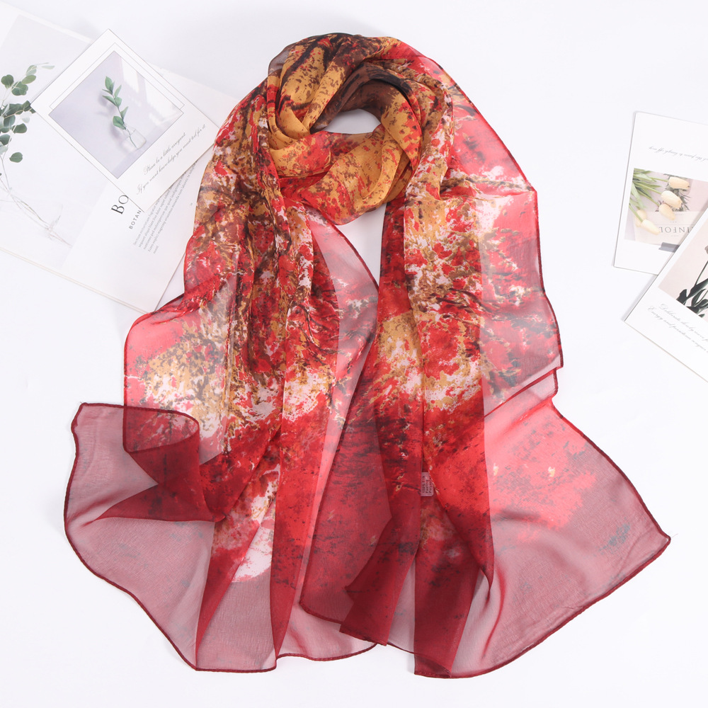 봄과 여름 긴 스카프 부드러운 조젯 프린트 스카프 여성용 얇은 통기성 여행 자외선 차단제 숄 댄싱 스카프