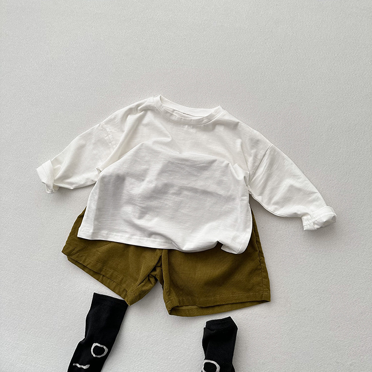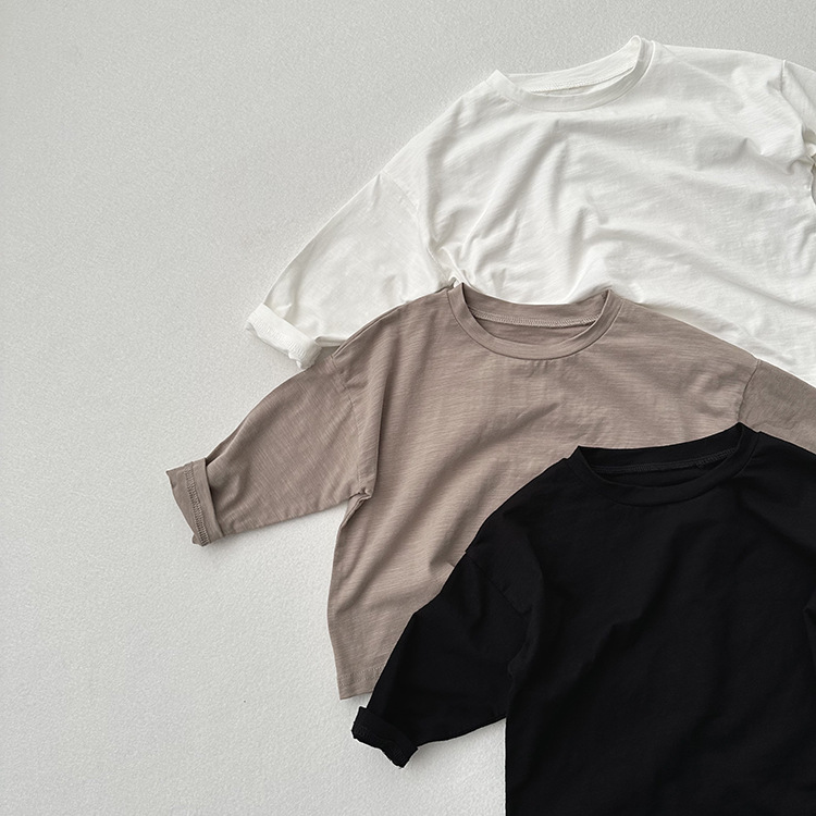 한국식 대나무 면 티셔츠 ~ 봄 가을 신작 아동용 순면 티셔츠 상의 소년 소녀용 루즈한 긴팔 바닥 셔츠 유행